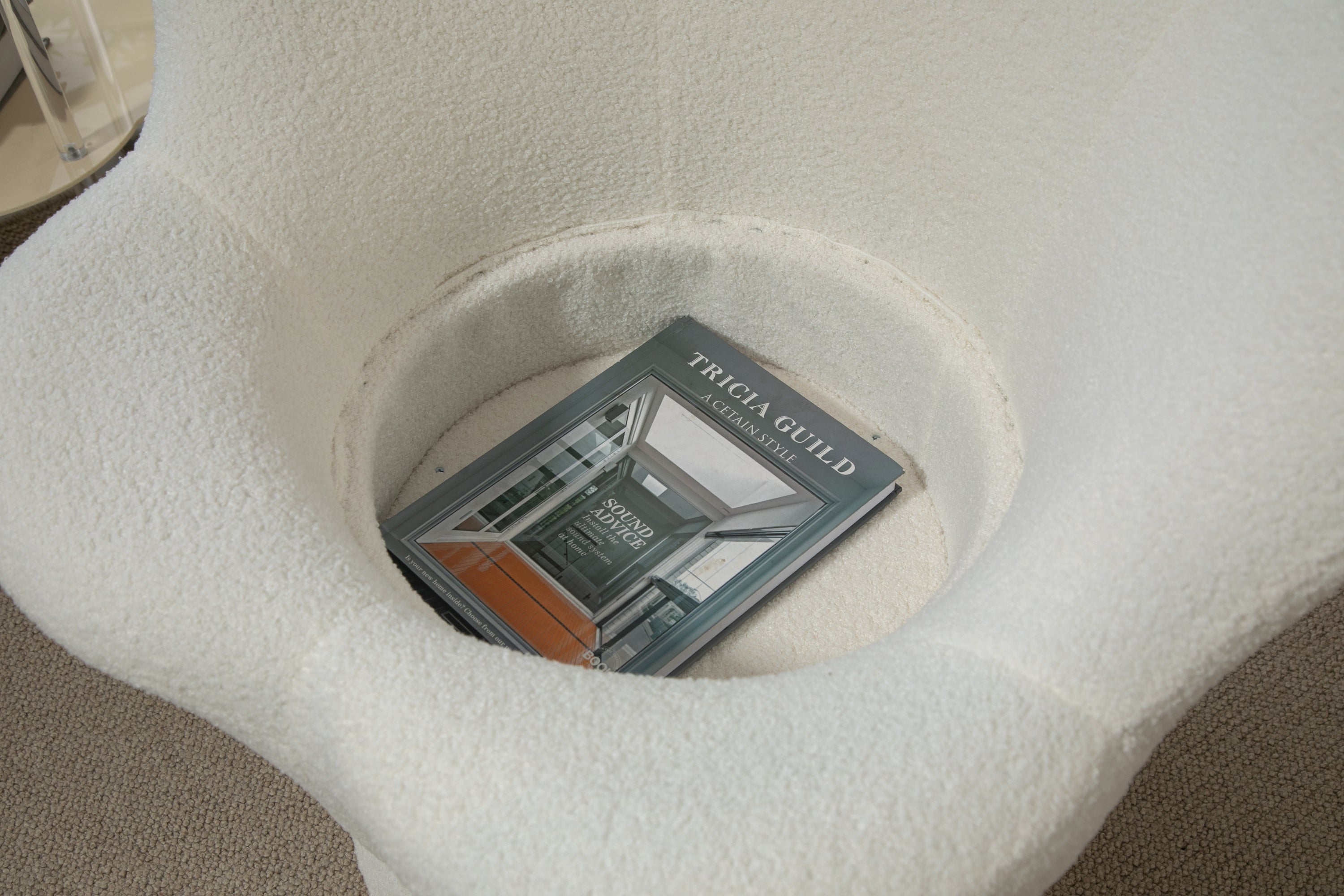 - The contemporary swivel bucket sofa chair, designed with a boucle barrel backrest and tilt armrest for a cozy sitting experience. The wide upholstered features high-quality high-resilience foam, providing excellent cushioning performance and supporting weights up to 300 pounds.