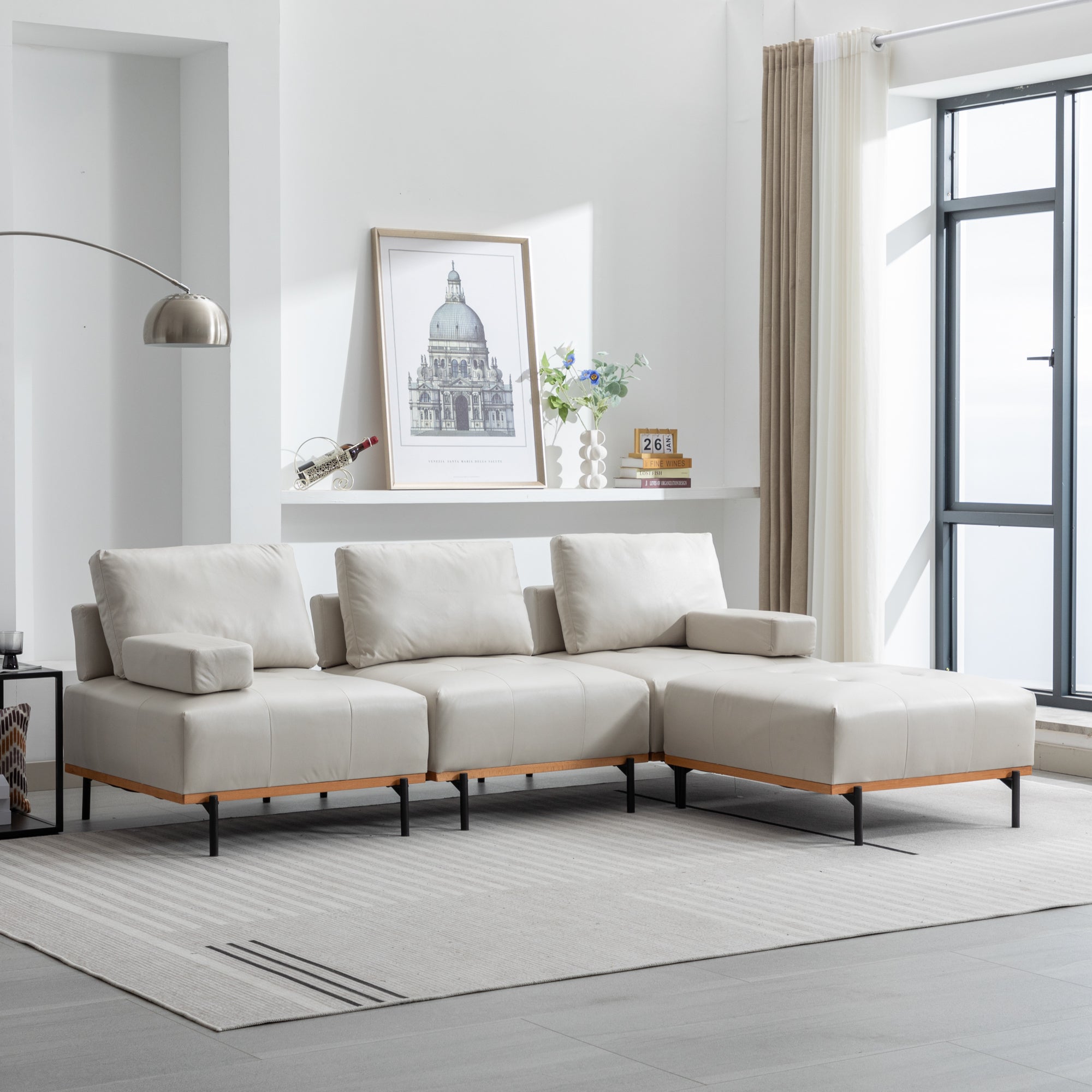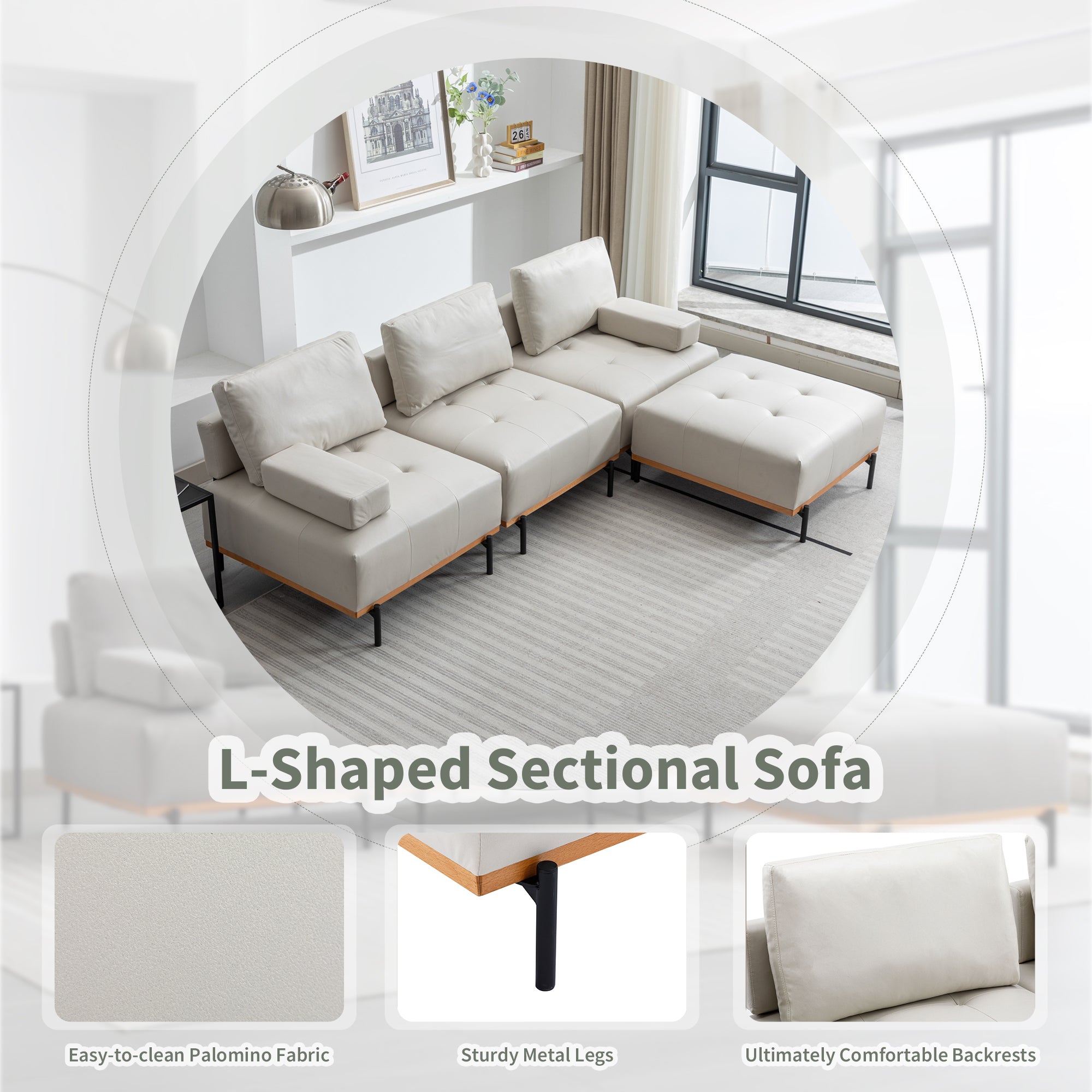 100.7'' L-Shape Sectional Sofa 3-Seater Couches with a Removable Ottoman, Comfortable Fabric for Living Room, Apartment, Beige