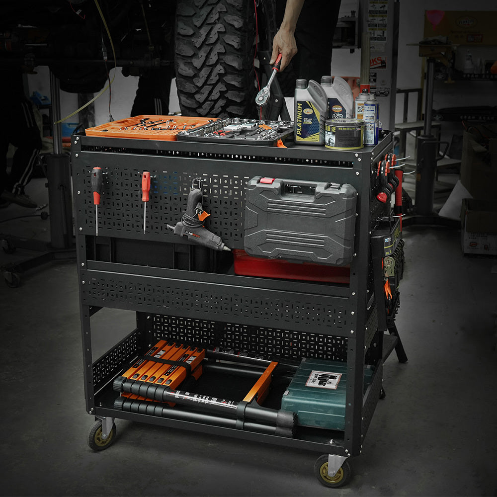 • Detachable Design: Designed for quick setup and space-saving, the tool cart with pegboard simplifies installation with clear instructions.