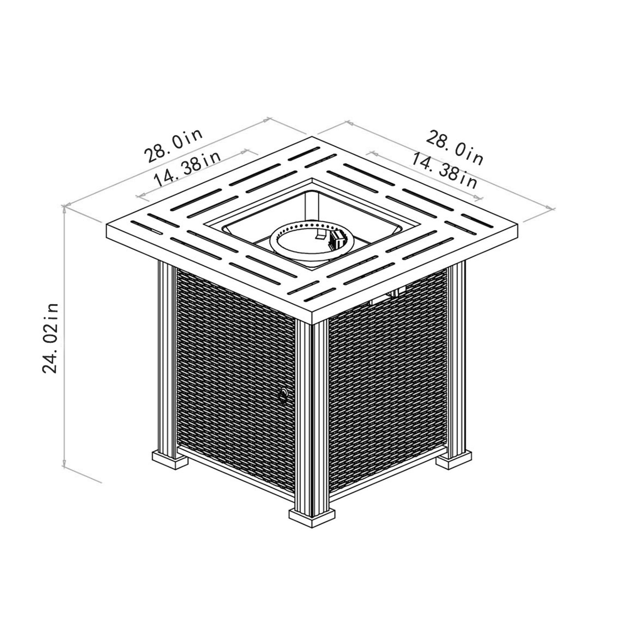 • Contemporary Style, Durable Build: The 28 - inch Square Propane Fire Pit Table exudes modern elegance. Its black tabletop has regularly - spaced long cut - outs for both style and ventilation. Rust, paint - wear, and heat - resistant, it keeps a sleek look year - round. This stylish piece fits any outdoor decor, a must - have centerpiece for your patio, lawn or garden.