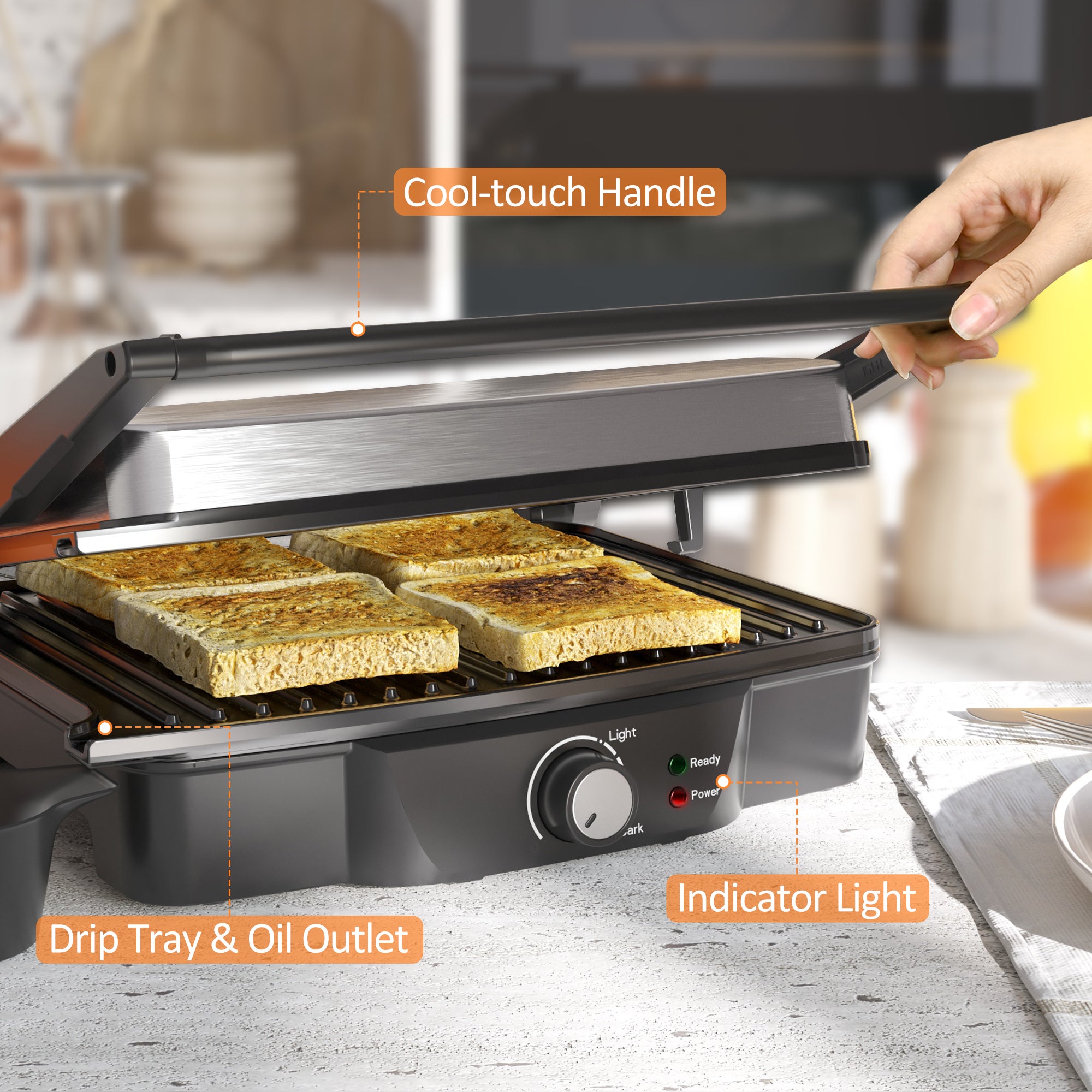 4-Slice Panini Press Grill – Stainless Steel Sandwich Maker with Non-Stick Plates, Locking Lid & Drip Tray