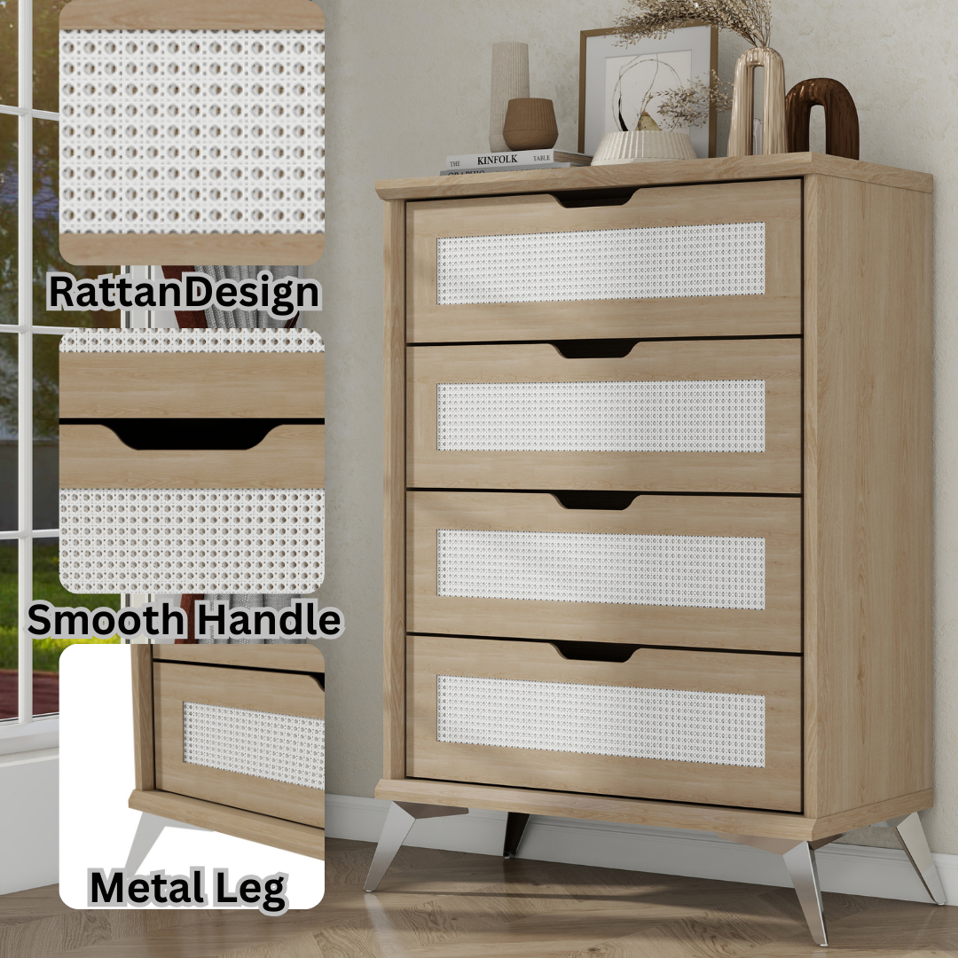 Rattan Chest of Drawer, 4 Drawer Chest for Bedroom with Metal Leg - L31.5'' x W15.75'' x 44.57'' (Natural) - White Label
