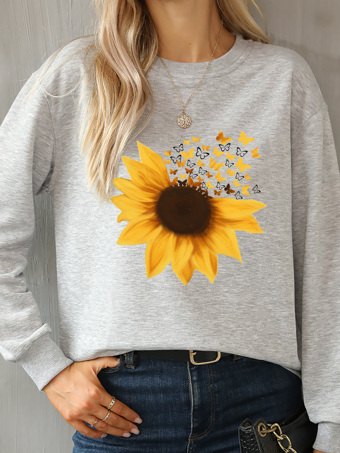 Sunflower Round Neck Dropped Shoulder Sweatshirt for Women