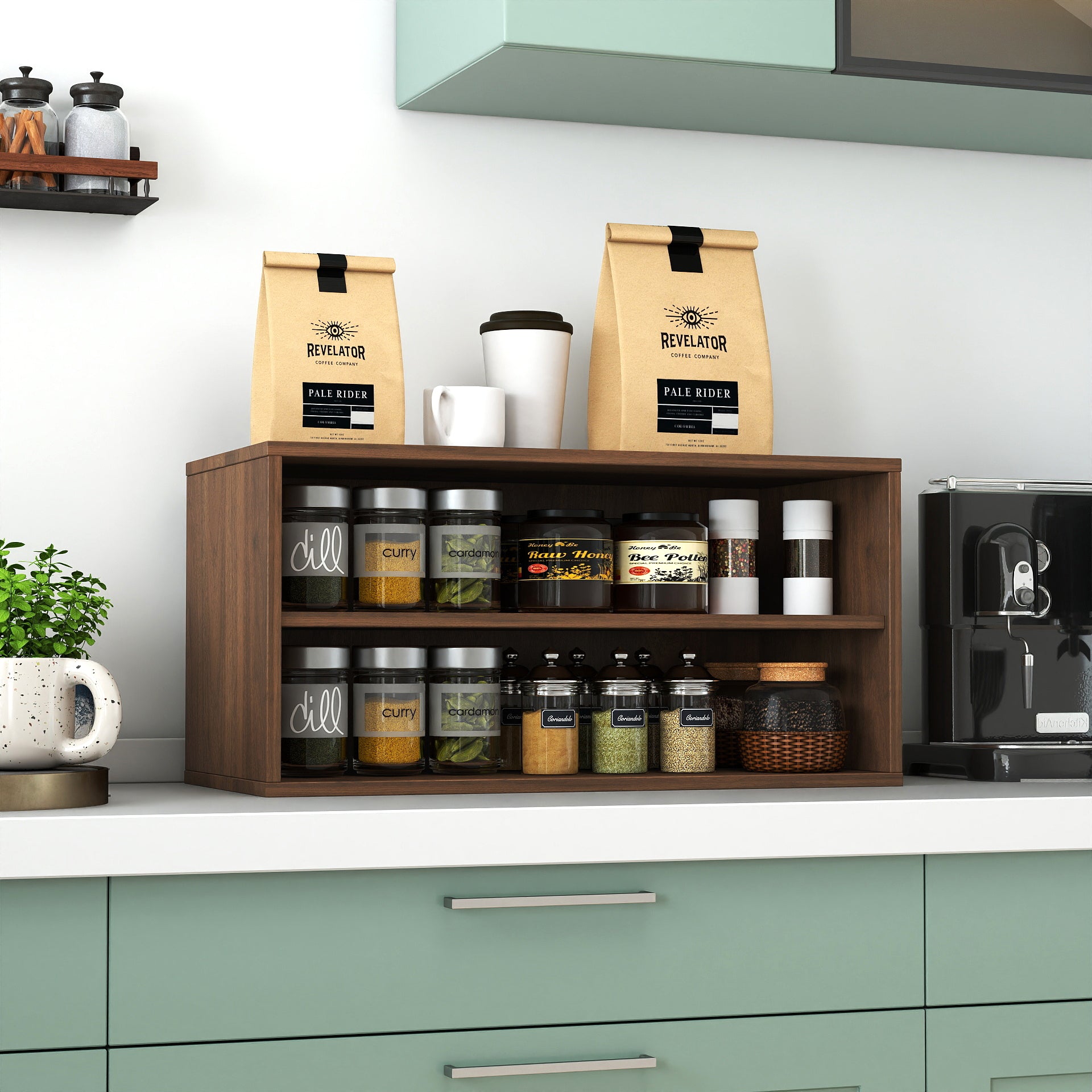 • STACK DESIGN: Hardware included for easy stacking of multiple units (sold separately)A sleek and stylish design storage organizer shelf that fits well in any room setting and keep your space clutterfree.