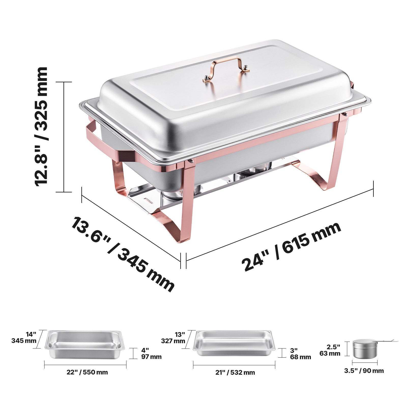 • Elegant Rose Gold Finish: The rose gold color of this chafing dish warmer adds a sophisticated touch to any event. Whether it's a buffet, party, or wedding, this sleek design enhances your table setting and elevates the atmosphere