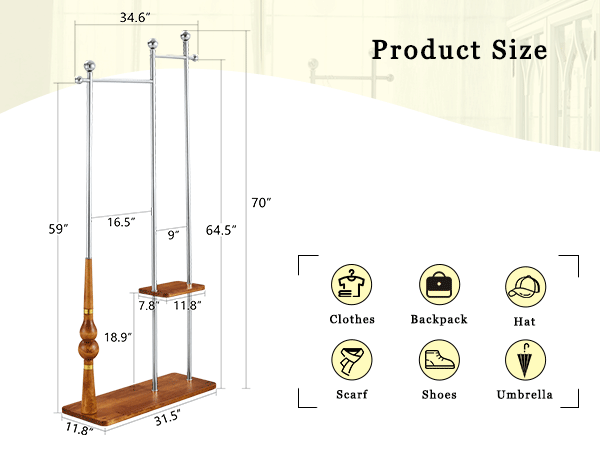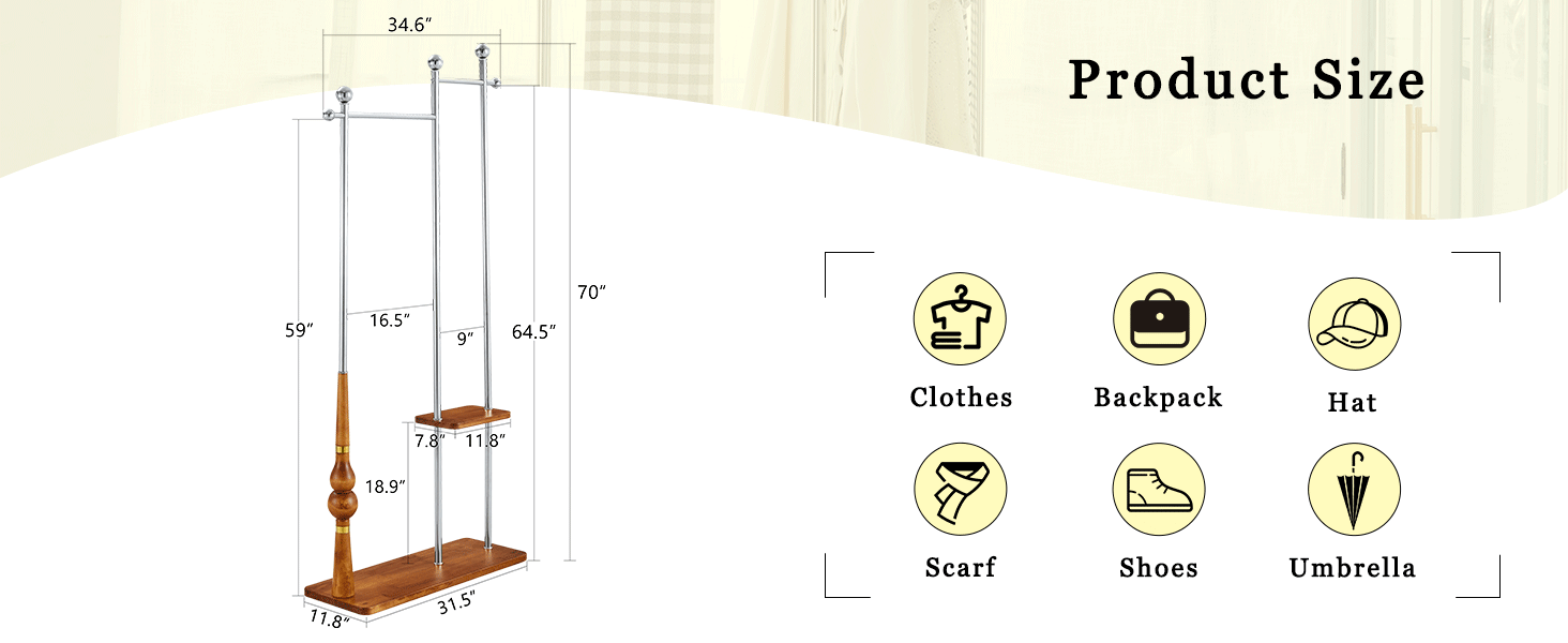 • Extra-Large 2-Tier Storage,70'H x 34.6'W with double solid wood shelves (including bottom board)—holds coats, hats, bags, shoes, and more for ultimate organization.