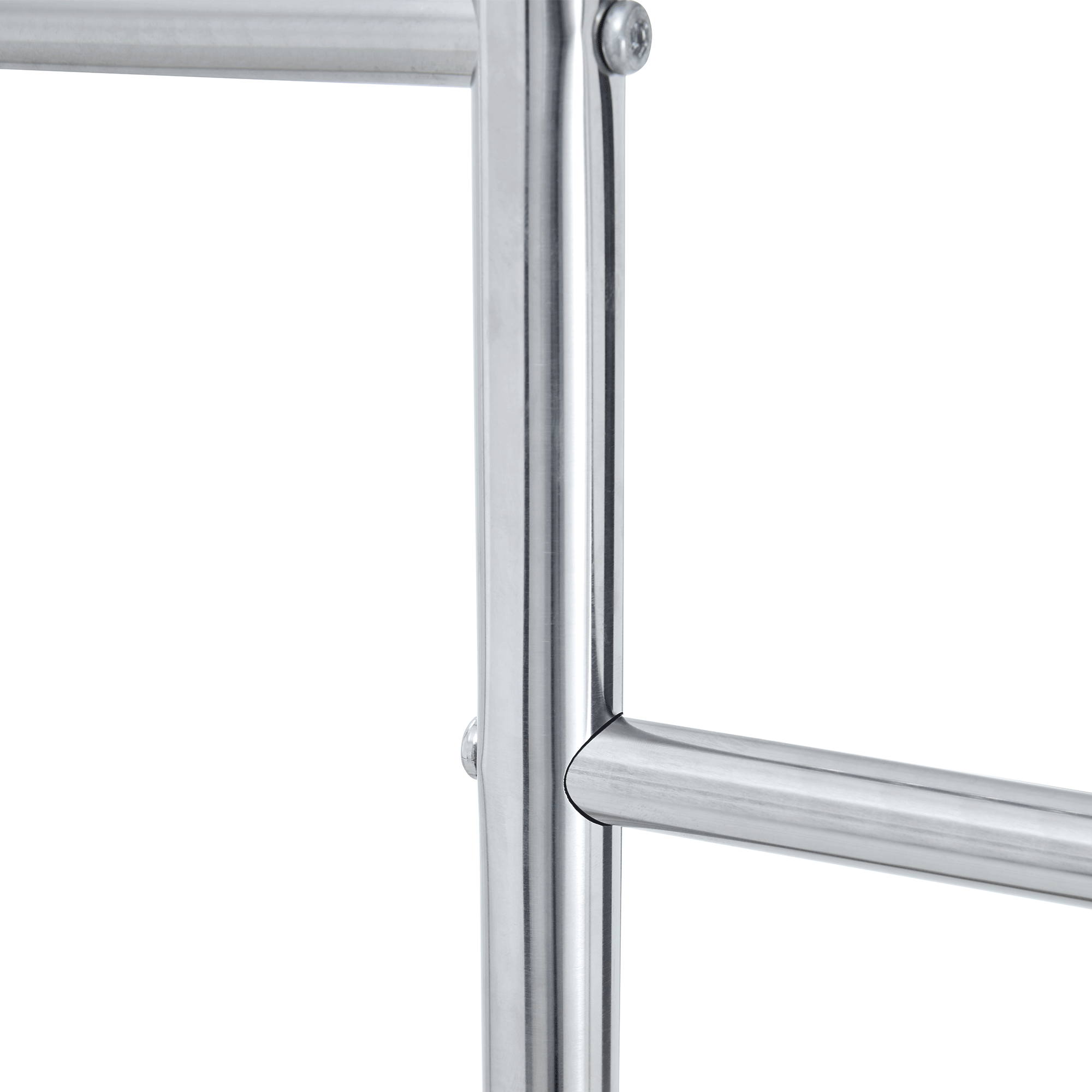 • Heavy-Duty 110lb Capacity,0.05'reinforced stainless steel frame + double solid wood shelves prevent warping. Non-slip feet protect floors.