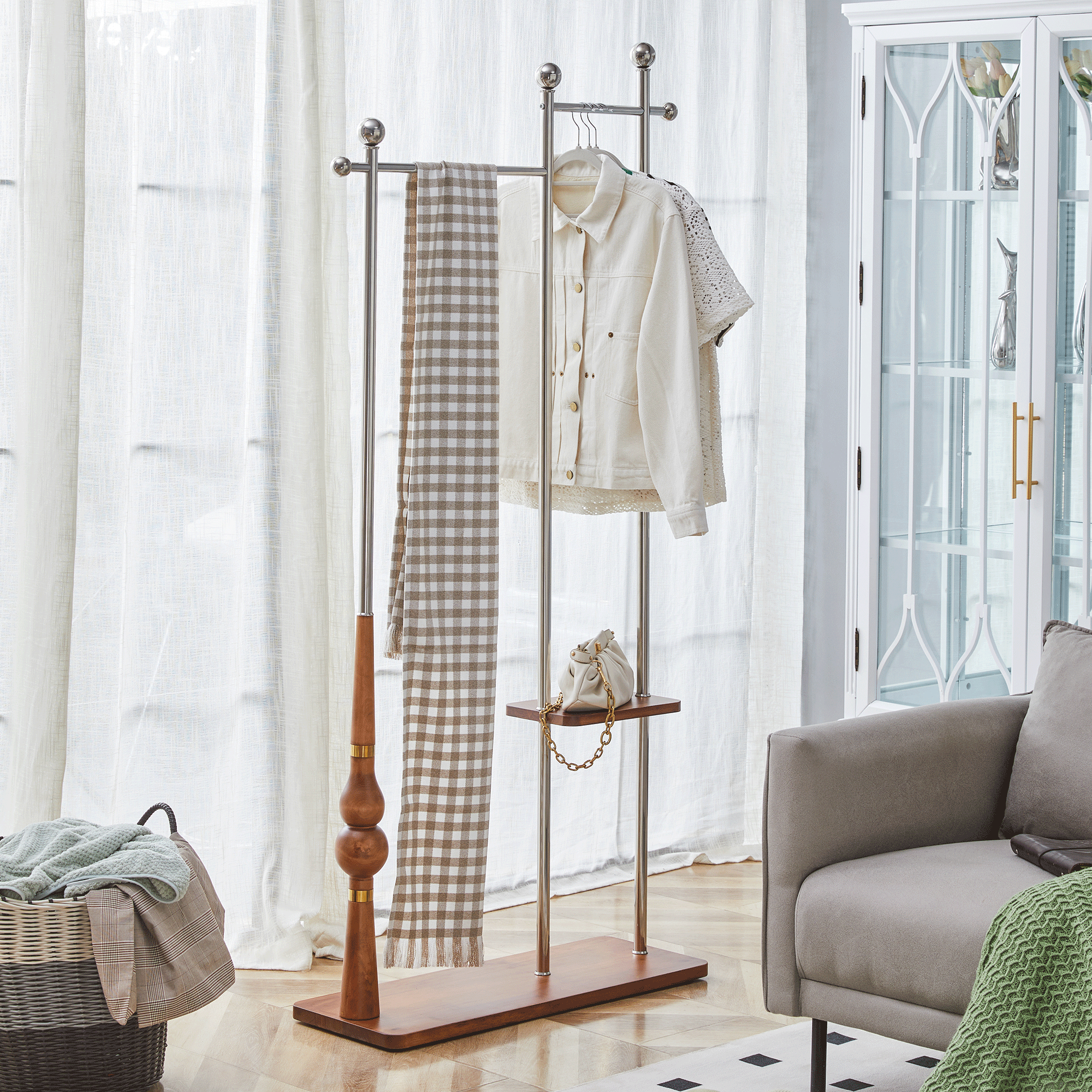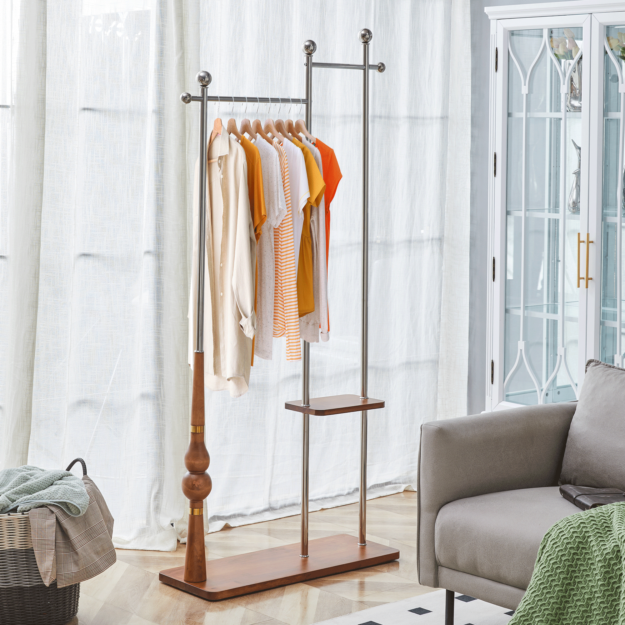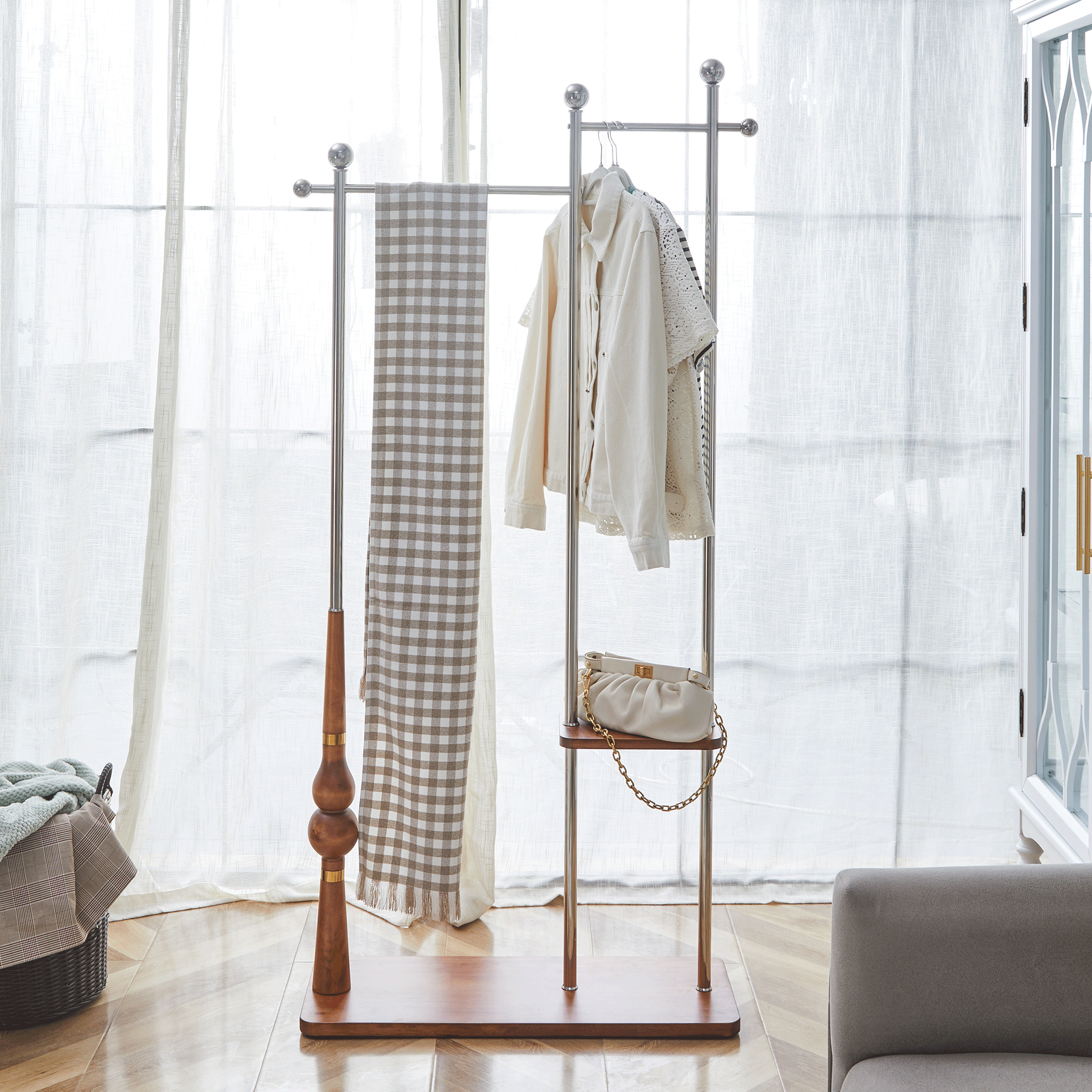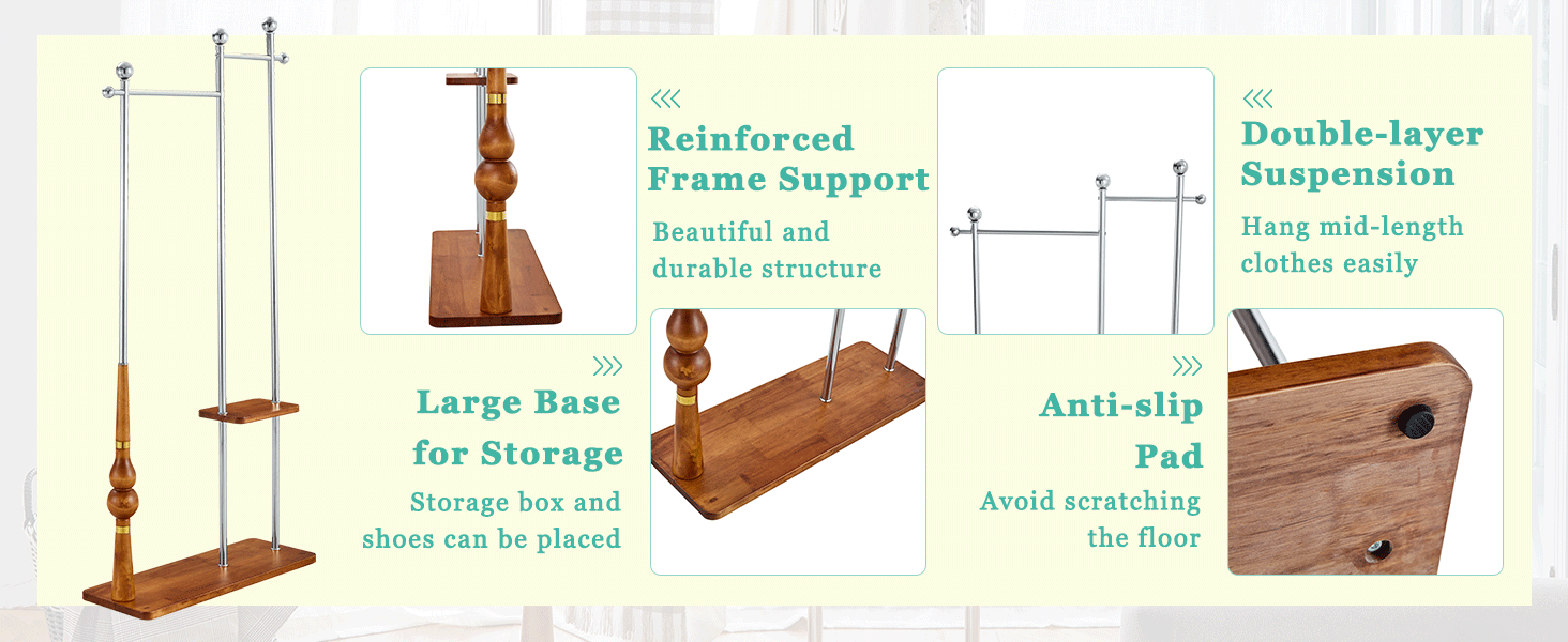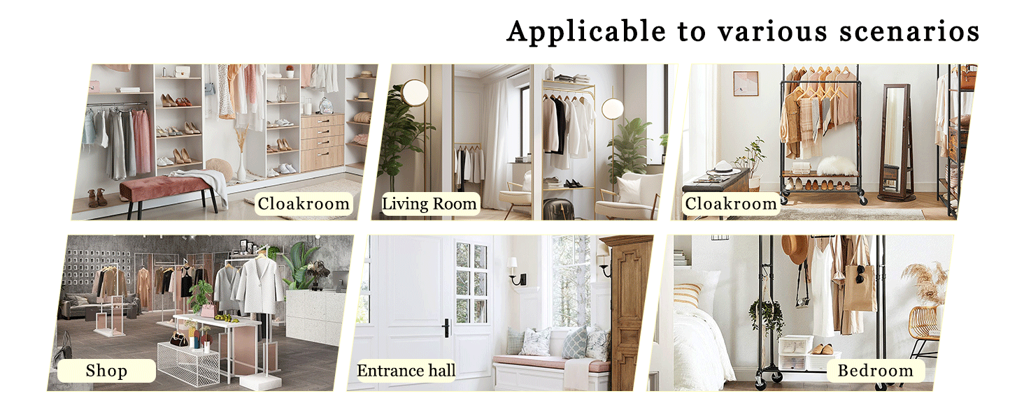 • Smart Zoned Storage,Upper tier: Separate zones for long/short items. Lower tier: Solid wood shelves for bags/shoes. Open design for easy access.
