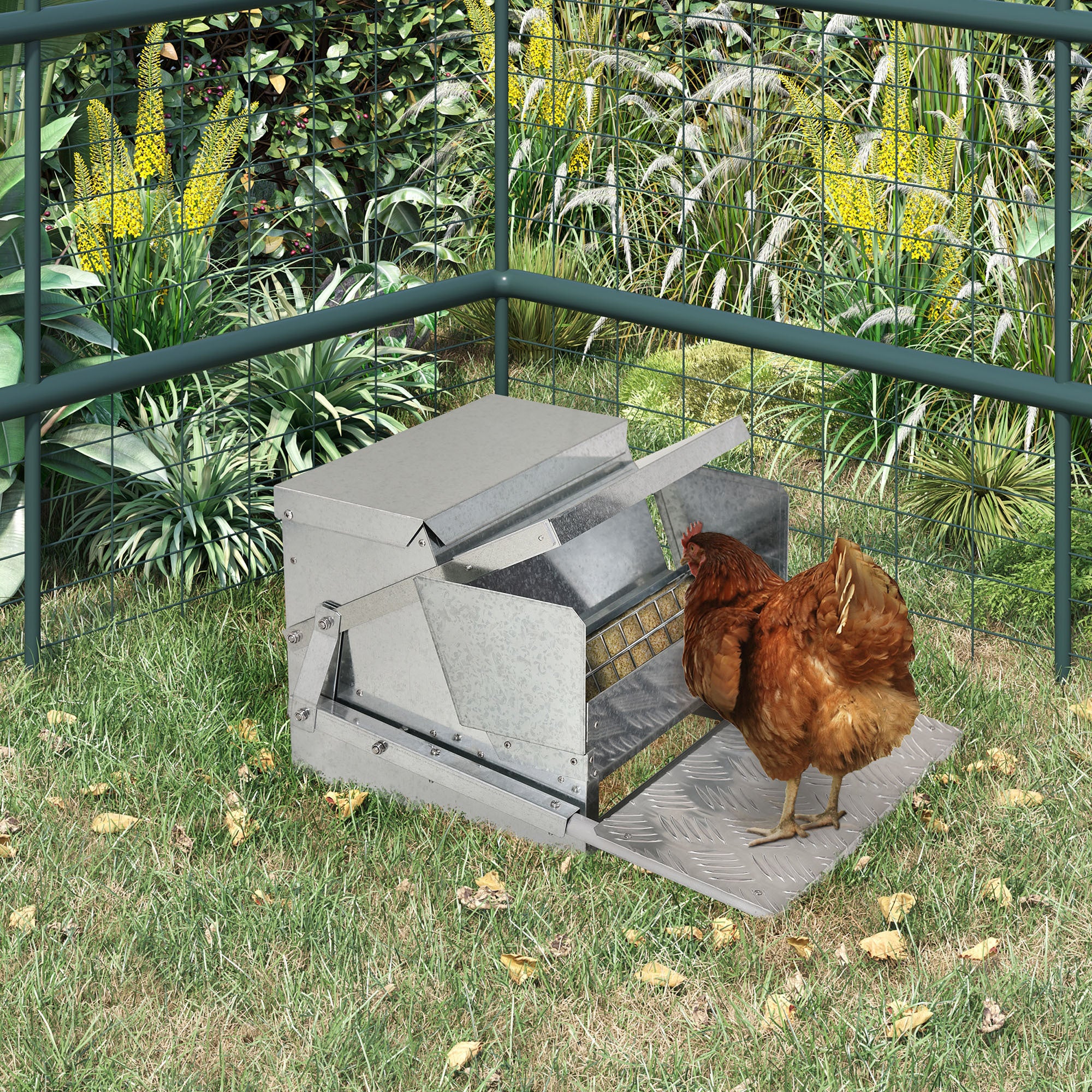 PawHut 25 lbs Capacity Automatic Chicken Poultry Feeder with a Galvanized Steel and Aluminium Build, Weatherproof Design