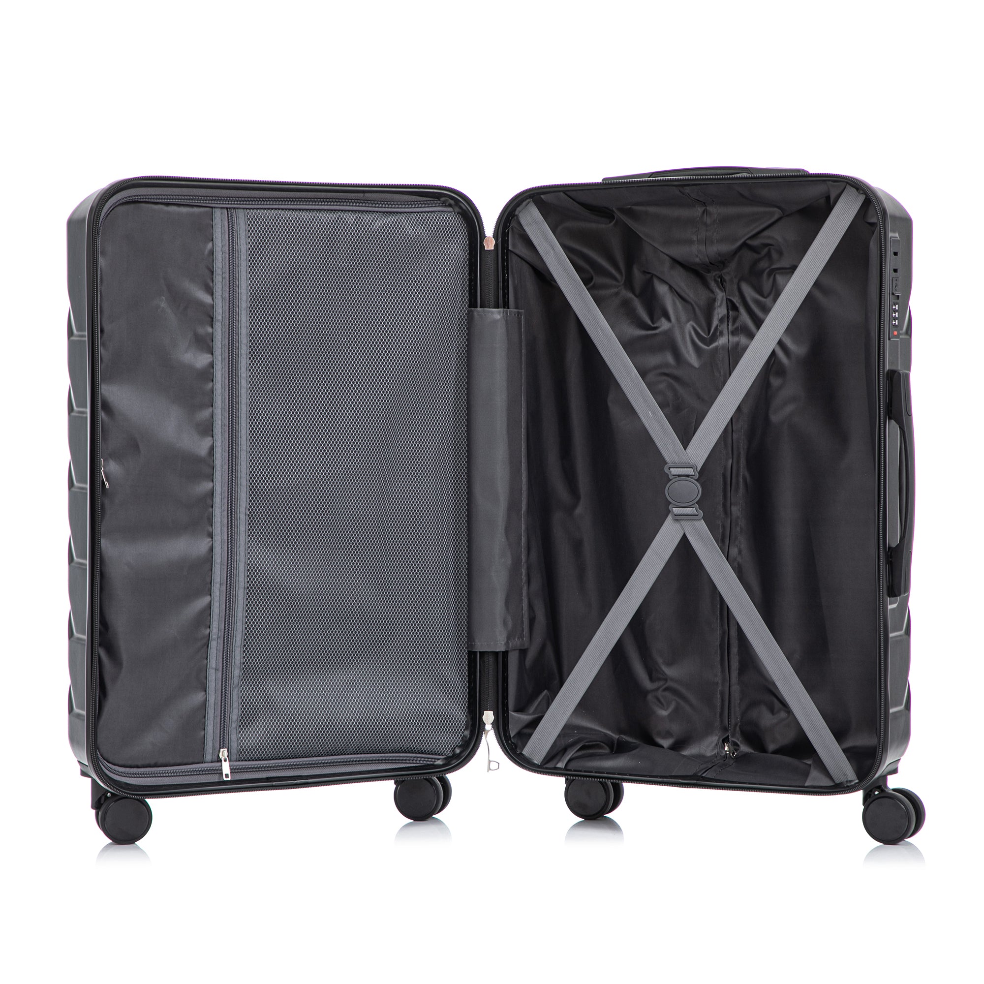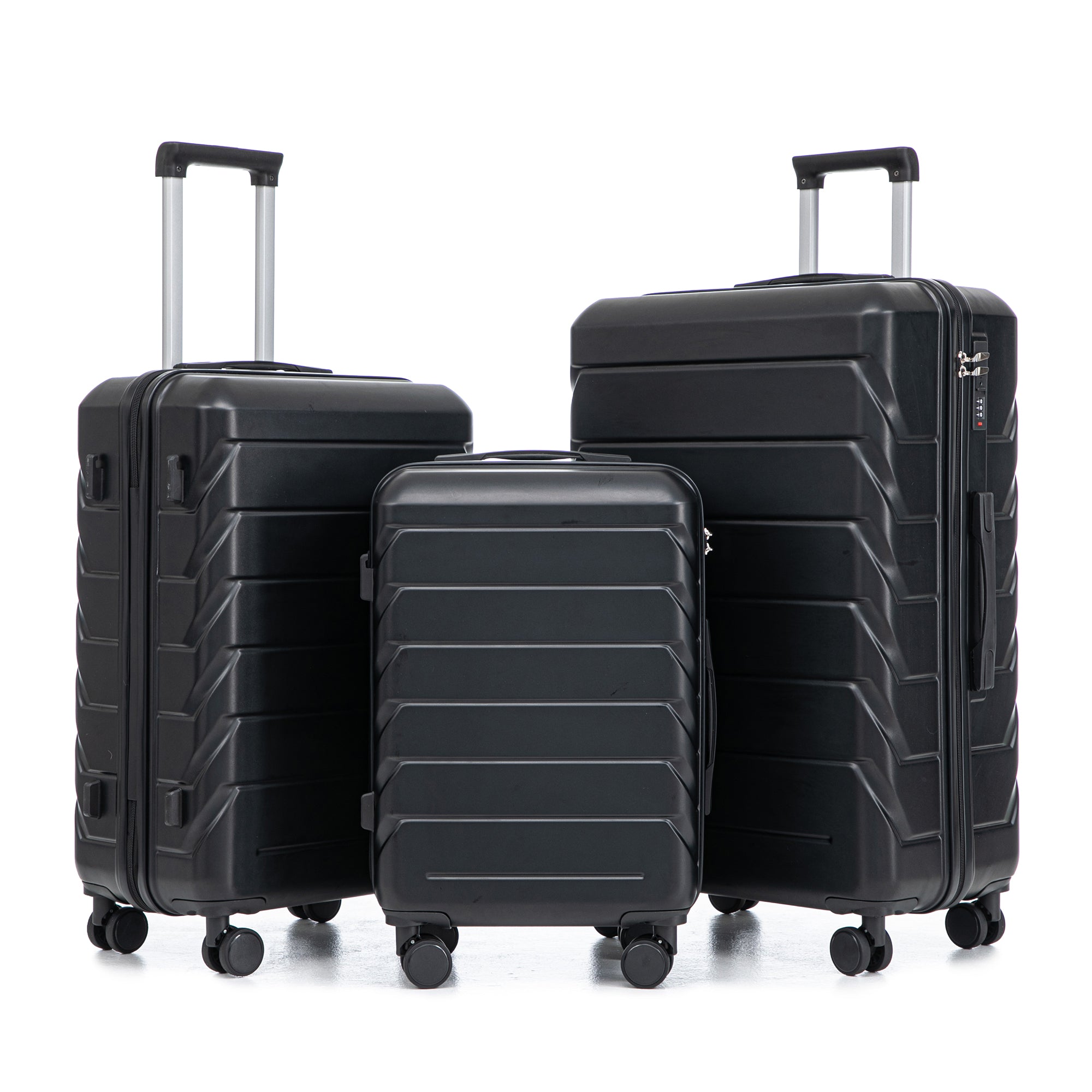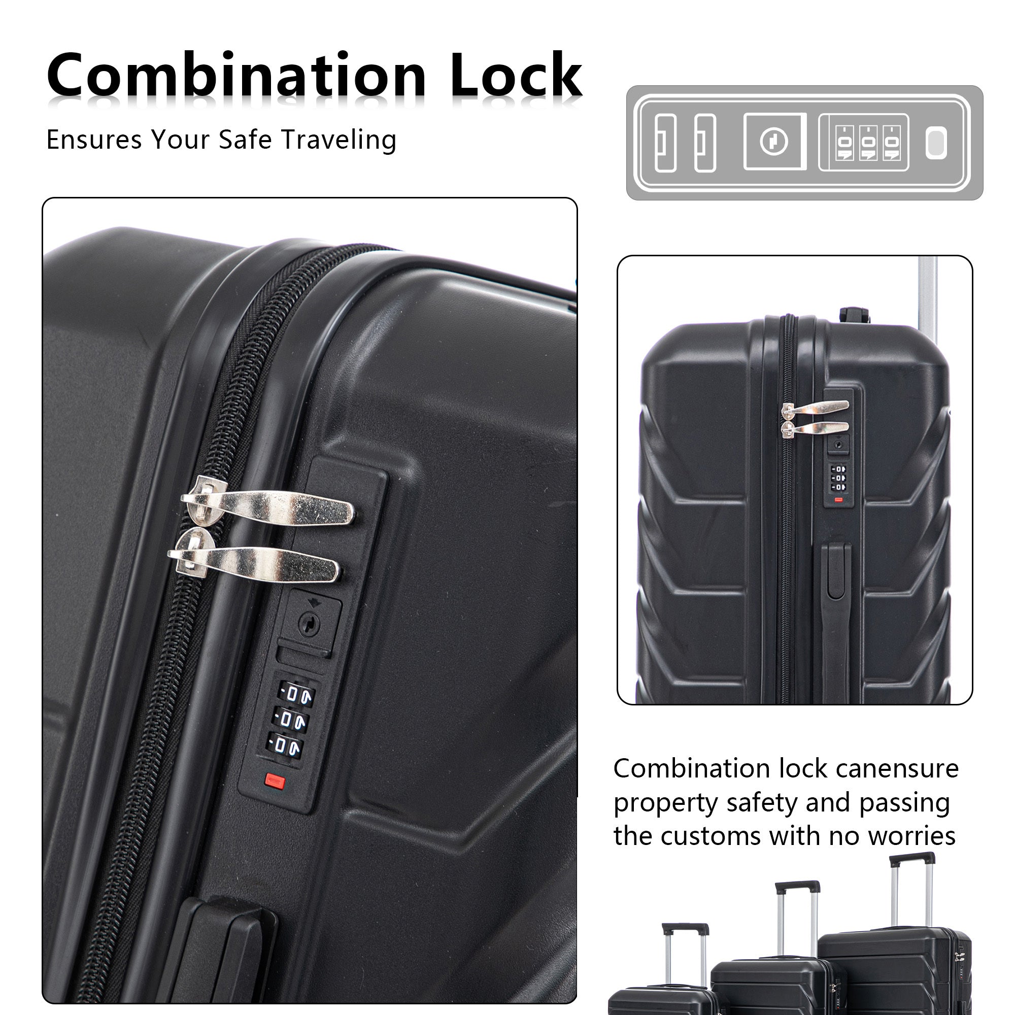 Set 3PCs 20'/24'/28' ABS Spinner Wheel Luggage, Matching Color, with Combination Lock - Black
