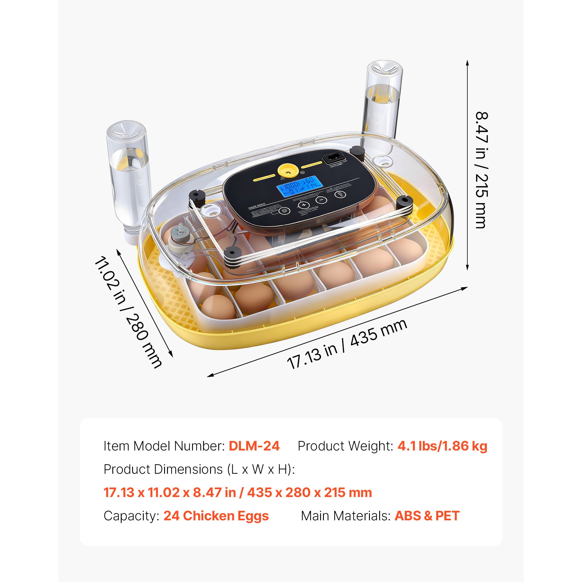 24 Egg Incubator, Automatic Egg Turner with LED Candler, Temperature & Humidity Control, 360° View Clear Window, Auto Water Refill, Poultry Eggs Incubators for Hatching Chicks Ducks Goose Quail