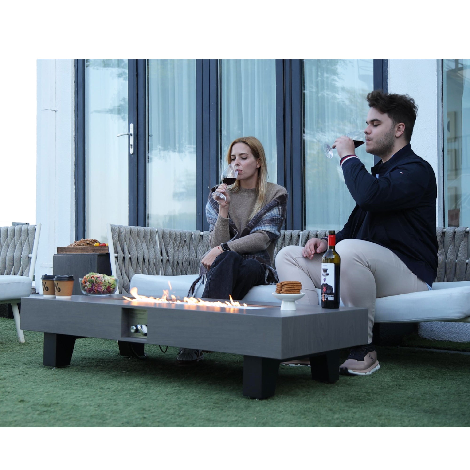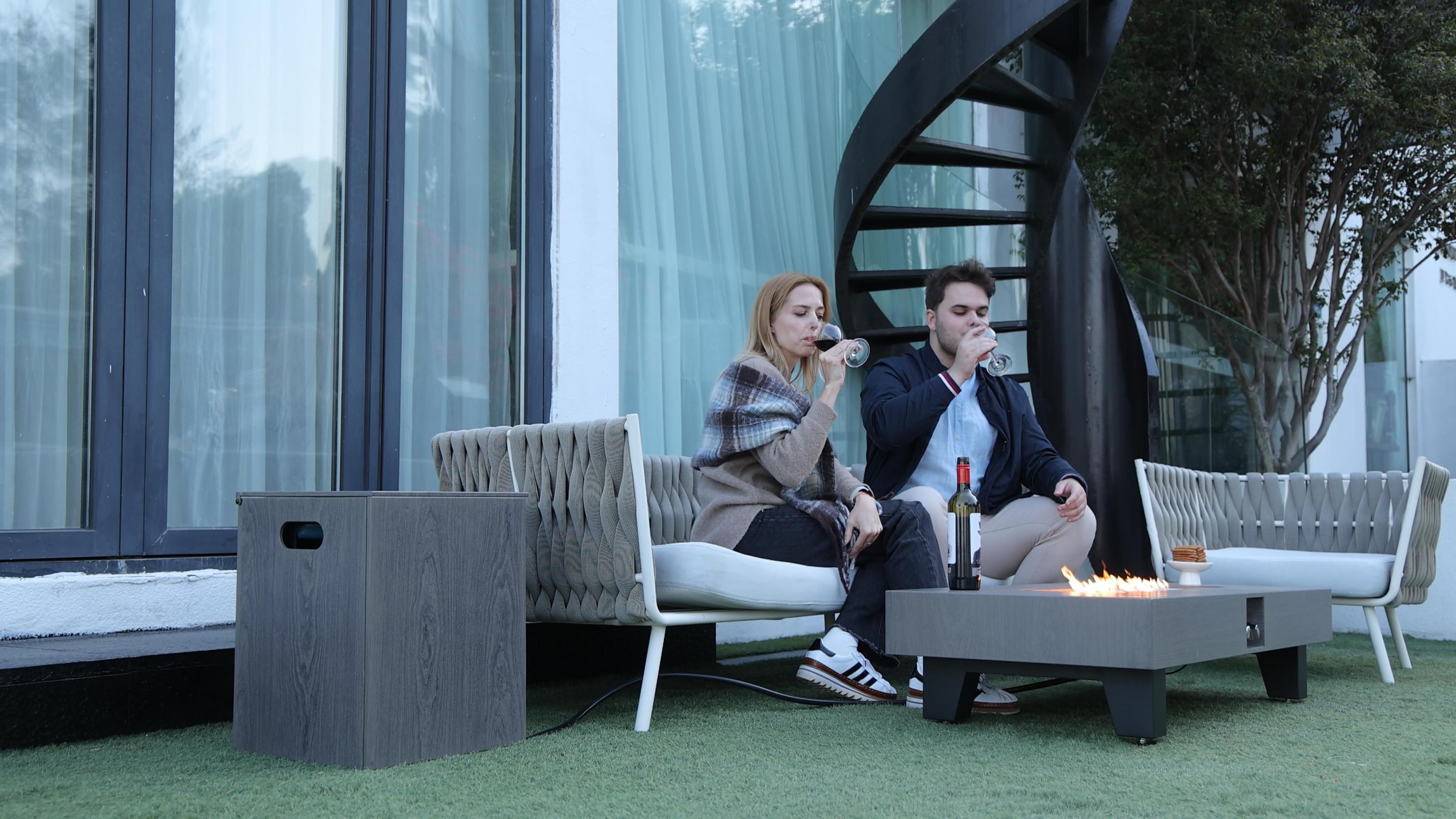 - Environmentally Friendly: Unlike traditional fire pits, this gas-powered fire table burns cleanly, eliminating carbon residue and reducing environmental impact while maintaining warmth. Comes equipped with a waterproof cover to keep it clean and dry when not in use.