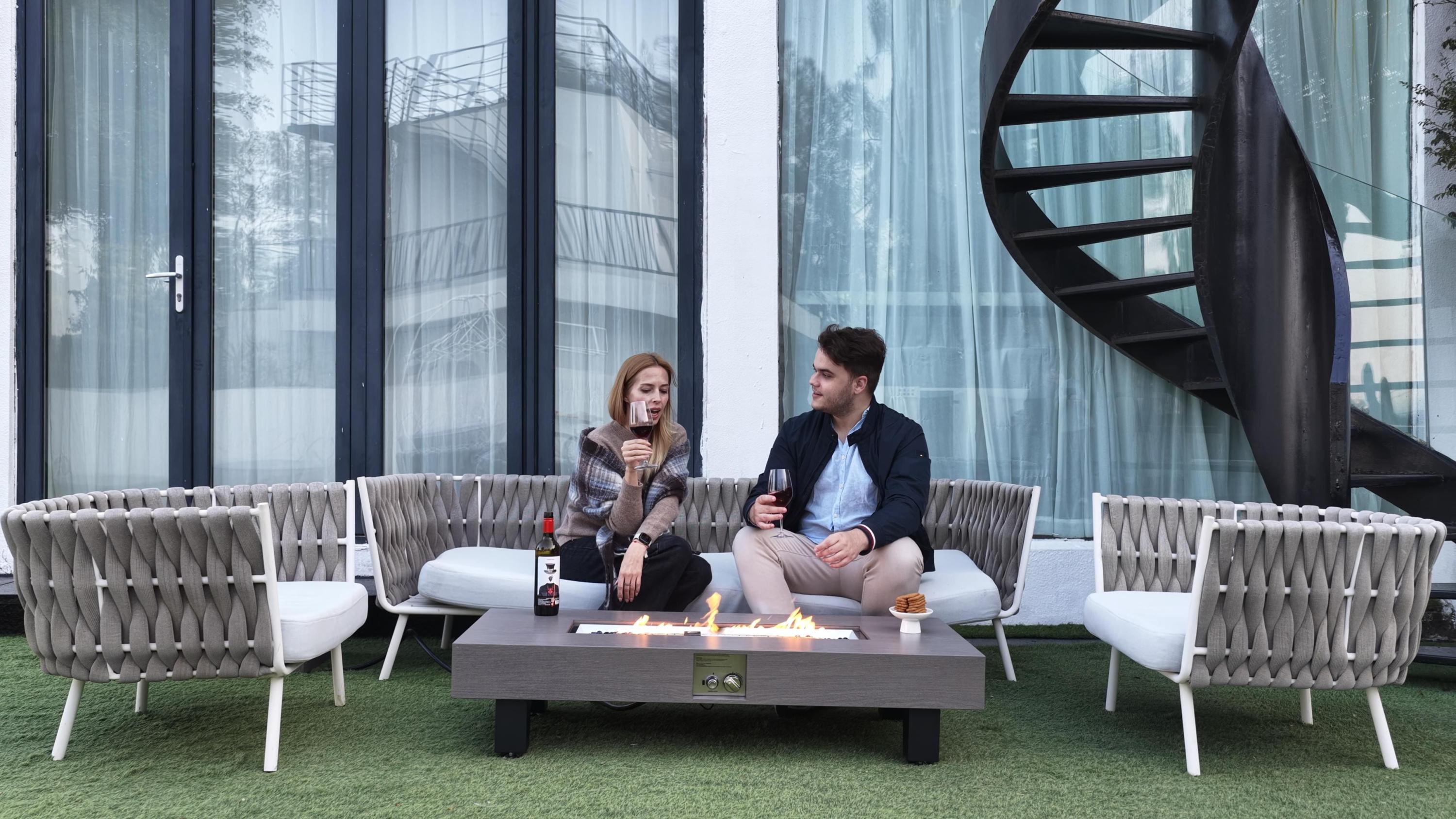 - Modern Design & Durable Construction: Featuring a sleek, contemporary design with stone or walnut wood finish options, this outdoor fire table combines elegance and functionality. Built with a robust stainless steel burner bowl for low maintenance and heat resistance.