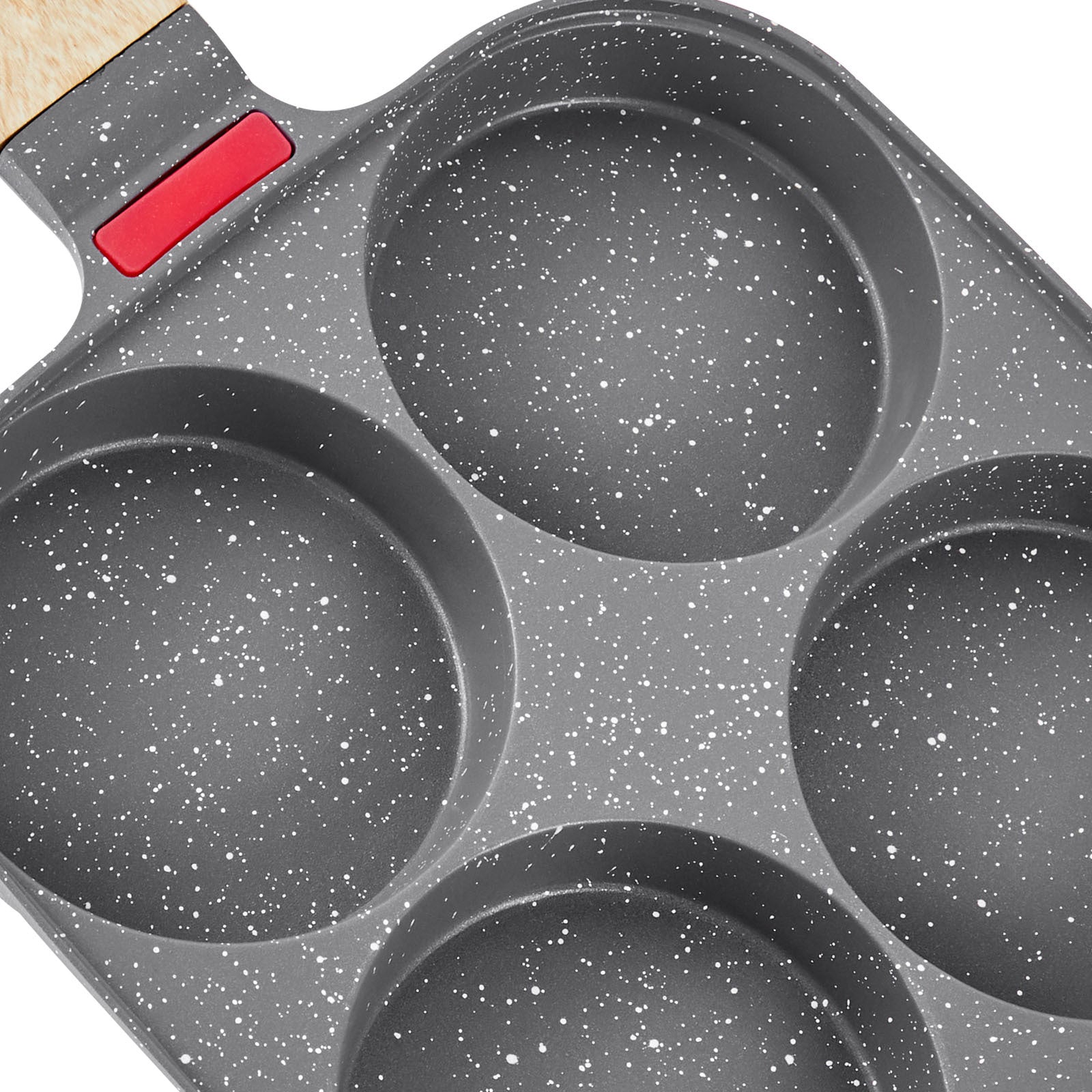 - Cooking Made Efficient: This egg pan features a 4-hole design that lets you fry eggs, bacon, burgers, and pancakes at once. Save time in the morning and enjoy a quick, satisfying breakfast without the wait