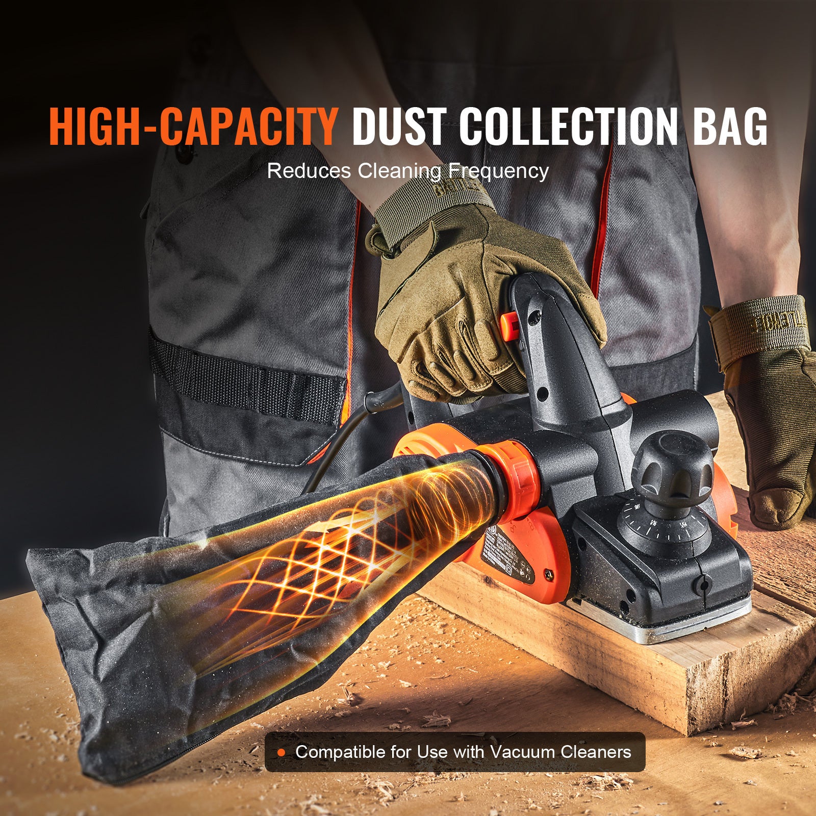- Effortless Cleanup: Equipped with a generously sized dust collection bag, the electric handheld planer reduces the frequency of cleaning while effectively gathering wood shavings, maintaining a clean work environment.