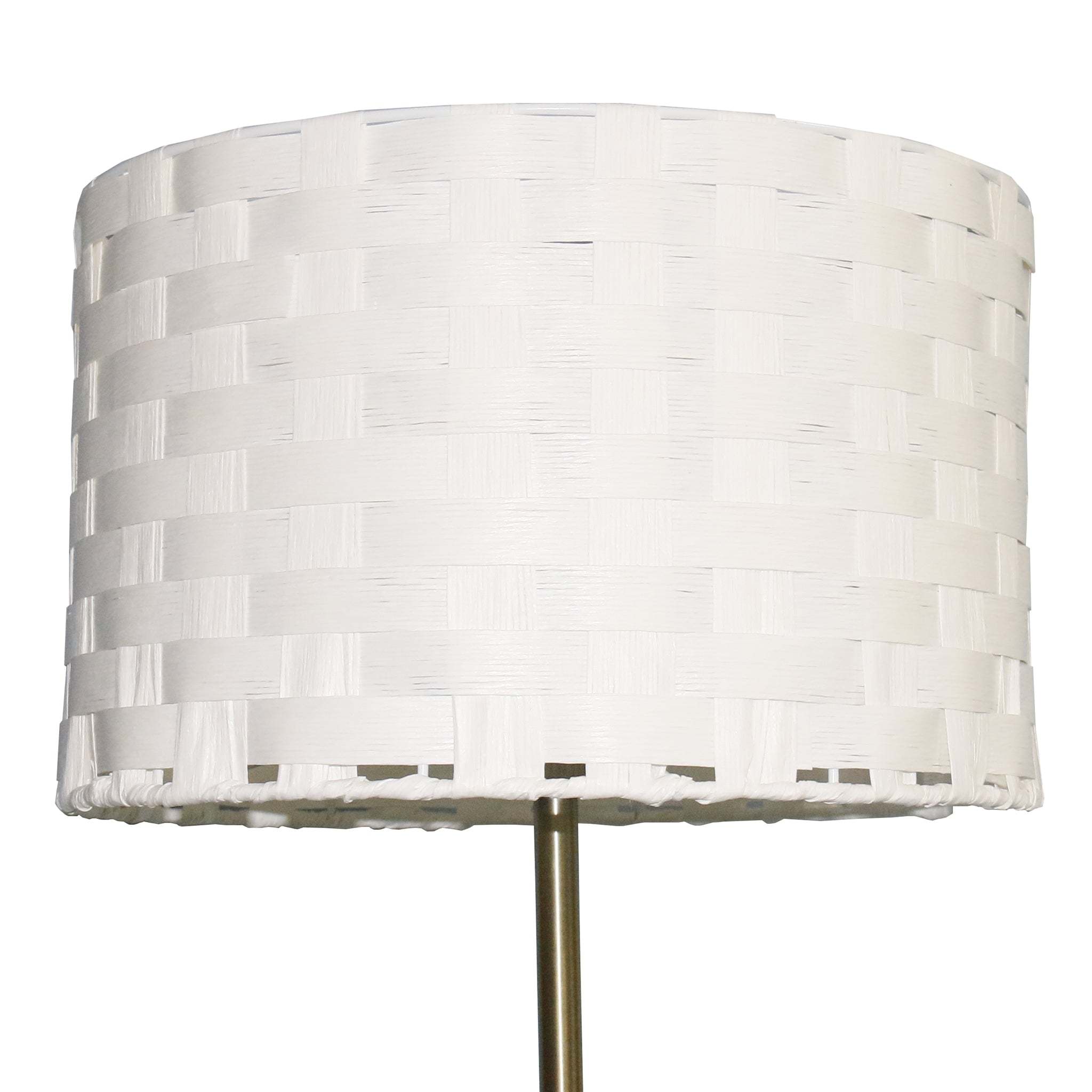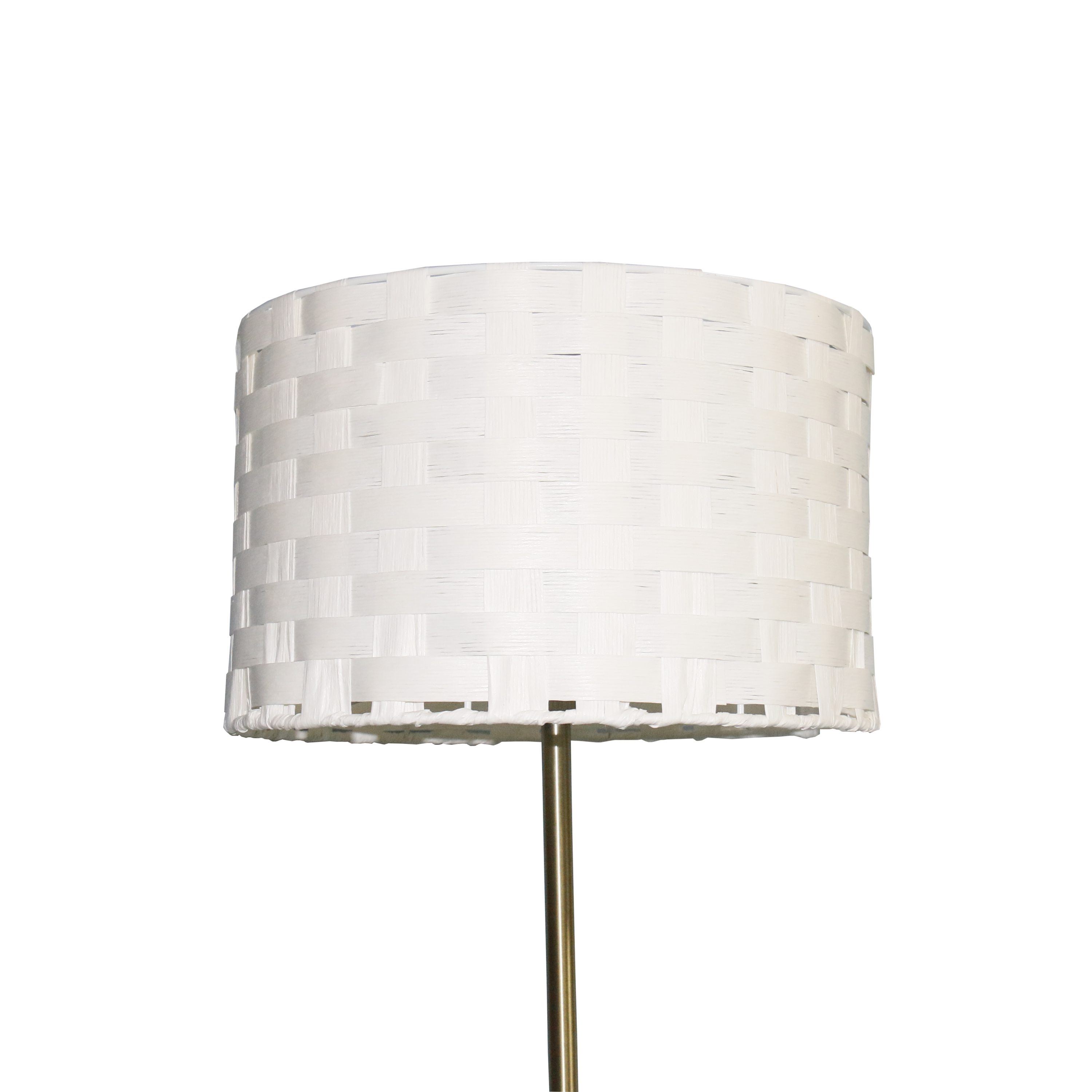 - With its slim profile and tall design, this corner floor lamp fits seamlessly into any space while adding a modern/industrial/minimalist touch. The neutral-colored shade and stable base complement various interior styles effortlessly.