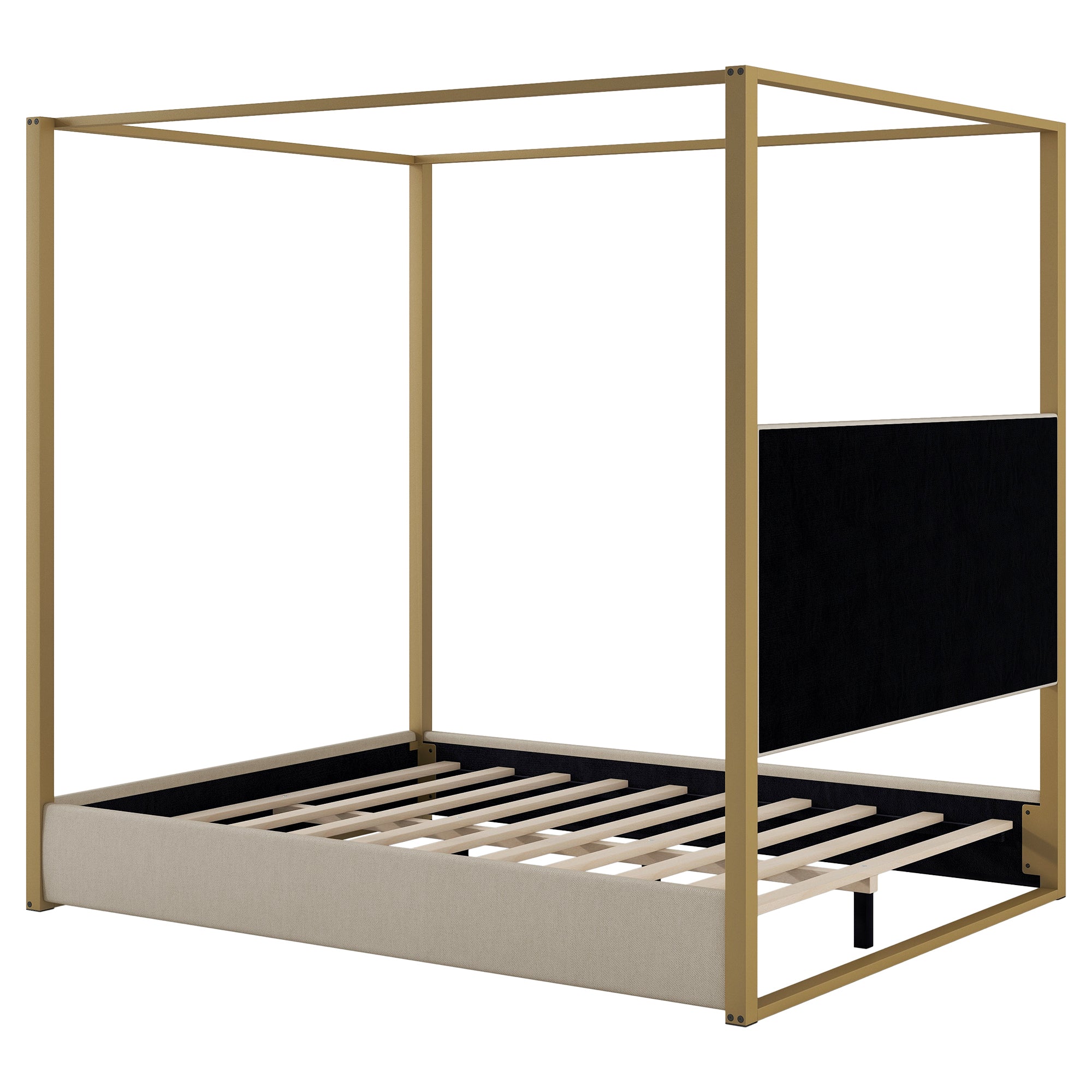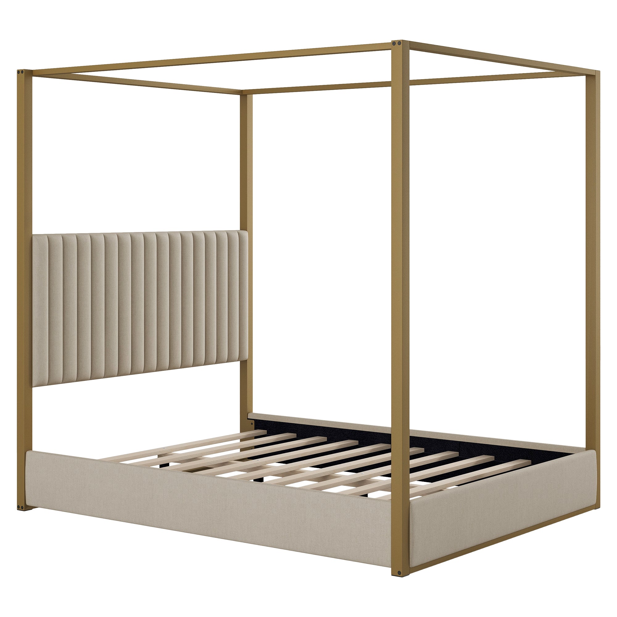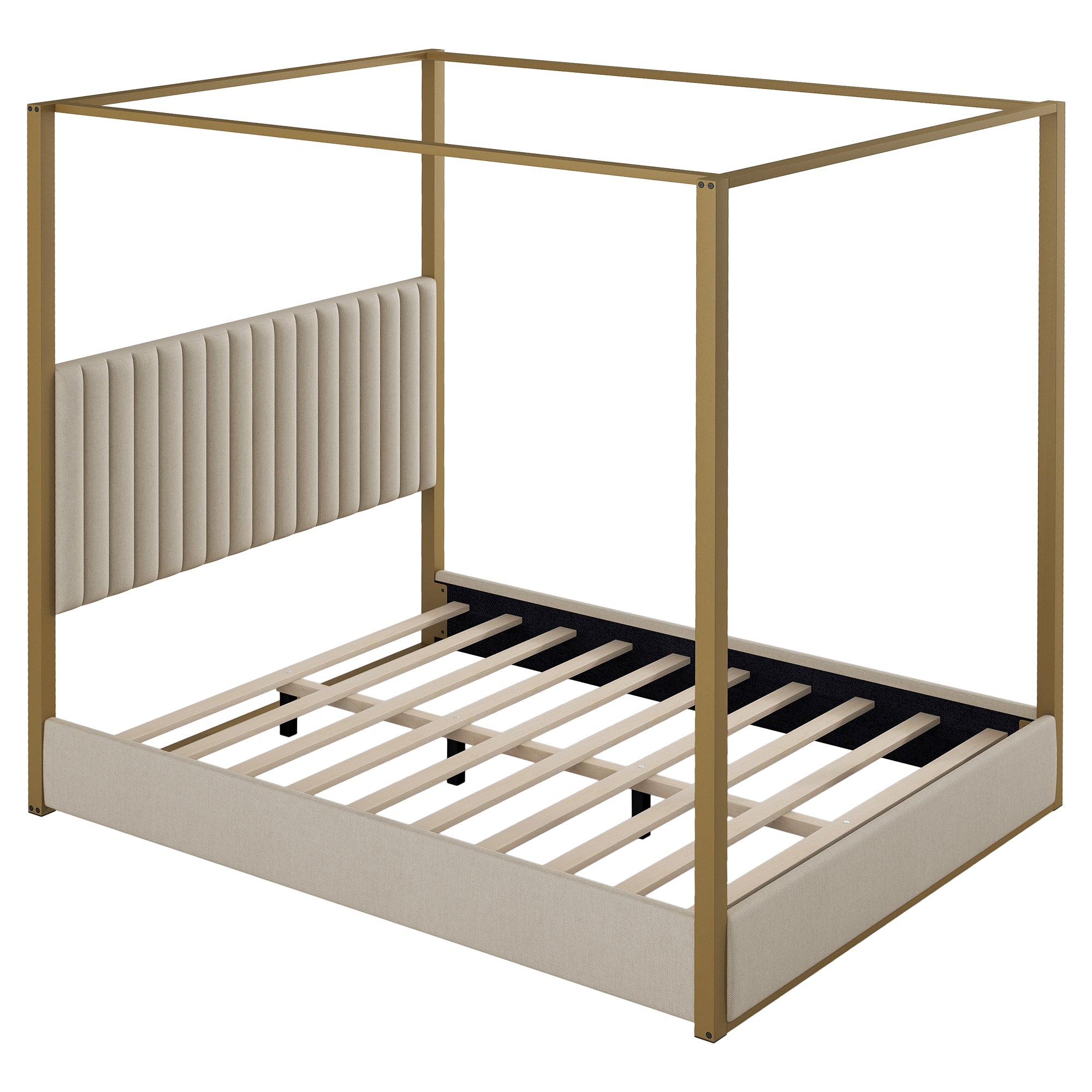 Queen Size Upholstery Canopy Platform Bed with Headboard and Metal Frame, Beige