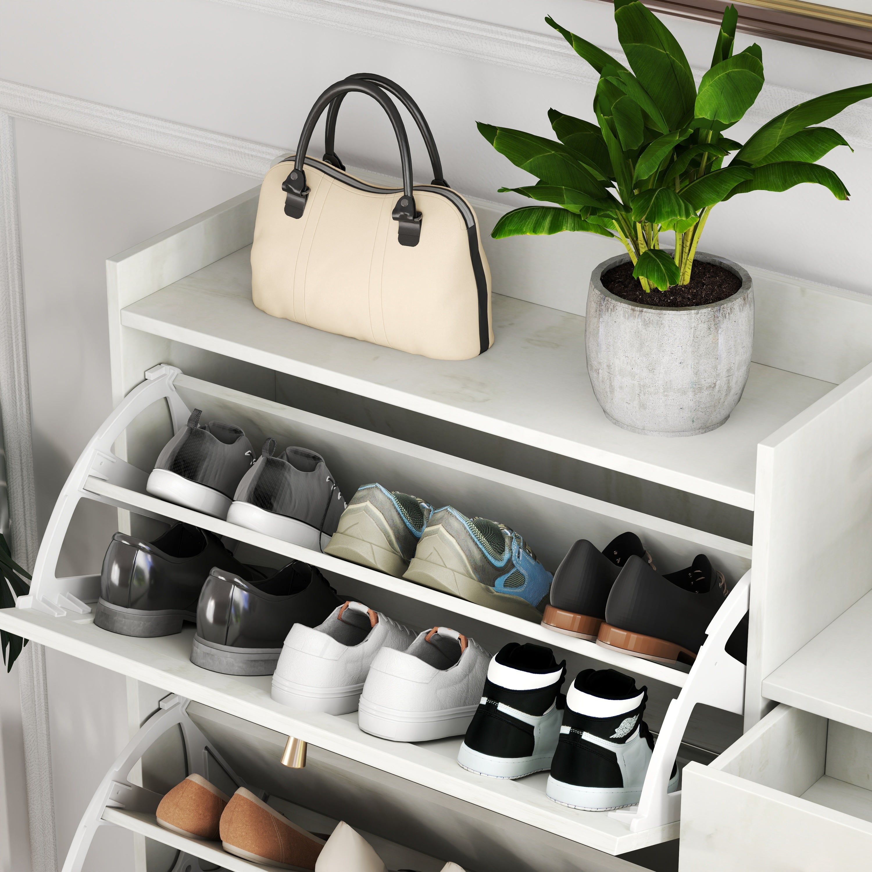 • Thoughtful details design:Ventilation holes on the back, key hooks, storage shelves on the top floor, and anti-tipping barbs make our shoe cabinets not only provide functional storage needs in your home, but also make your use smooth, intimate and hassle-free.