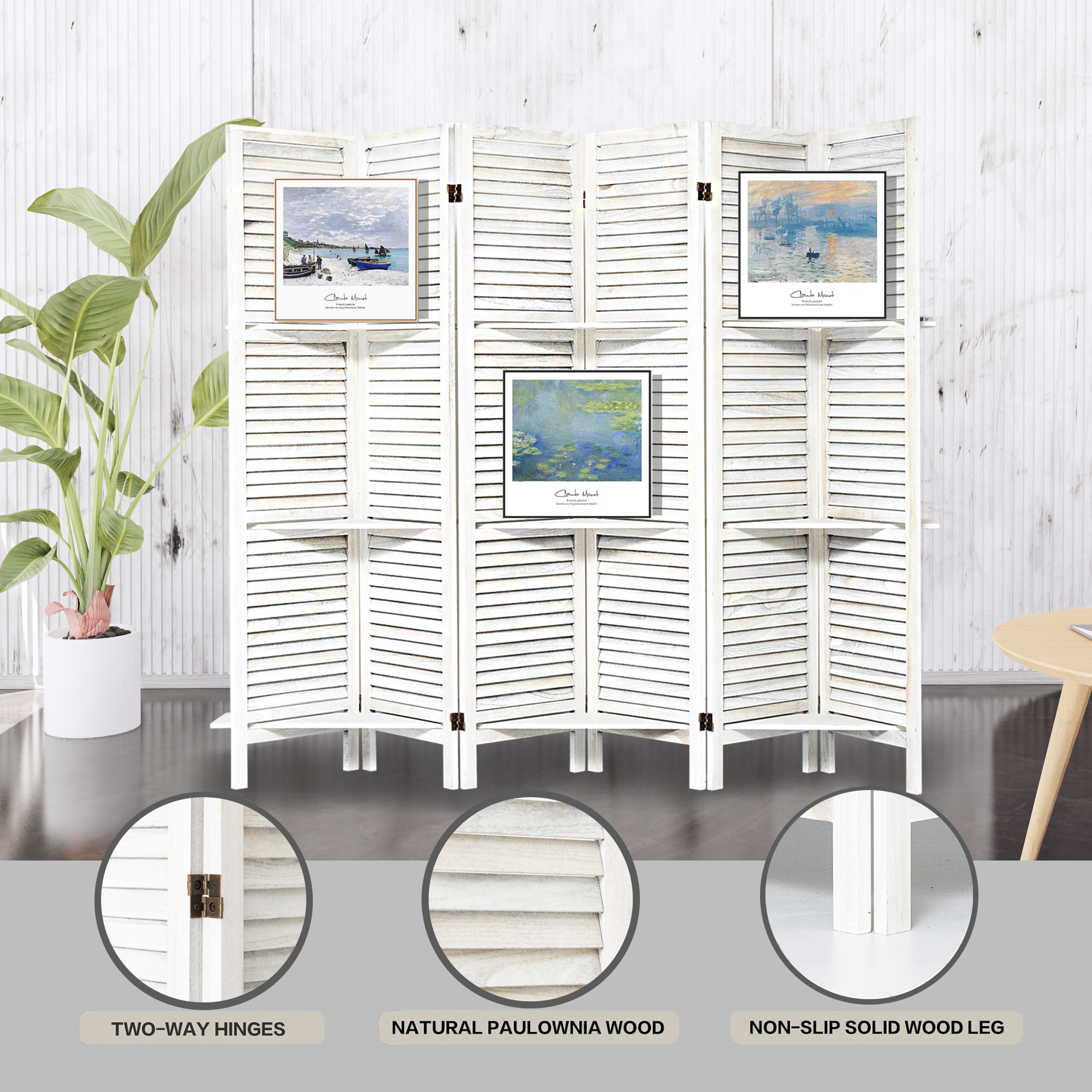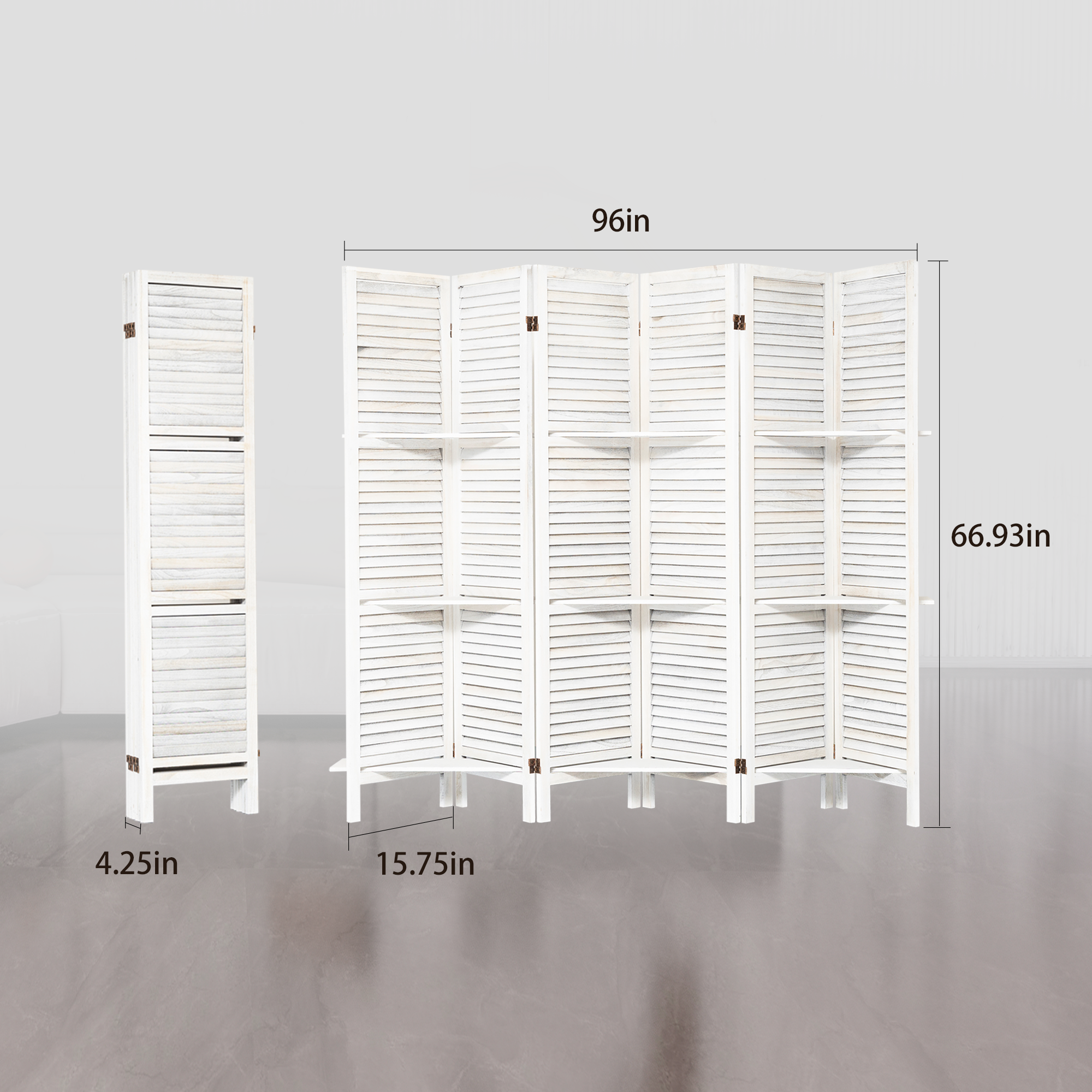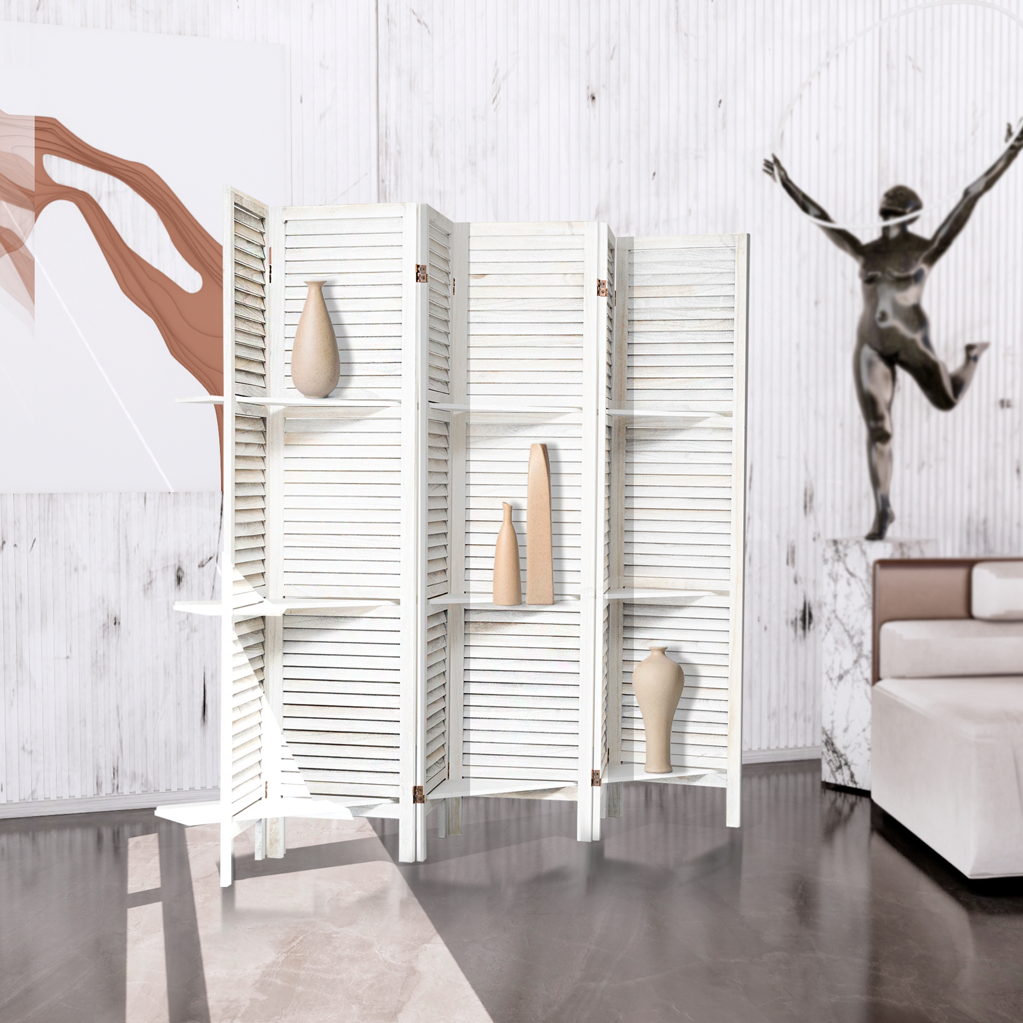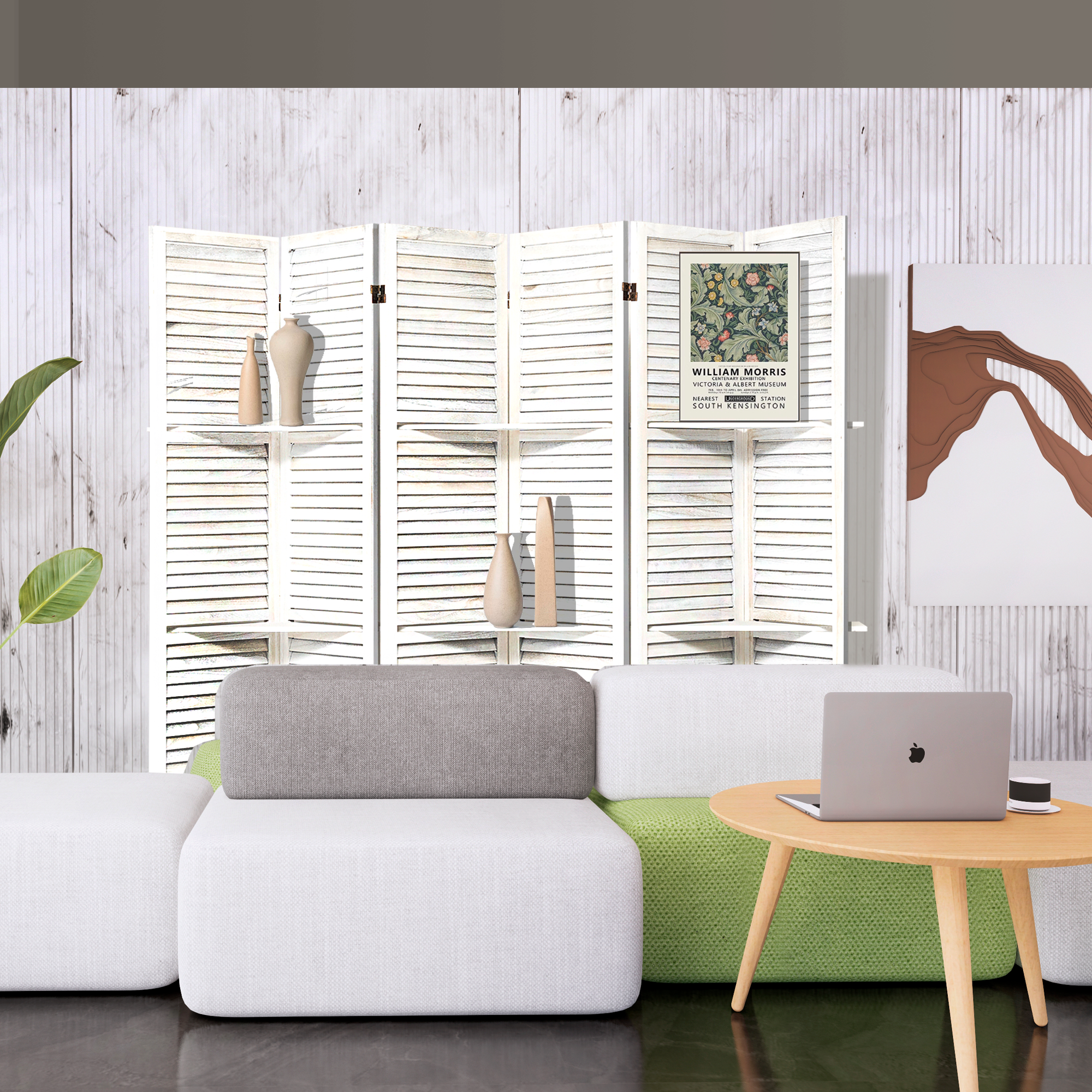 Create privacy and organization with this Room Divider with Shelves. This 6-panel folding privacy screen is designed to offer both function and style, making it perfect for dividing spaces in your home office, studio apartment, or any room that needs separation. The freestanding room divider features built-in shelves for convenient storage, allowing you to keep essentials like books, decor, or office supplies close at hand. The white finish adds a clean, modern touch that complements a variety of decor styles.