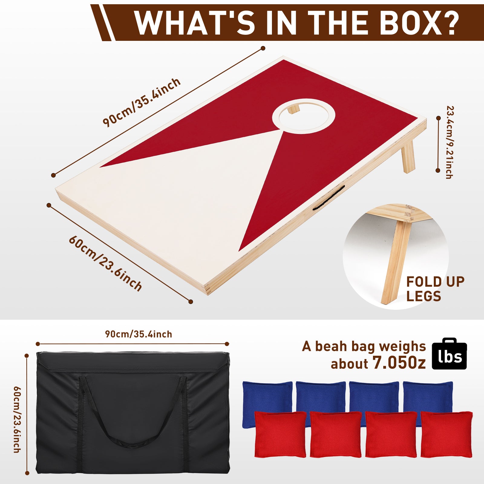 Solid Wood Premium Cornhole Set - 3 Feet x 2 Feet Game Boards, Includes Set of 8 Corn Hole Toss Bags