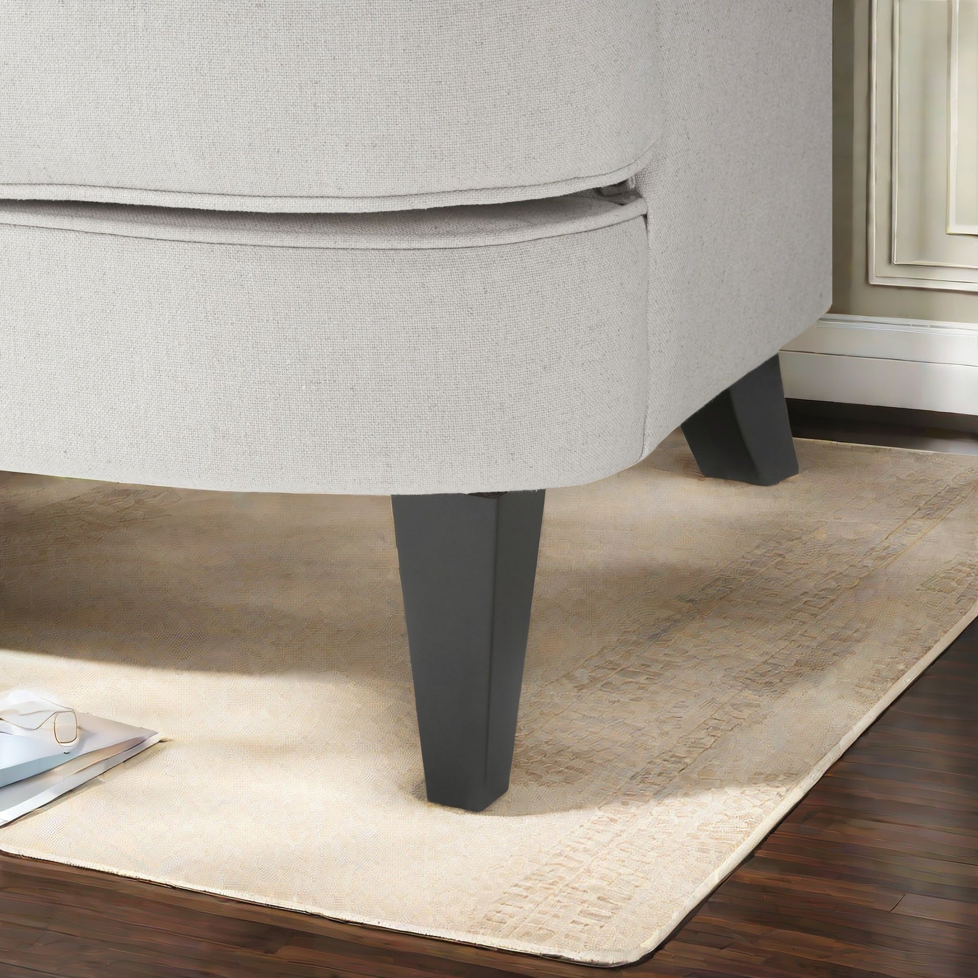 The set includes a matching ottoman, allowing you to kick up your feet and unwind in total comfort. The light grey color blends effortlessly with modern and transitional interiors, while the clean lines and minimalist design enhance any space with a sophisticated touch.