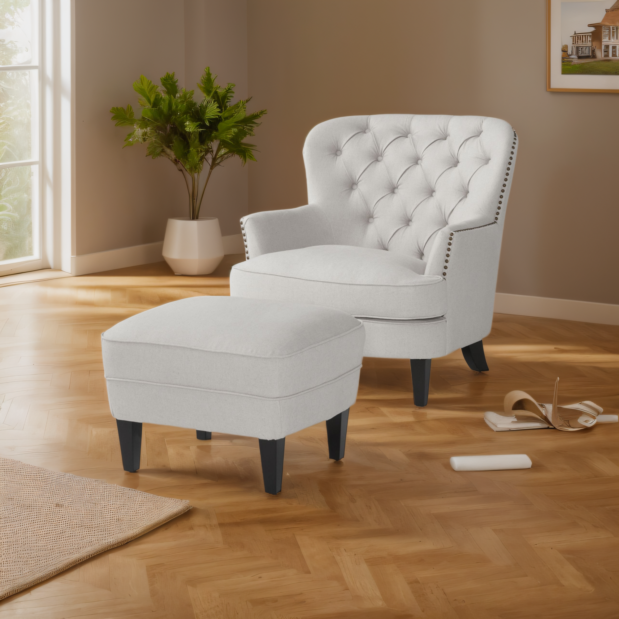 - Versatile Design: The Club Chair and Ottoman set is versatile in both function and style. Whether used as a cozy reading nook in the living room or a relaxation spot in the bedroom, this set adds both comfort and charm to any space.