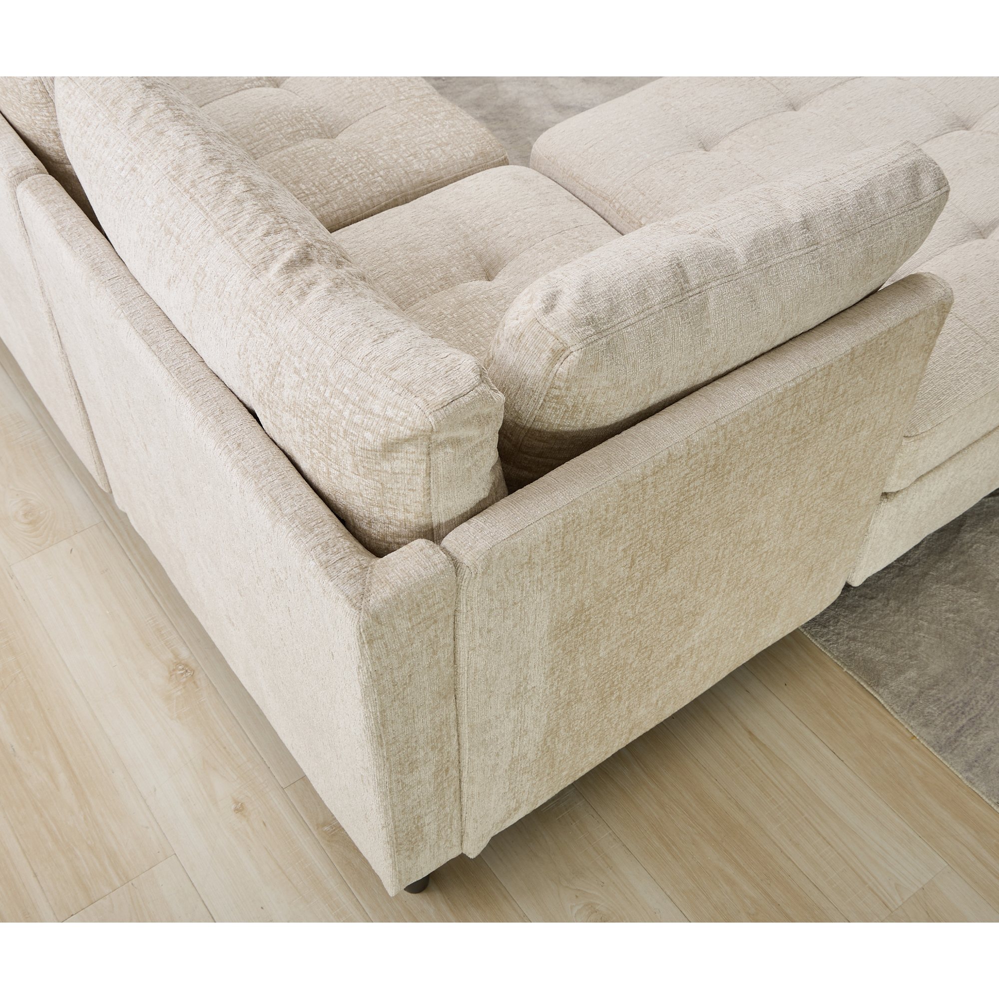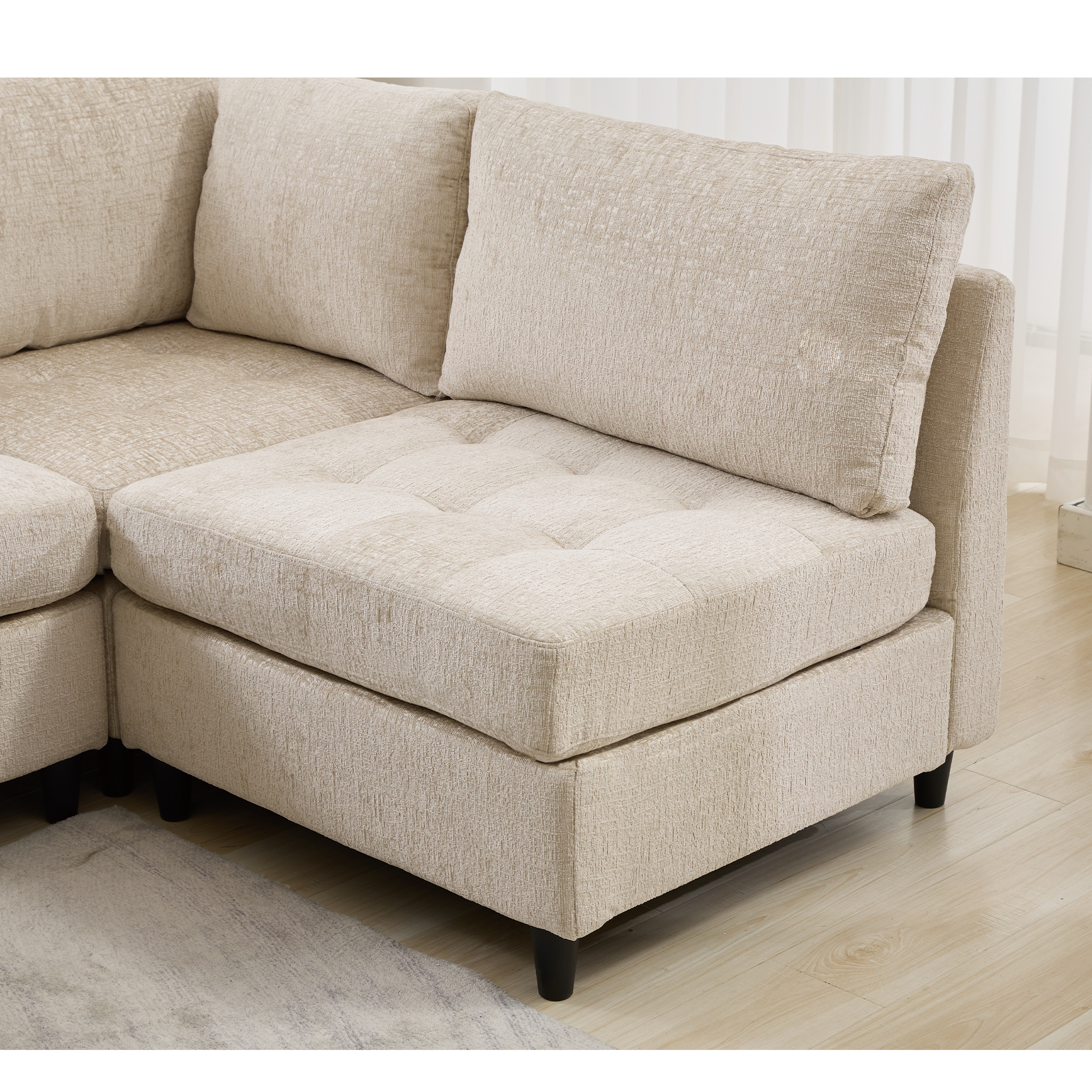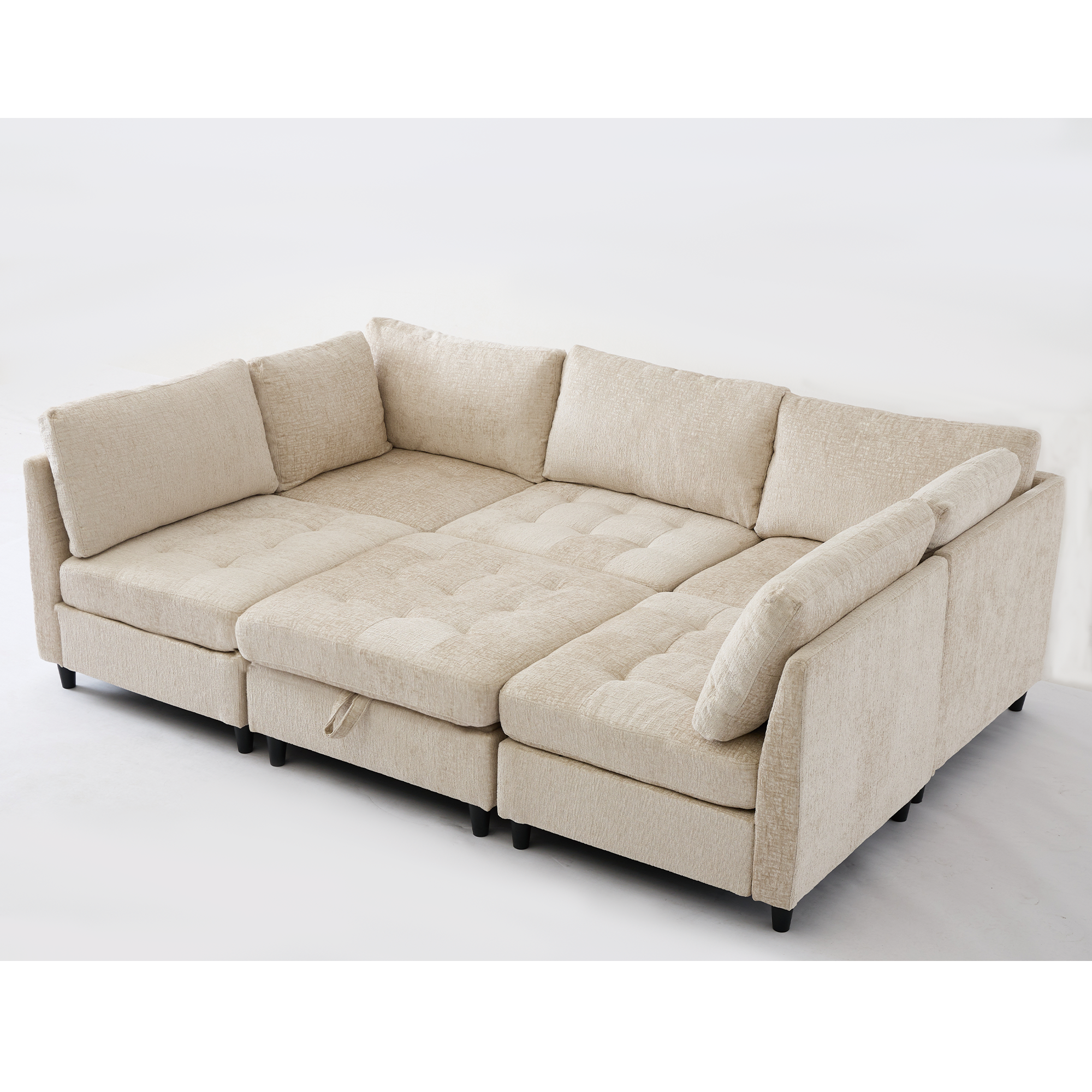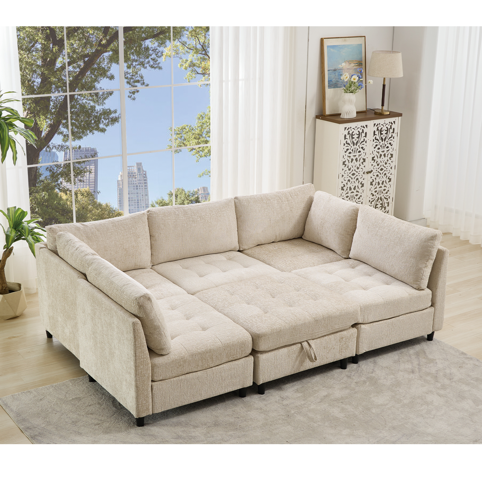 [New Arrival] Modular U-Shaped Sectional Sofa with Storage Ottoman – 6-Seat Convertible Chenille Couch, Beige, Video Provided