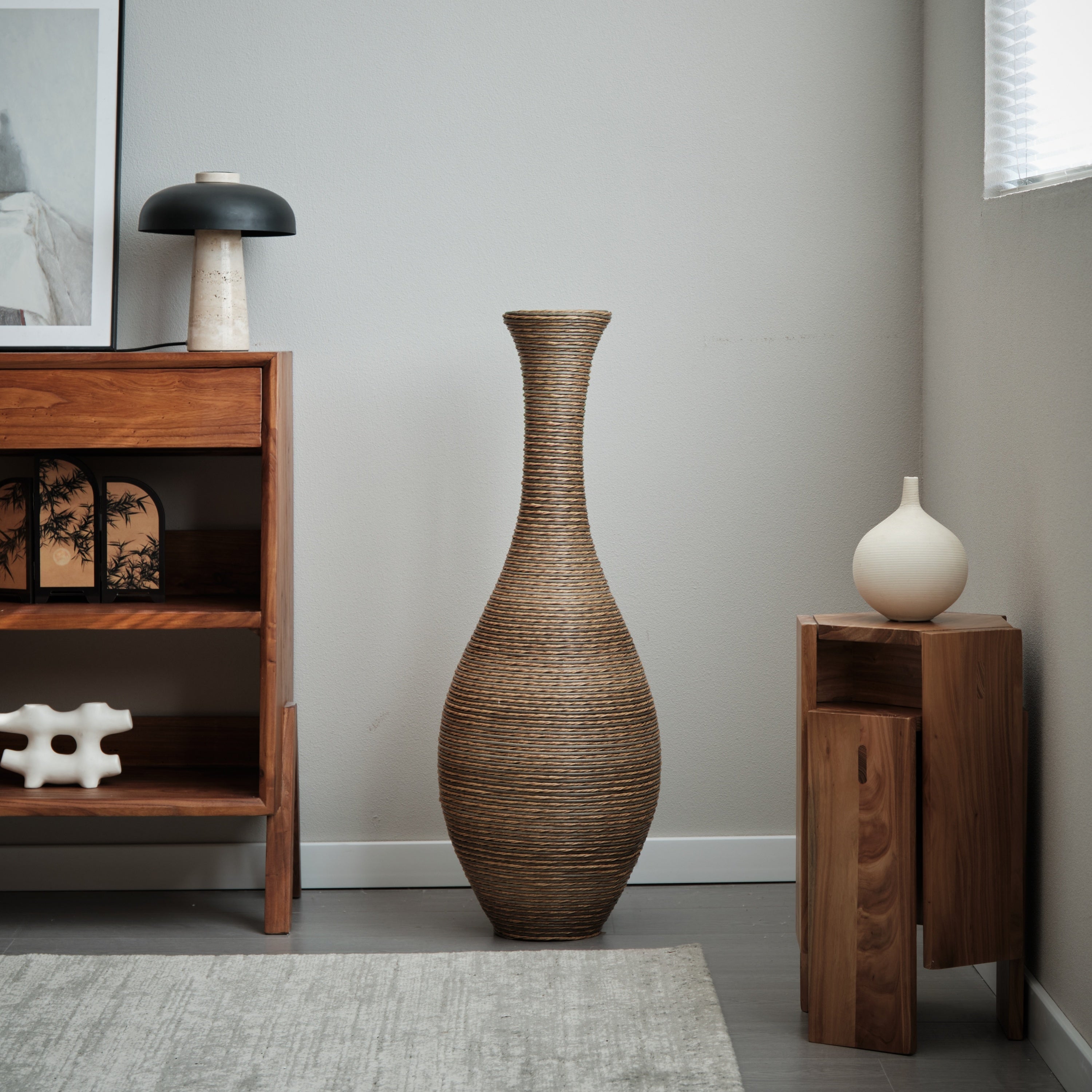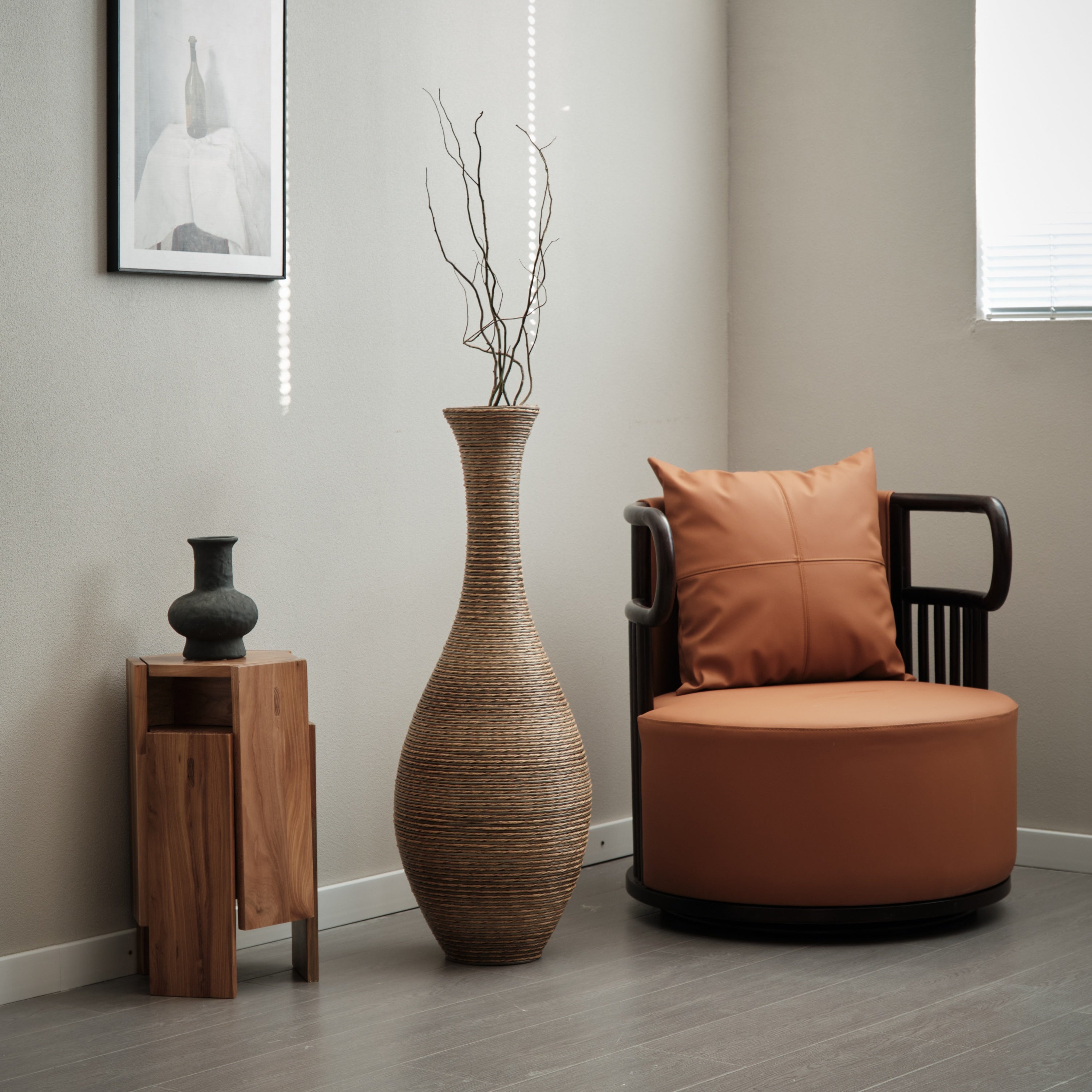 • 39-inch tall decorative floor vase made of artificial rattan
