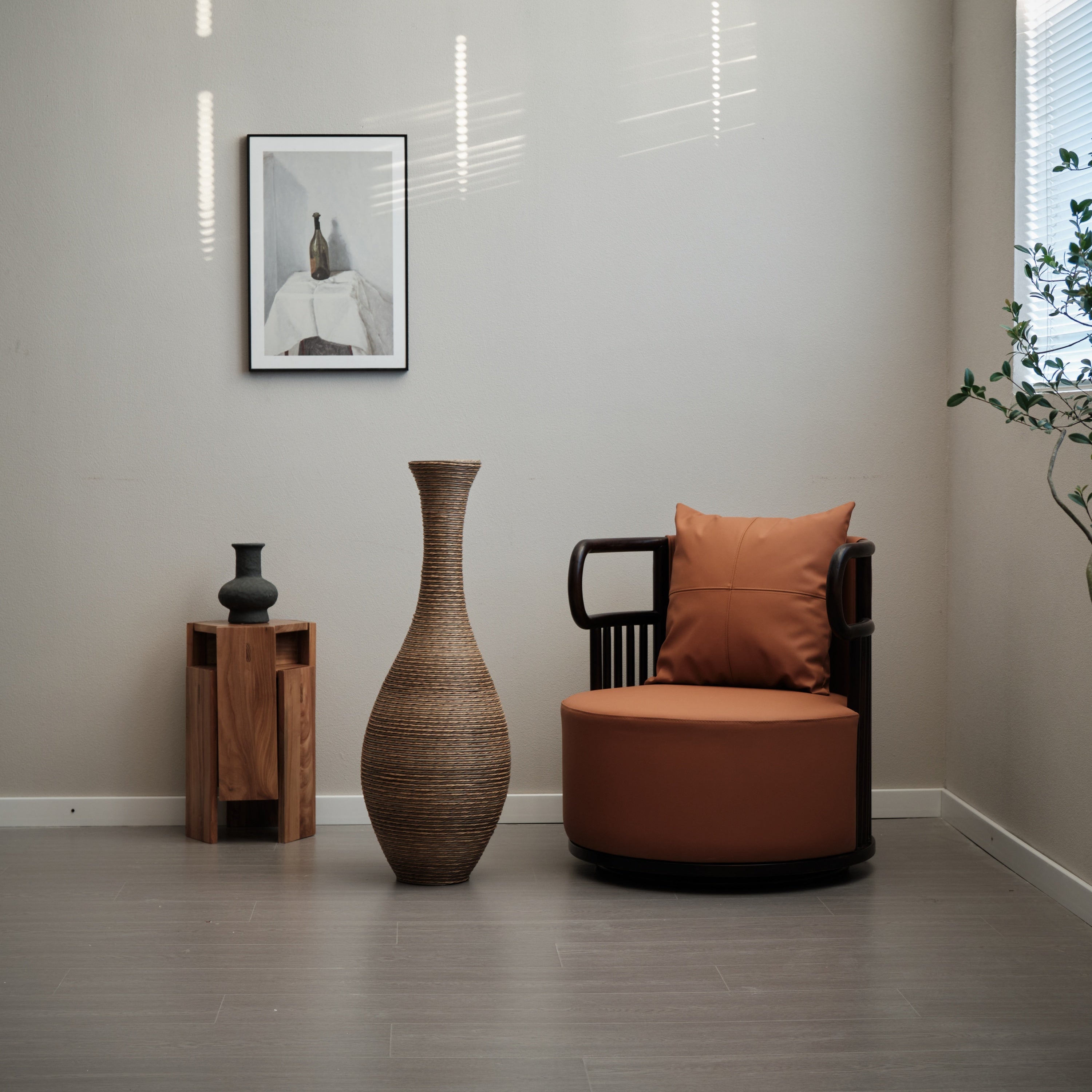 Add natural texture and modern elegance to your space with this 39-inch Tall Artificial Rattan Floor Vase in a warm beige finish. Designed as a statement piece, this tall decorative vase enhances any room with its handcrafted woven design and clean, minimalist silhouette. Perfect for dried or silk floral arrangements, pampas grass, or decorative branches.