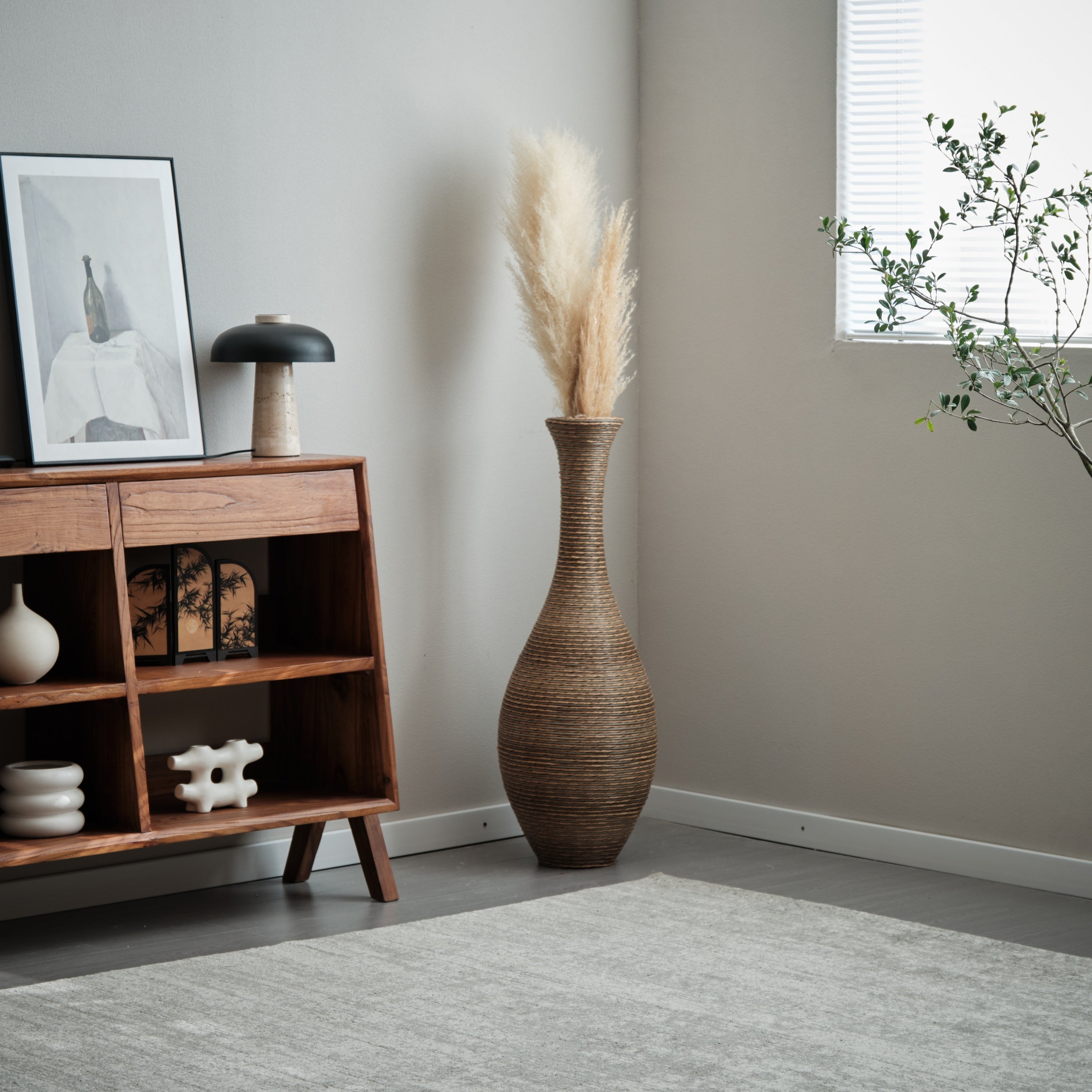 Ideal for use in the living room, hallway, entryway, or even office space, this floor vase is a versatile accent that complements a variety of home décor styles—from boho and coastal to modern and farmhouse. Its lightweight yet sturdy construction makes it easy to move and reposition wherever you need a decorative touch.
