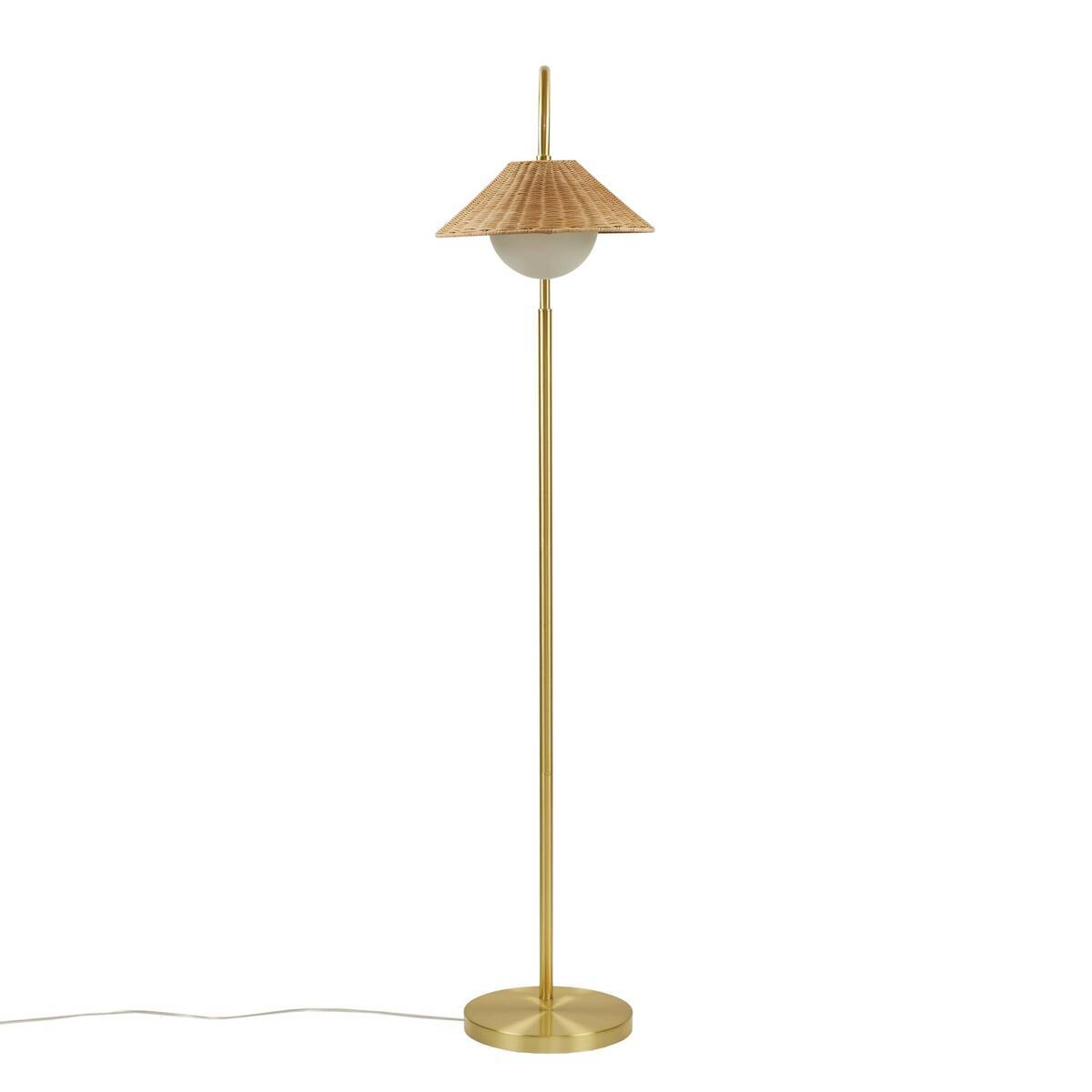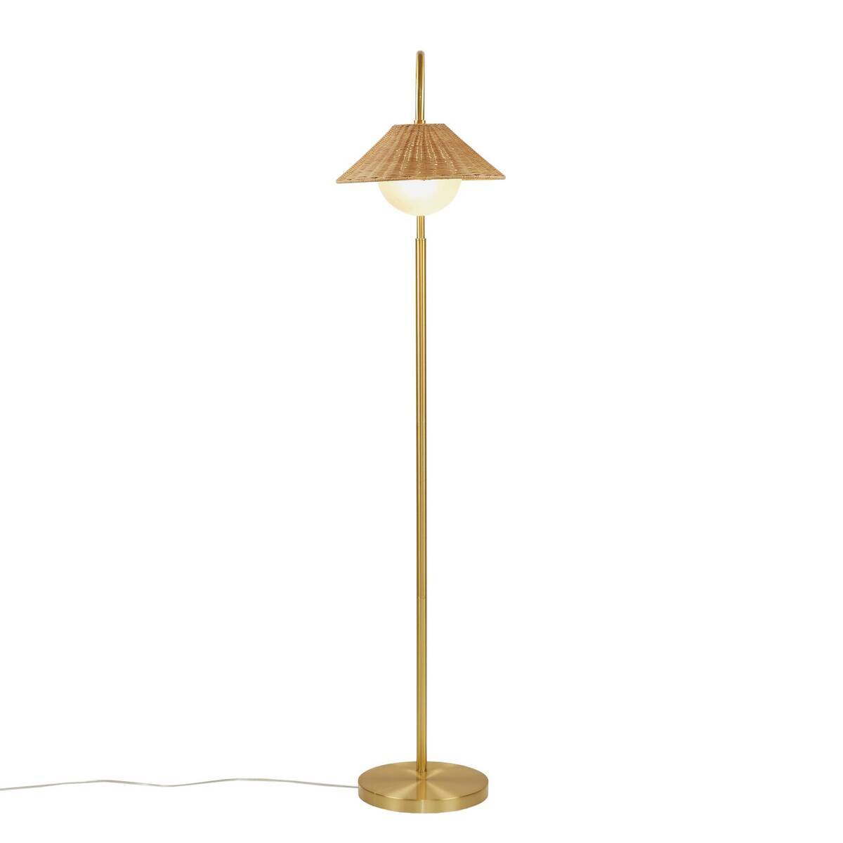 Rattan Weave Shade Floor Lamp | Gold Base & Natural Woven Accent Light