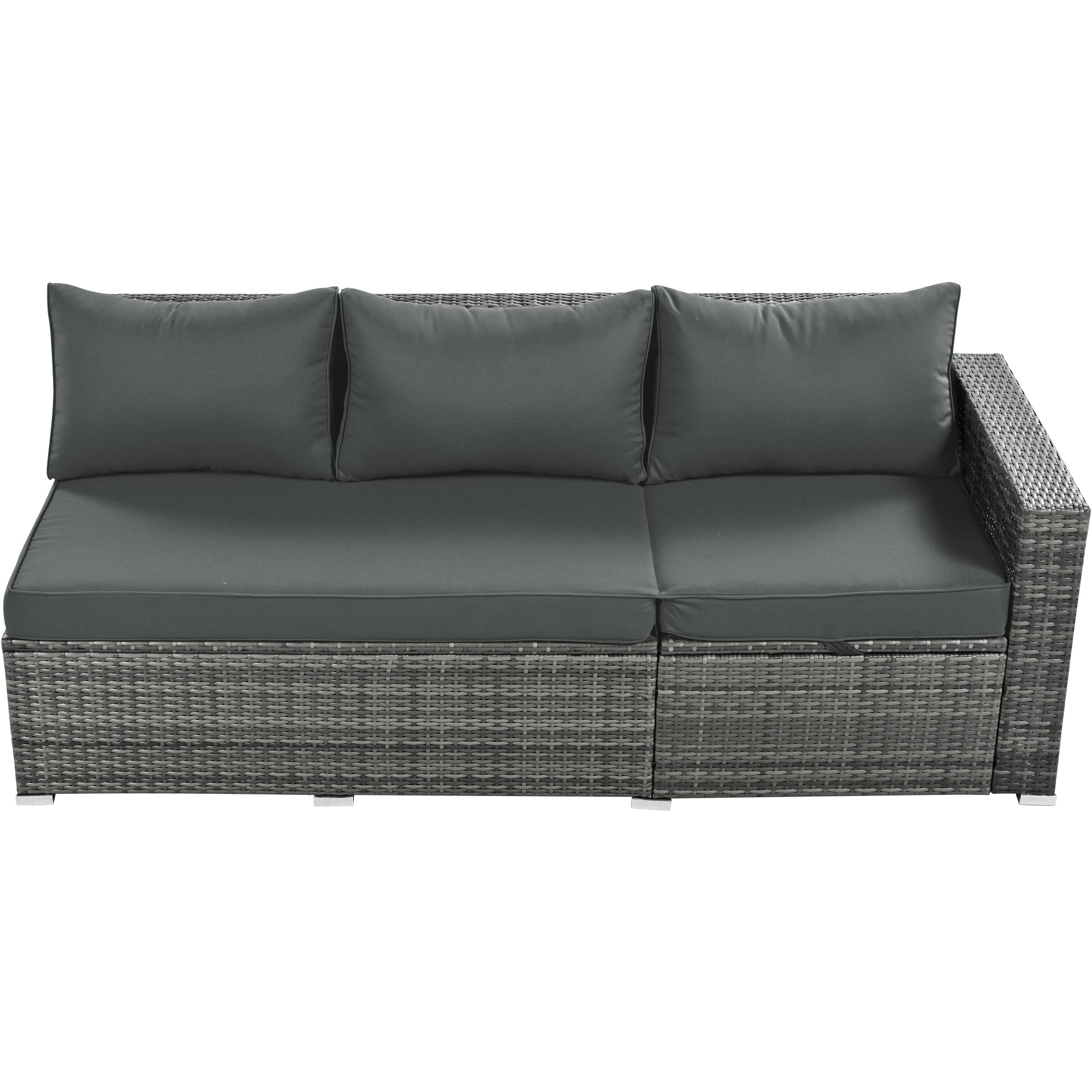This patio rattan sofa set has a number of storage options that make it a great choice for outdoor use.The loveseat sofa features an openable seat that provides ample storage space for cushions and other items, keeping them out of sight and protected from the elements.