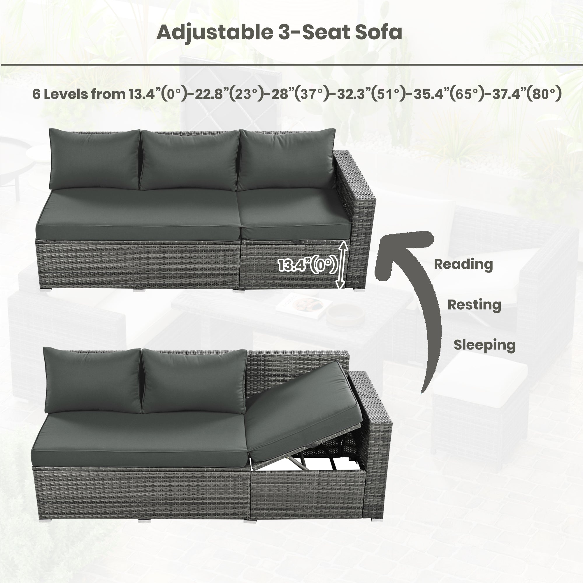 • [Adjustable Set for Comfort] For better comfort, the 3-seat sofa provides with a height adjustable function that allows you to customize your seating experience. The sofa features a 6-level adjustable seat that can be raised or lowered to your desired height, providing comfortable seating for people of different sizes and preferences. Besides, the cushion is fastened by straps which will be fixed and not move.