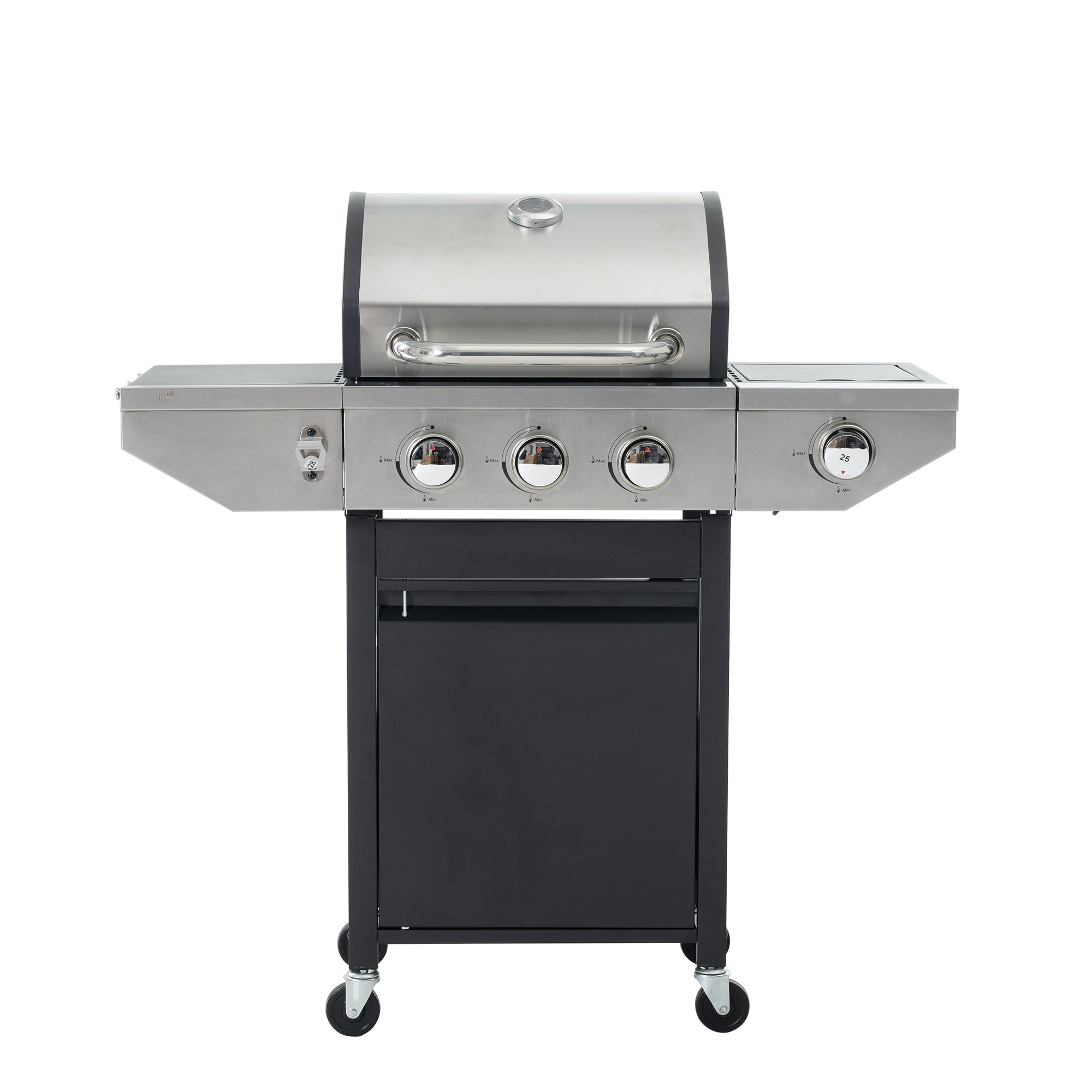 Propane Grill 3 Burner Barbecue Grill Stainless Steel Gas Grill with Side Burner, 37,000 BTU Outdoor Cooking, Patio, Garden Barbecue Grill, Black and Silver