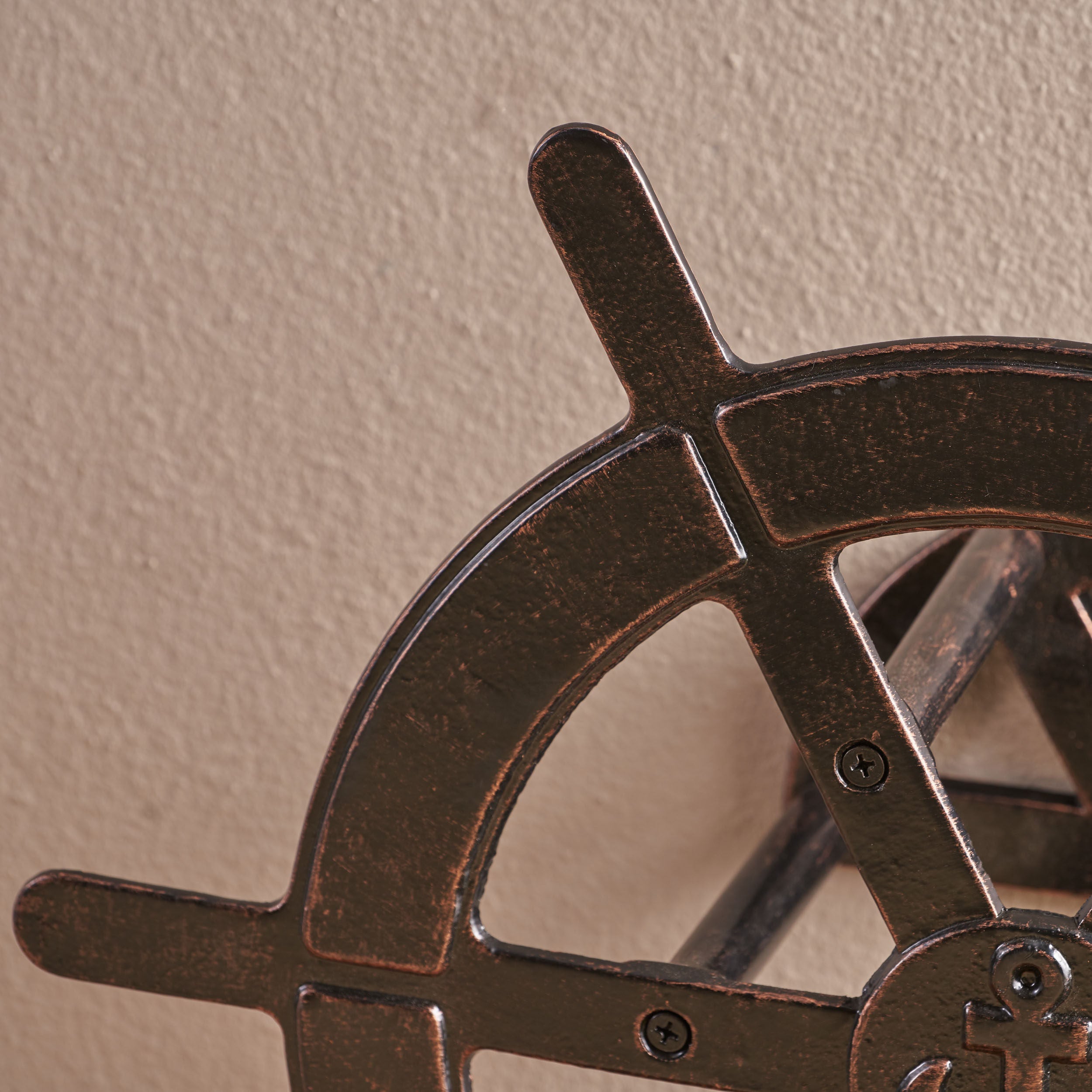 VANORA 20" HOSE HOLDER, Outdoor Shiny Copper Aluminum Ship Wheel Hose Holder