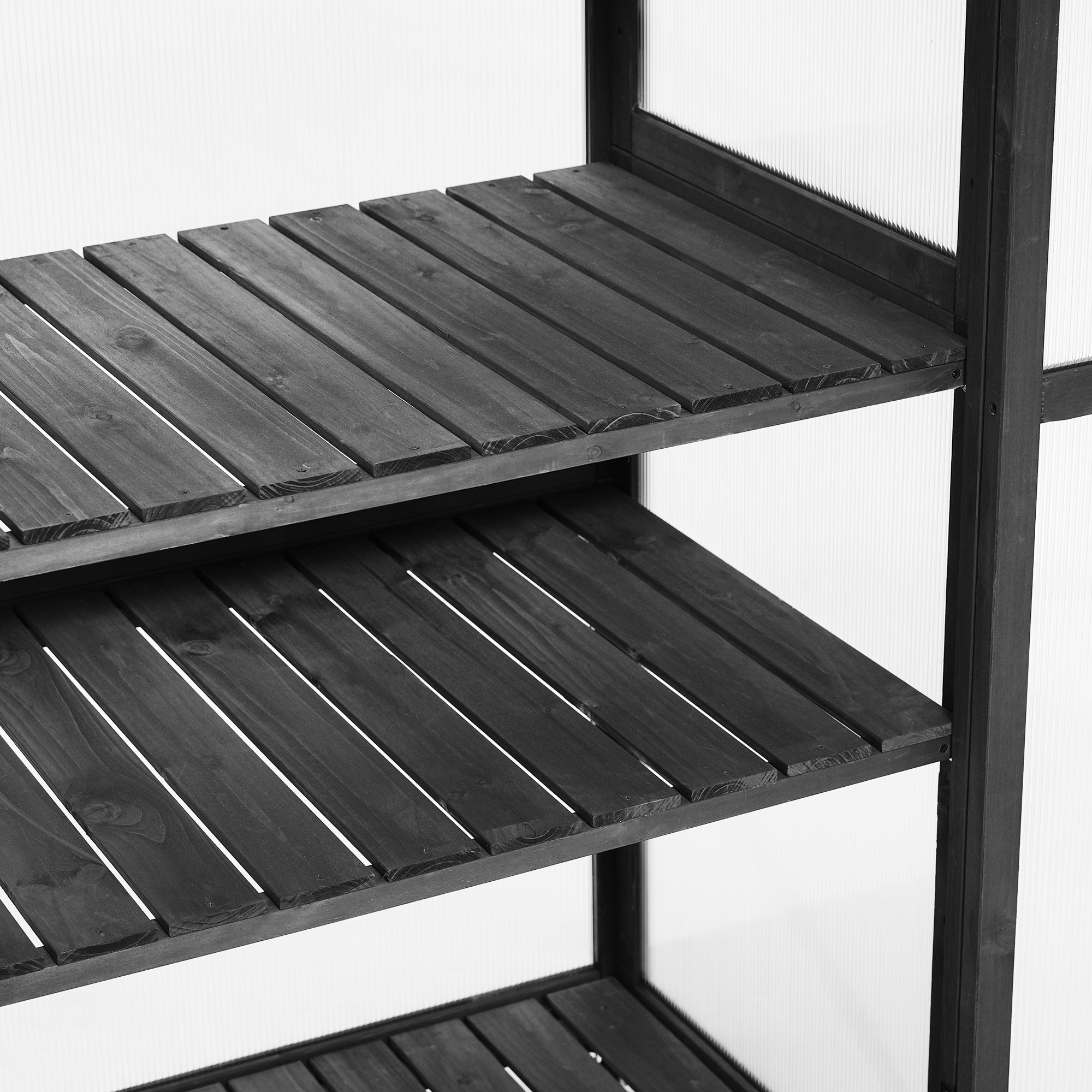 Grow your plants with ease and style using the TOPMAX 62-inch Height Wood Large Greenhouse. Designed for both outdoor and indoor use, this portable cold frame features adjustable shelves to accommodate plants of all sizes and a sturdy wood construction for long-lasting durability. Equipped with wheels for easy mobility, you can effortlessly move the greenhouse to different locations on your balcony, patio, or garden. The sleek black finish adds a modern touch while providing a perfect environment for nurturing your plants year-round. Ideal for gardeners looking for a versatile, space-efficient solution, this greenhouse ensures your plants thrive no matter the season.