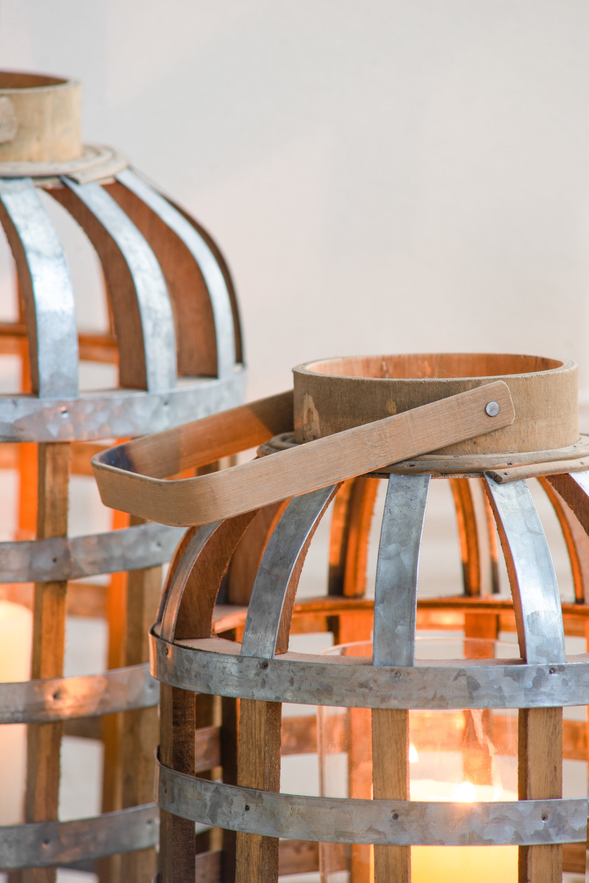 The large Shanghai Lantern effortlessly blends exotic and industrial styles to create a stunning yet functional piece. Use this lantern indoors or outdoors to house candles. With impressive versatility, this piece may be hung with the bamboo handle or placed on a side table. The stout base gives this lantern a reassuring sturdiness while light radiates through the openings to enchant your home.