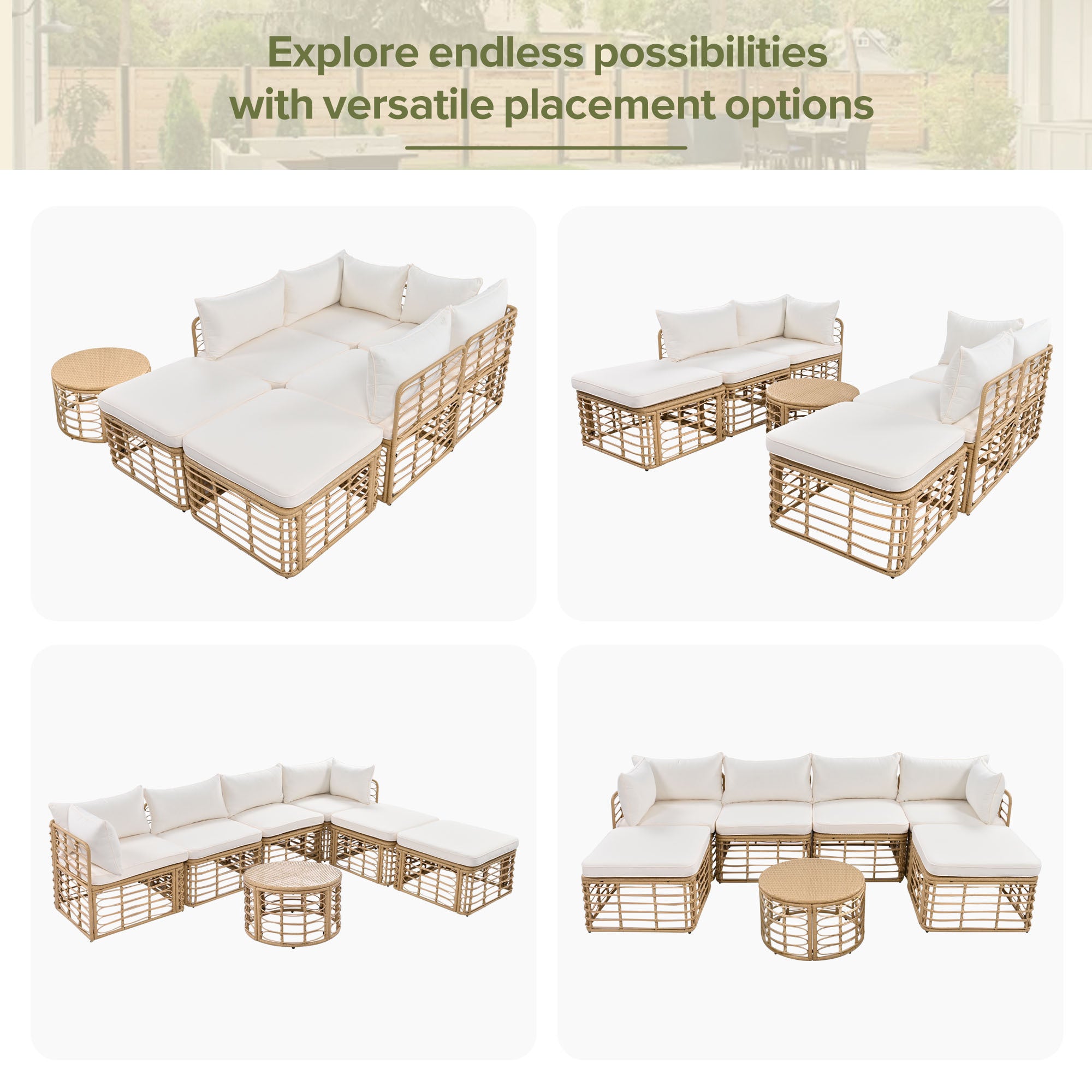 GO 7 Pieces Outdoor Patio Furniture, All-Weather Rattan Sectional Sofa Set with Thick Cushions and Pillows, Freely Combined Conversation Sets for Garden, Backyard, Balcony, Beige