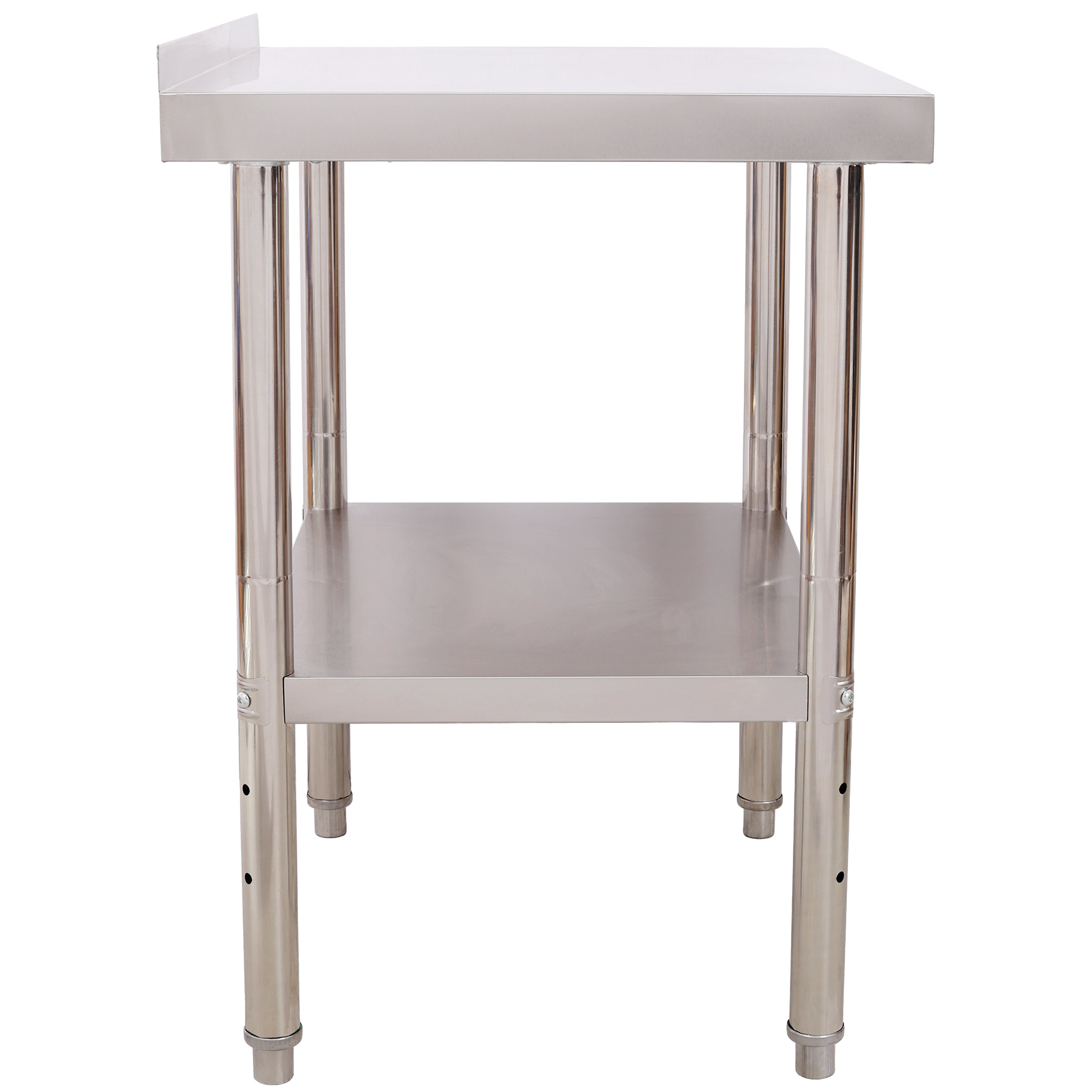 - Durable Material:Crafted from 201 stainless steel, the table resists rust, corrosion, and is easy to clean. Its wire-drawn surface is scratch-resistant, stain-resistant, and sleek. A backsplash prevents items from falling, while smooth edges avoid hand injuries.