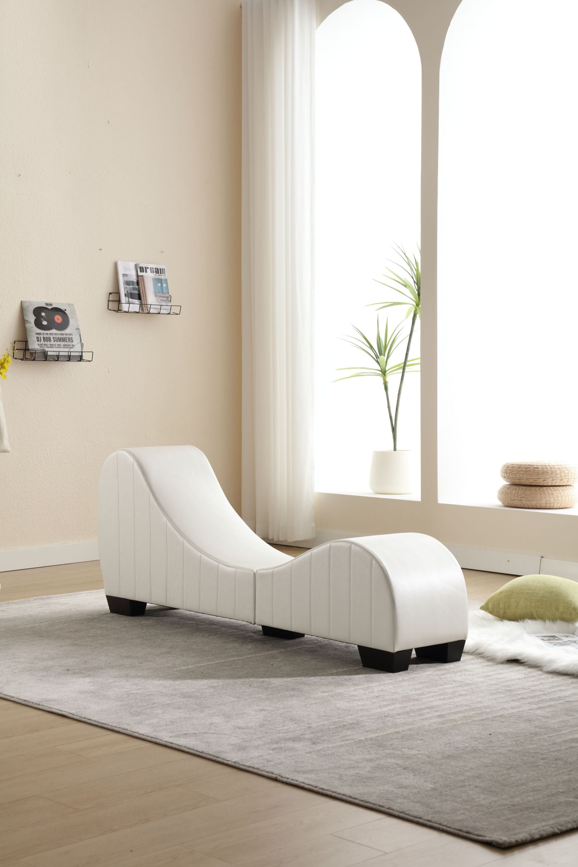 Factory Direct Yoga Chaise Lounge Collection for Stretching and Relaxation, Modern Faux Leather Curved Sofa, Perfect Accent for Living Room and Bedroom, Comfortable Design for Ultimate Comfort and Style. Ideal for Yoga, Meditation, and Relaxing Leisure Time.