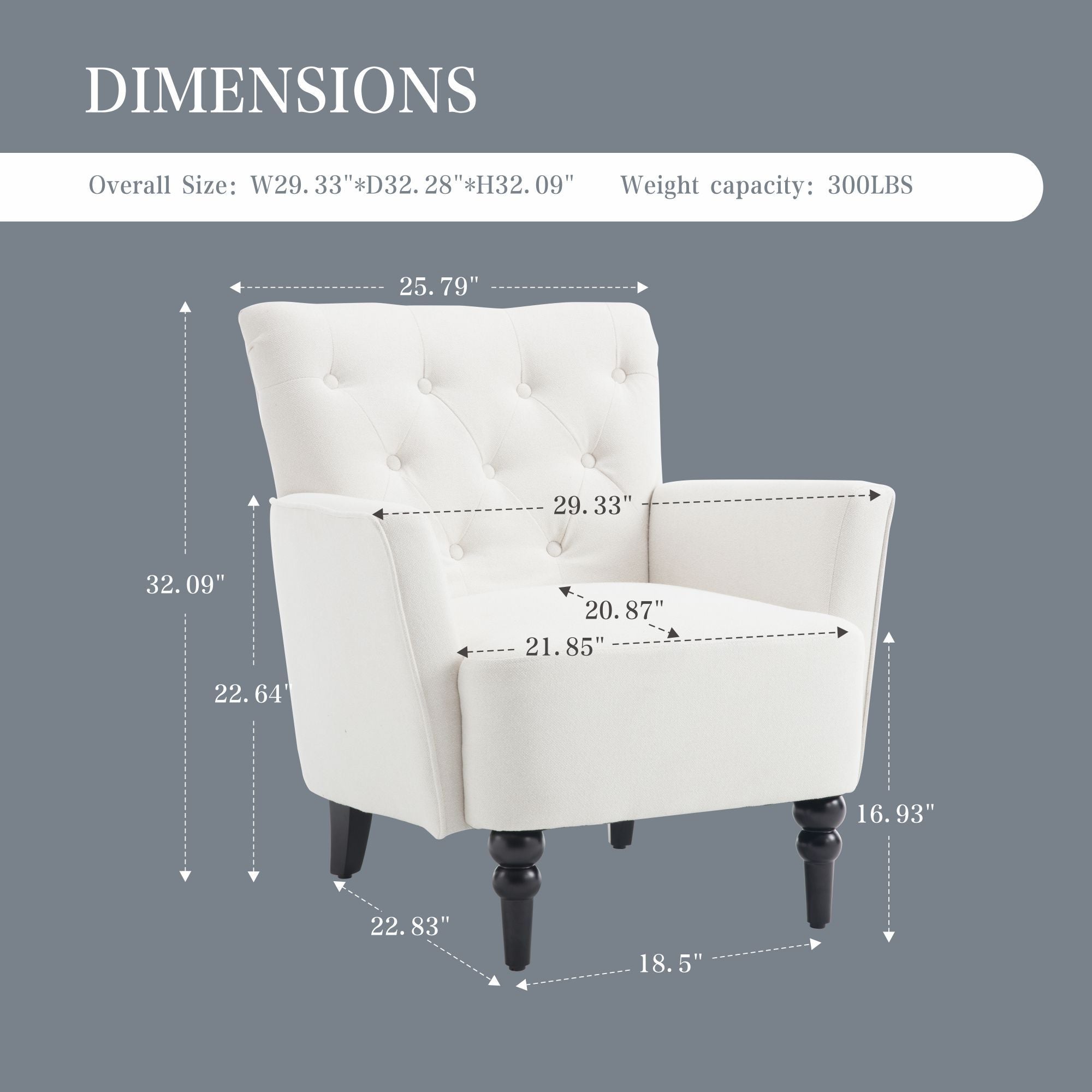 - Robust and Stable Armchair sofa: Supported by thickened and wood legs, the living room chair is more stable and durable. There is a foot cap under each foot to protect your floor from scratching and reduce the noise when moving. The Weight capacity is up to 300 lbs.