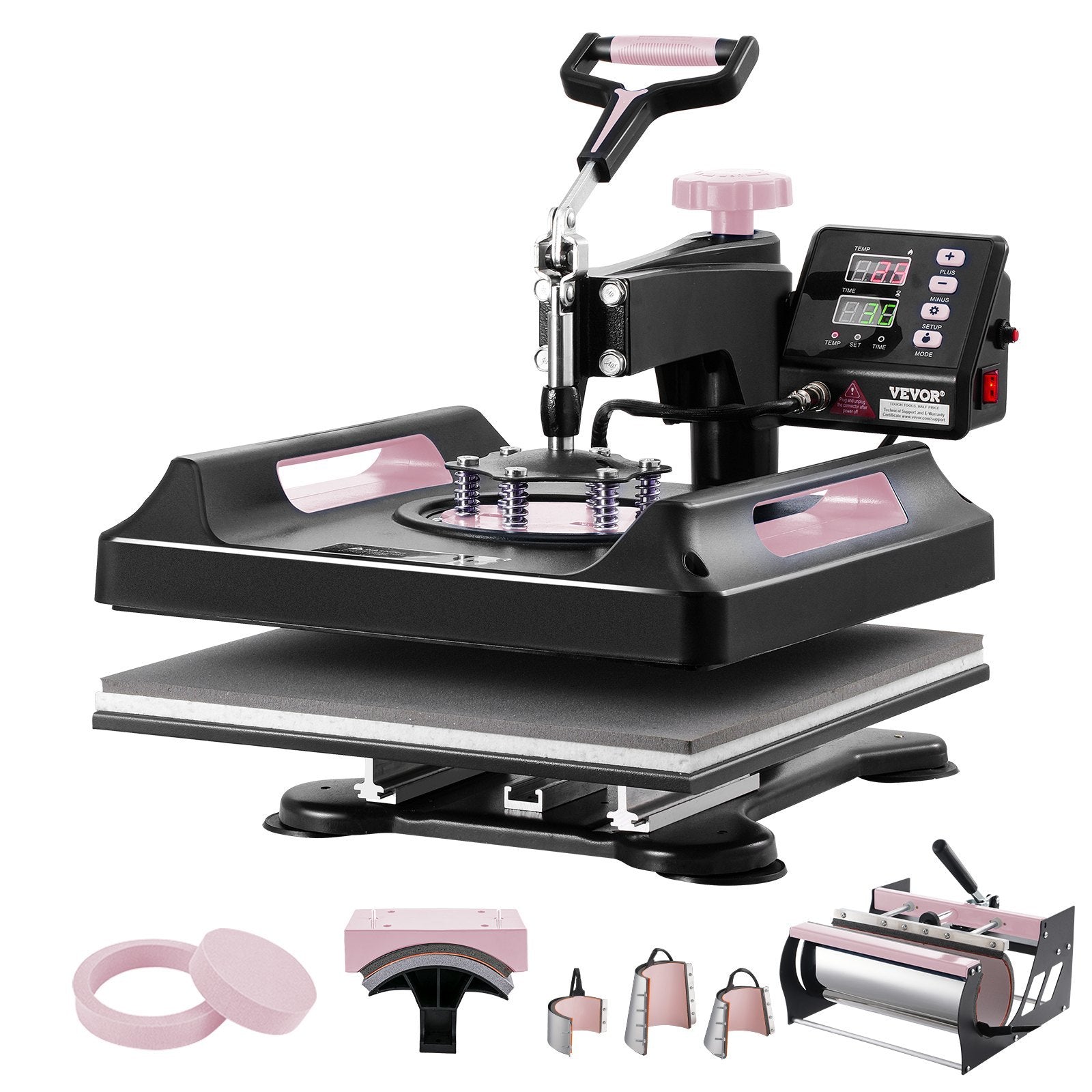 Unlock limitless creativity with the 8-in-1 Heat Press Machine (15x15 in, Black). Includes a 30oz Tumbler Press and attachments for T-shirts, hats, and plates. Pro-grade Dual Tube Heating.