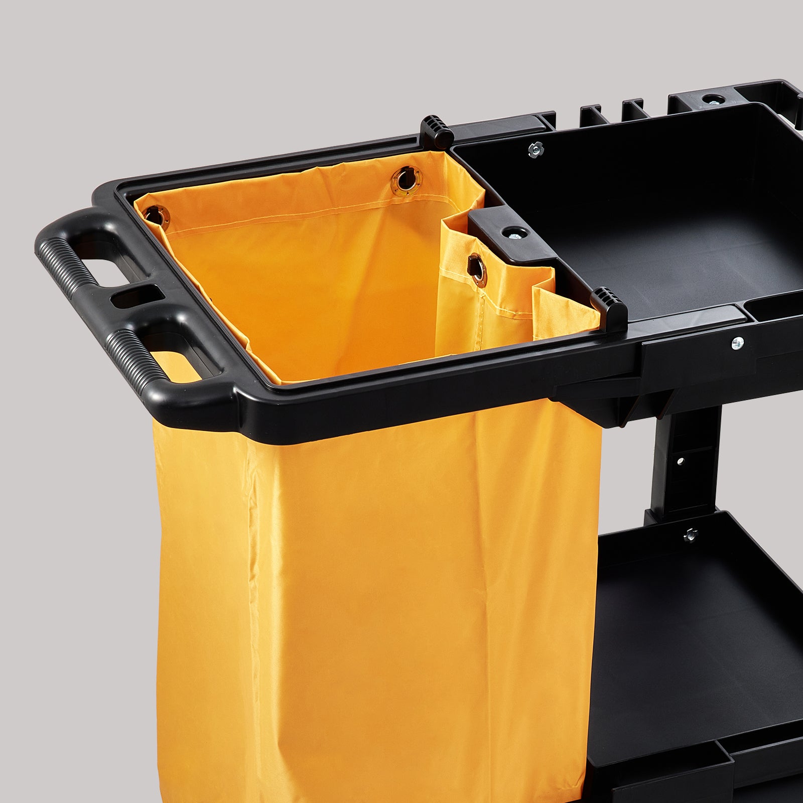 - Rigid & Durable PP Material: The housekeeping cart adopts high-strength PP material that effectively increases the load capacity. The janitor cart will not crack or deform even when full of cleaning tools and waste. Holding up to 200 pounds is a piece of cake.