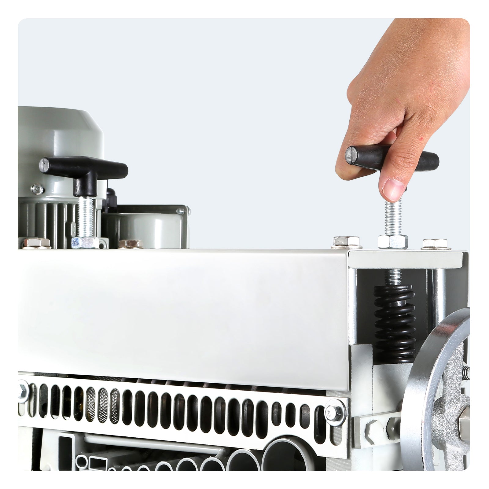 - 2 Operation Ways: Our wire peeler can be initiated manually and electrically. Electric-power is highly-efficient and time-saving. However, the manual crank handle makes operating easy even during a power failure.