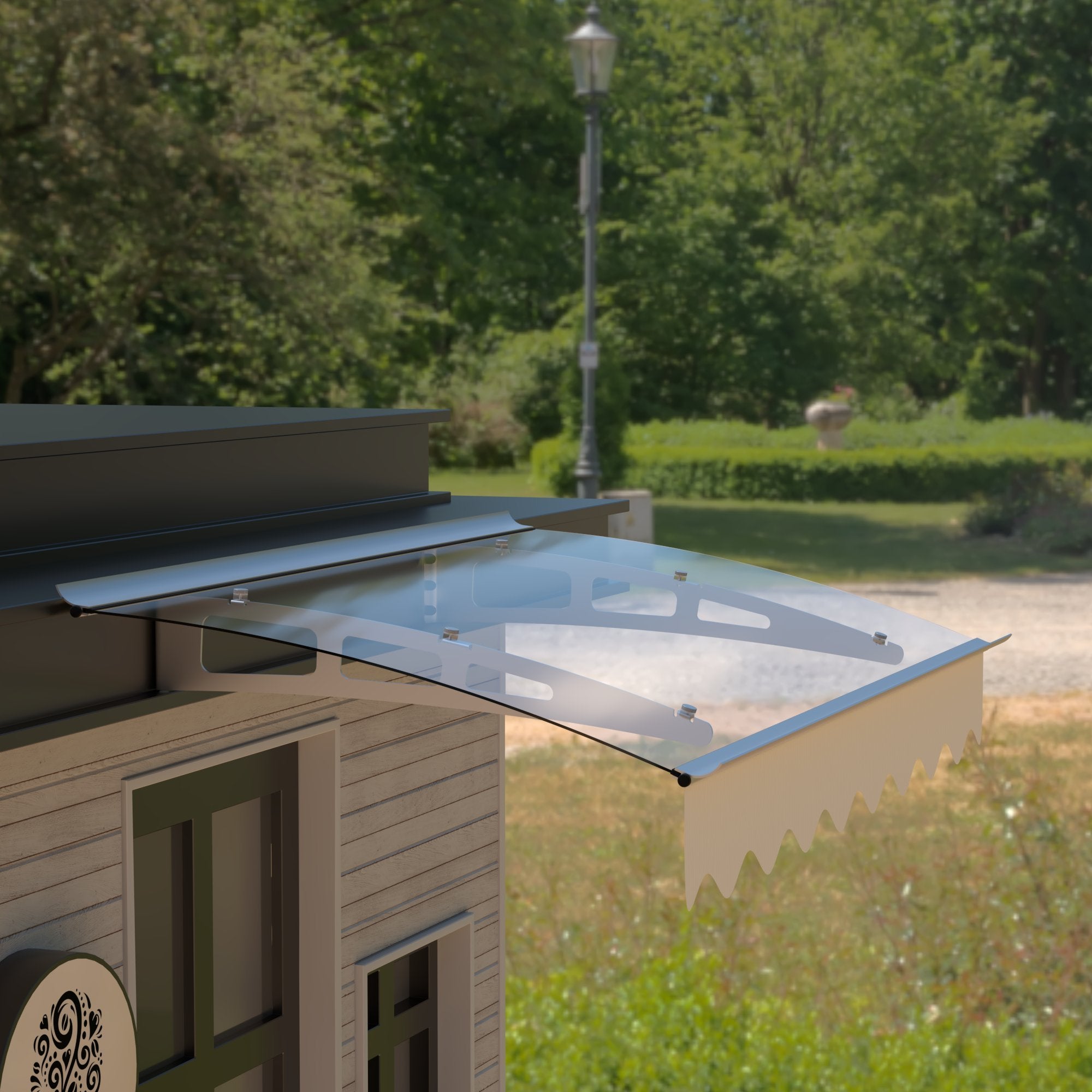 DA4734W Series Door Window Awning, 47" Wide x 34" Deep, Crystal Solid Polycarbonate Sheet and Aluminum Alloy with Valance for Wooden Wall House