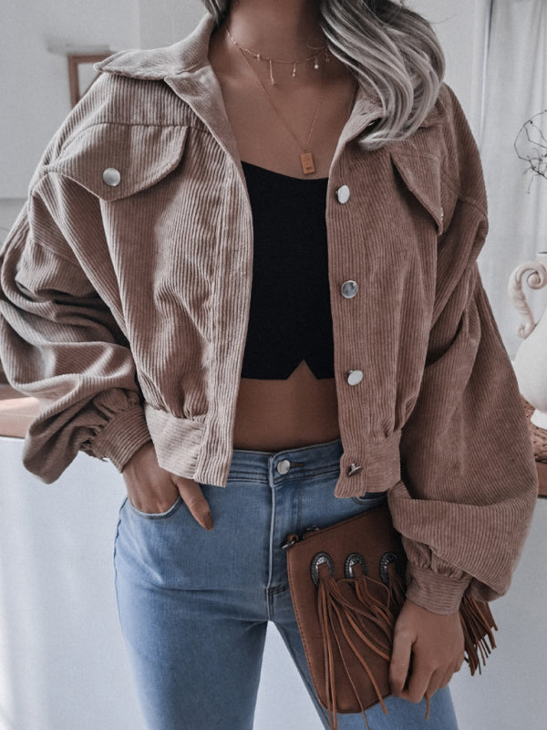 Women's Lantern long sleeve corduroy casual short coat