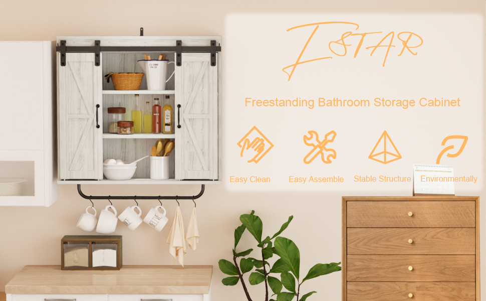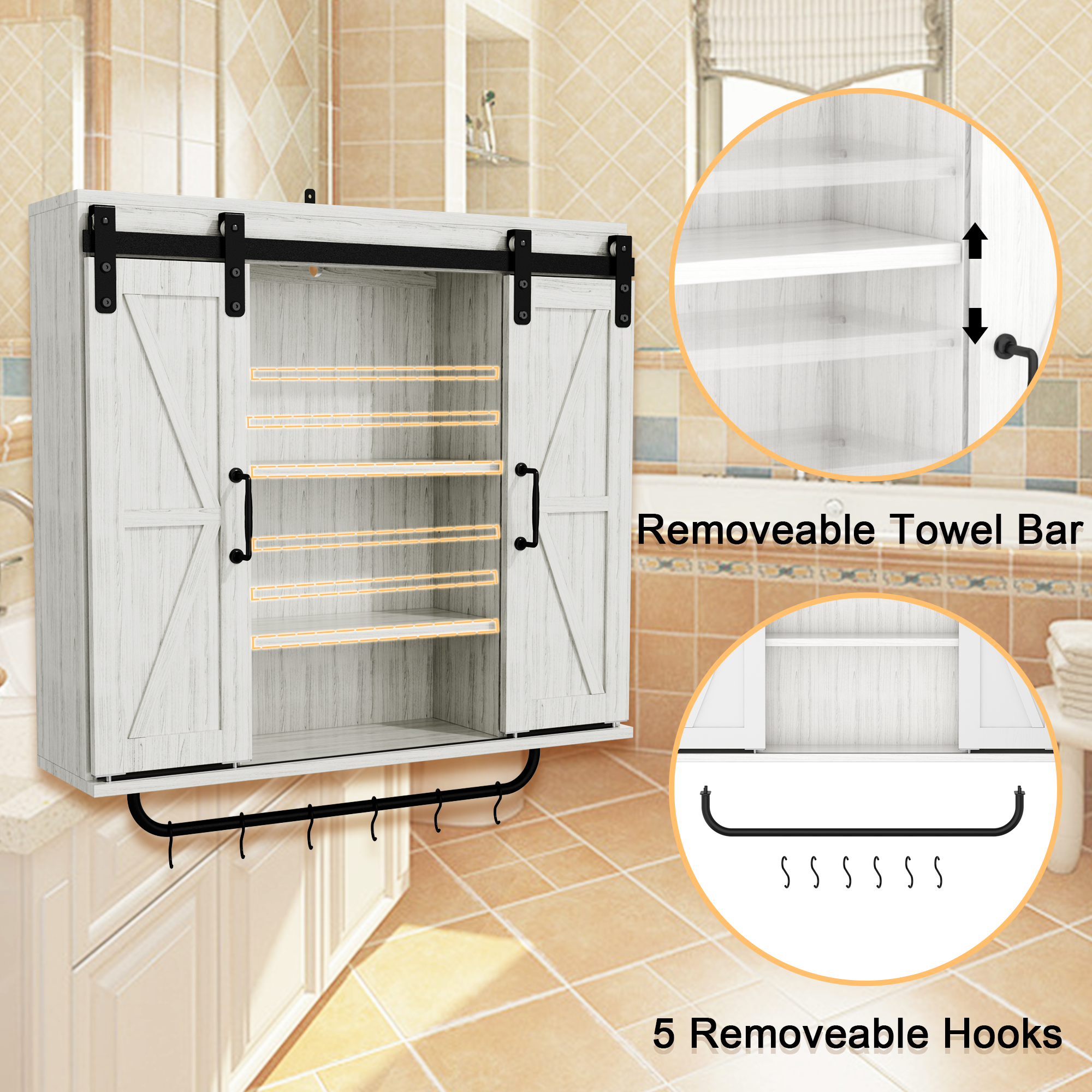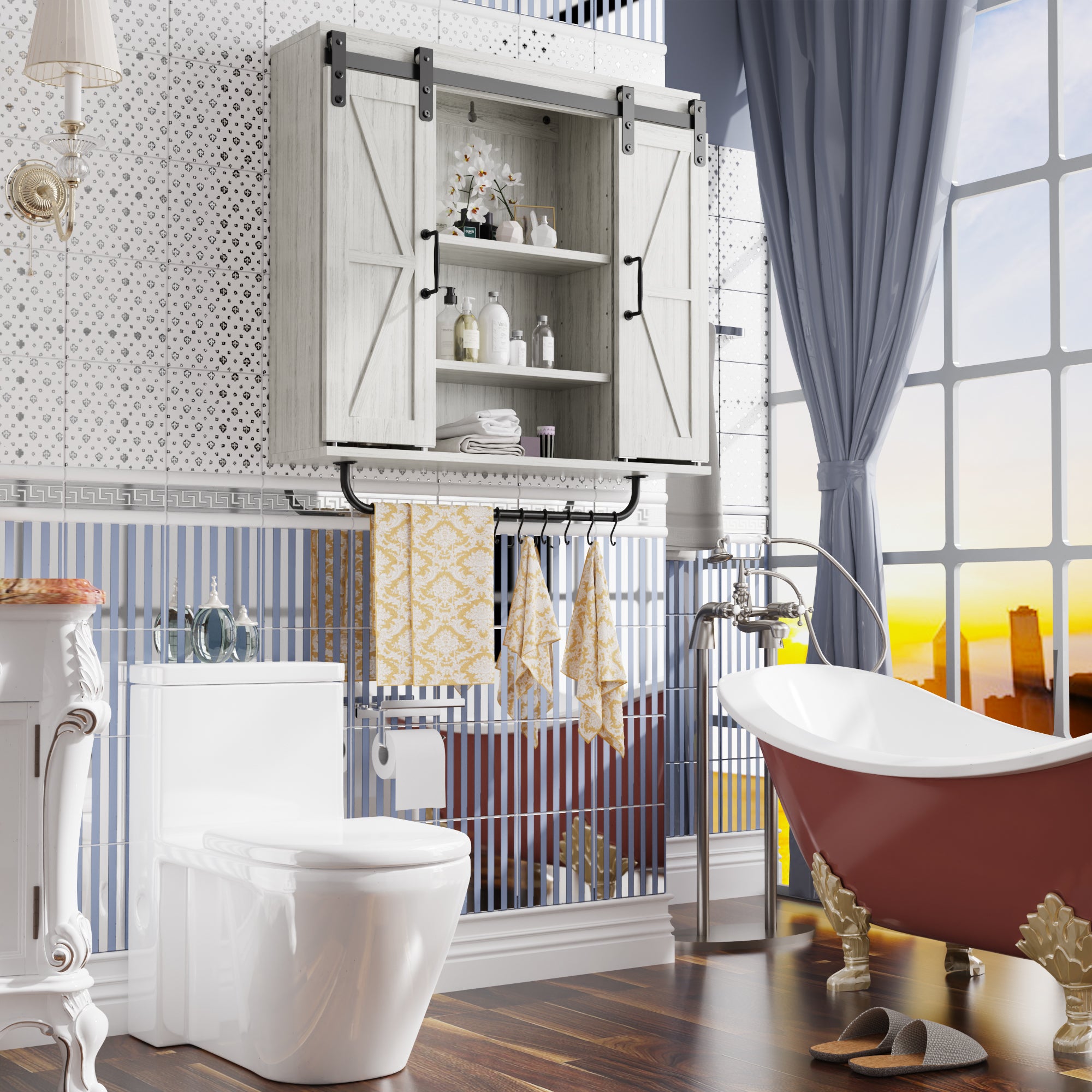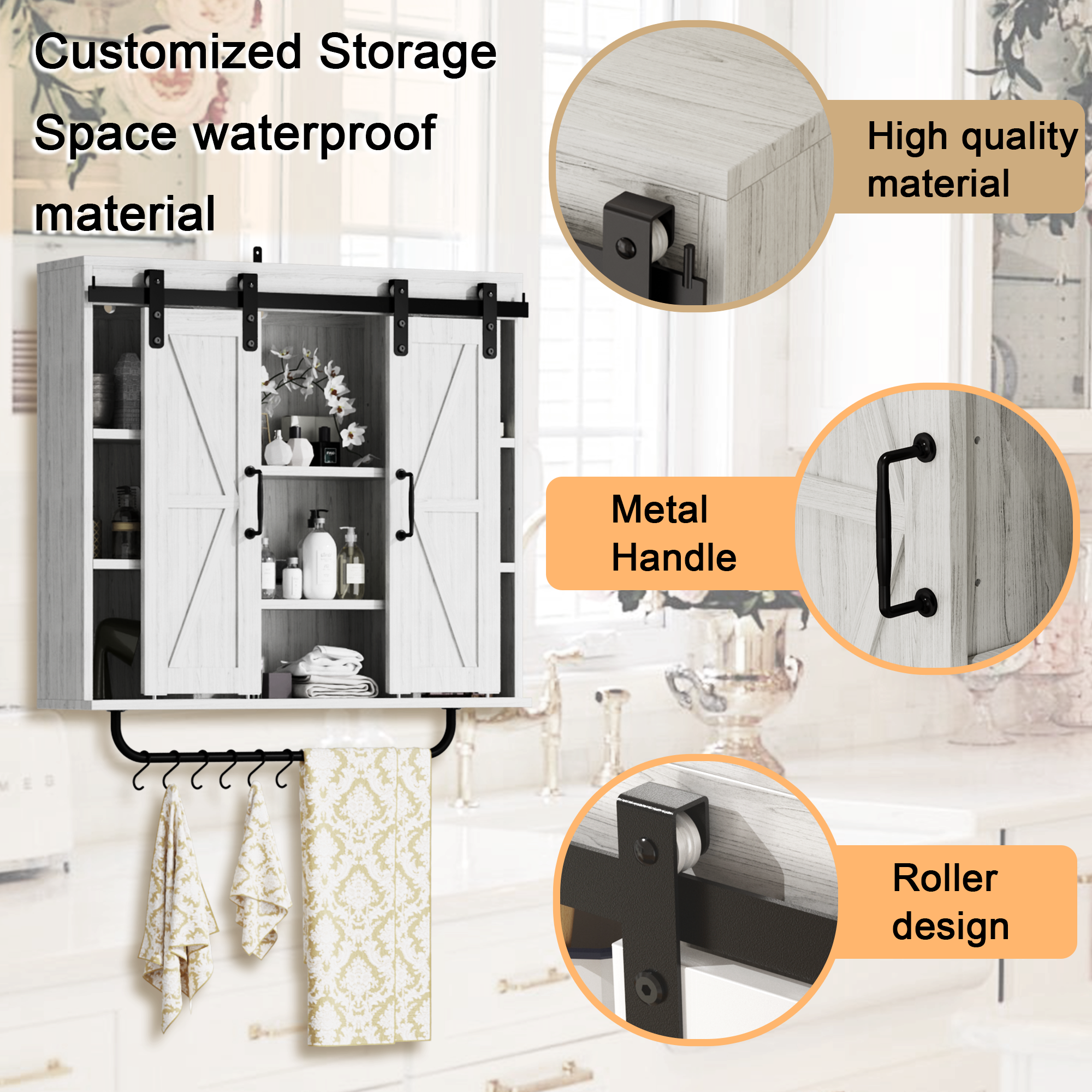 Enhance your home with this Rustic Wood Wall Storage Cabinet featuring two sliding barn doors and a stylish 3-tier design. Perfect for adding a touch of farmhouse charm to your kitchen, dining room, bathroom, or living room, this vintage gray cabinet provides ample storage space while elevating your home decor. Crafted with durable wood, it offers a practical and aesthetic solution for organizing essentials, from towels and dishes to décor pieces. Bring rustic elegance to any room with this versatile and functional cabinet, ideal for both storage and style.