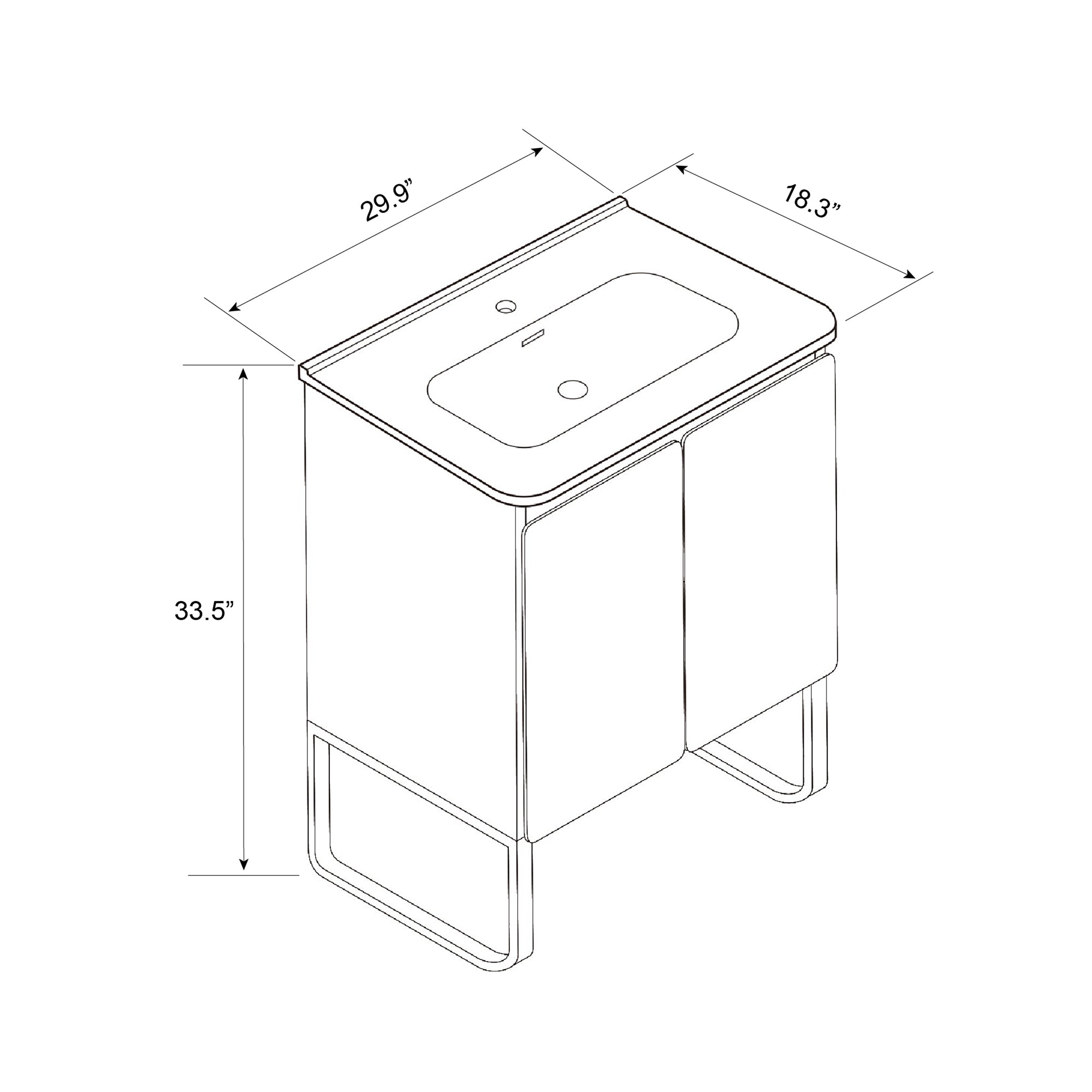 Upgrade your bathroom with the U093-Dalia30F-107 30" Freestanding & Wall Mounted Bathroom Vanity. Crafted with a sleek light wood finish, this modern vanity features a high-quality ceramic sink and offers ample storage with two spacious doors. The durable metal support ensures stability, while its versatile design allows for both freestanding and wall-mounted installation. Perfect for modern bathrooms, this vanity combines style, functionality, and quality craftsmanship to create a sophisticated space. Easy to assemble (KD), it's an ideal choice for anyone looking to enhance their bathroom with practical and elegant storage.