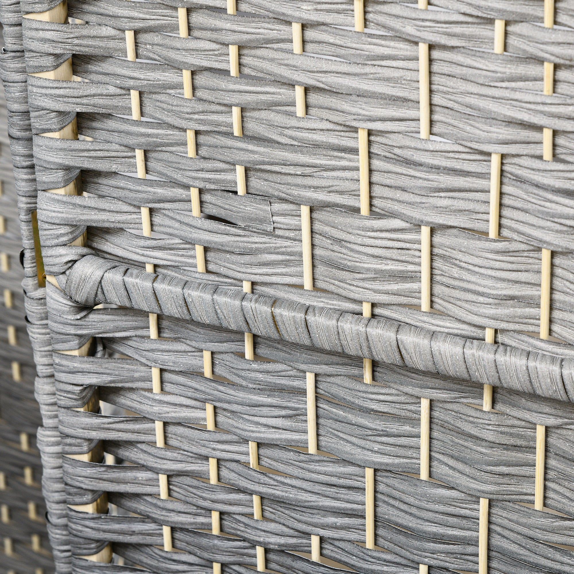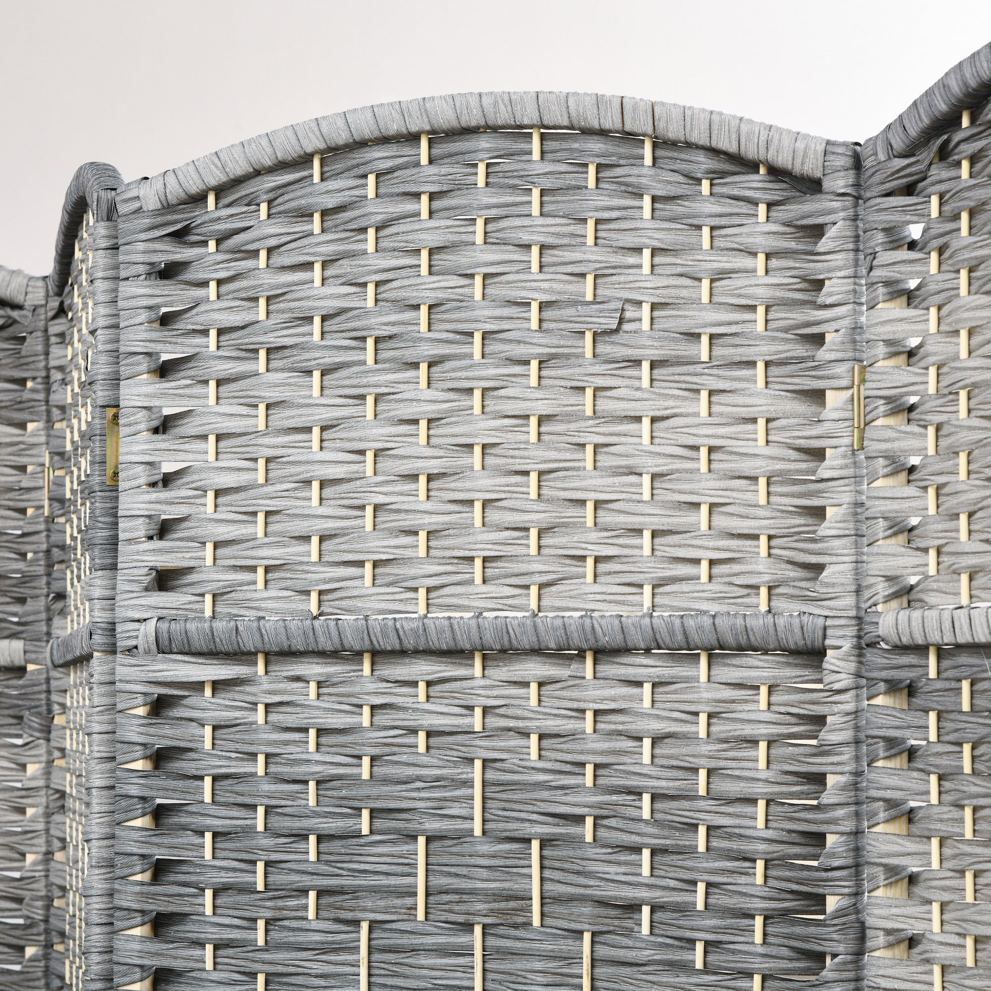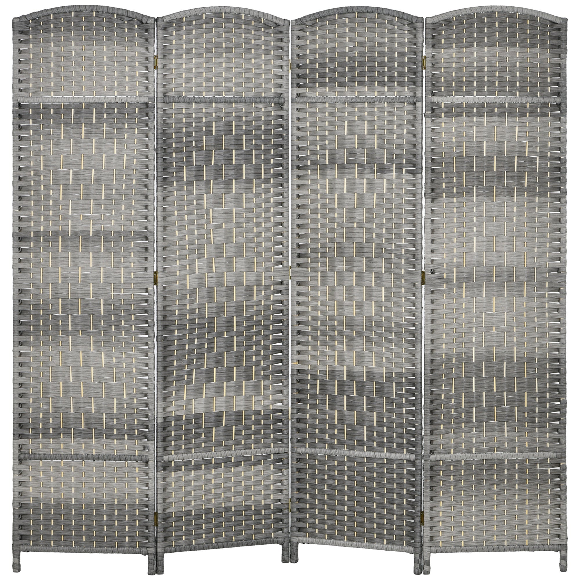 HOMCOM 4 Panel Room Divider, 6' Tall Folding Privacy Screen, Hand-Woven Freestanding Wood Partition for Home Office, Bedroom, Mixed Gray