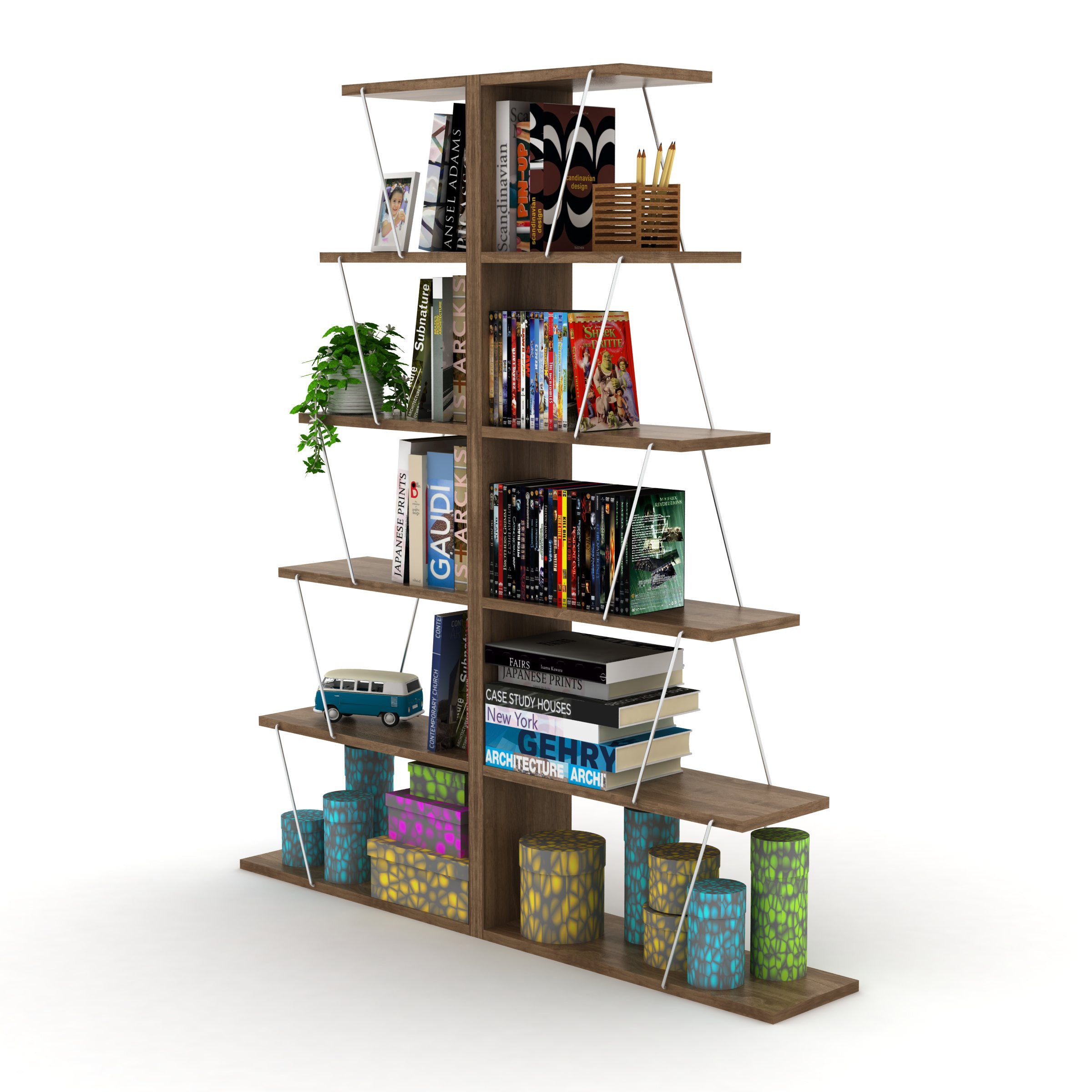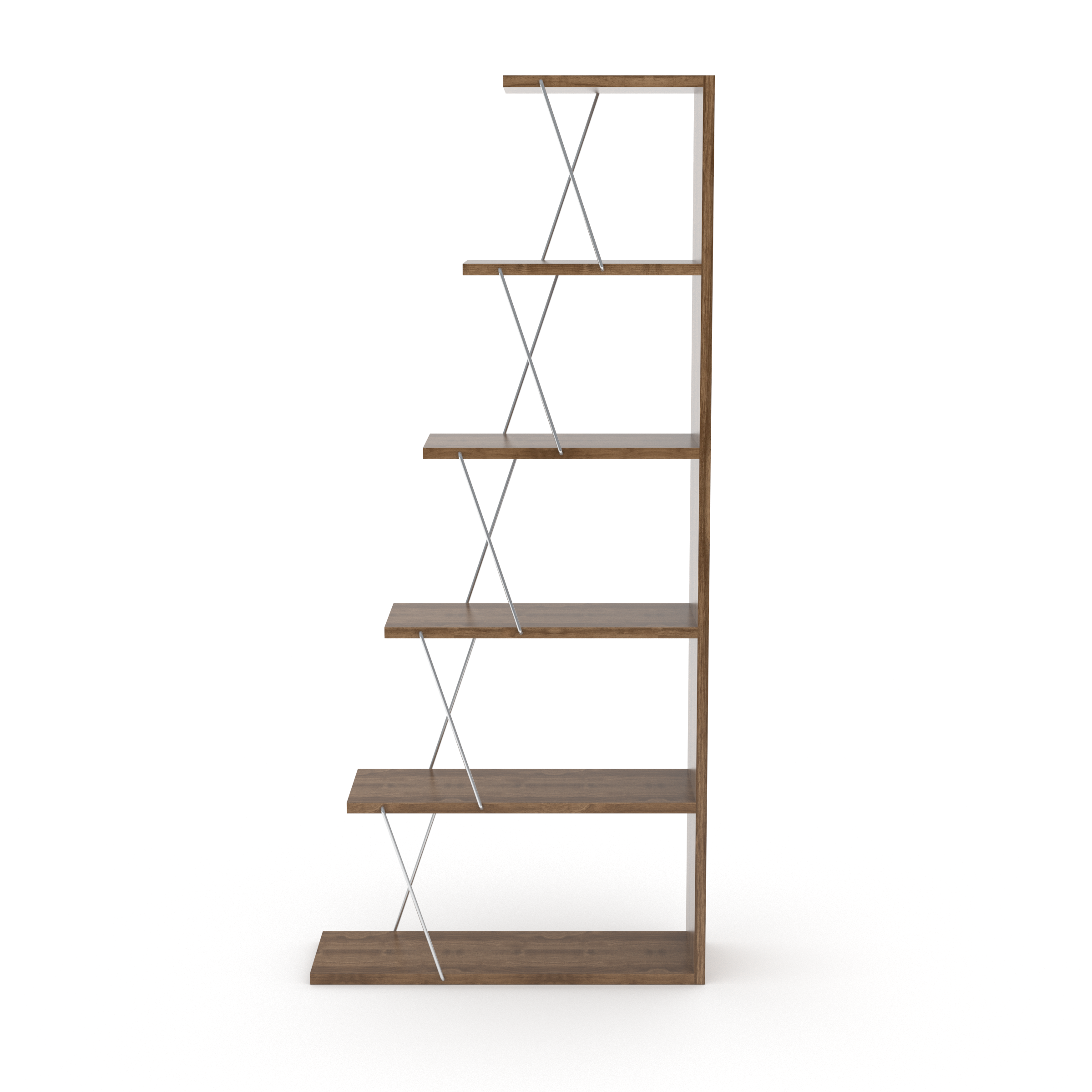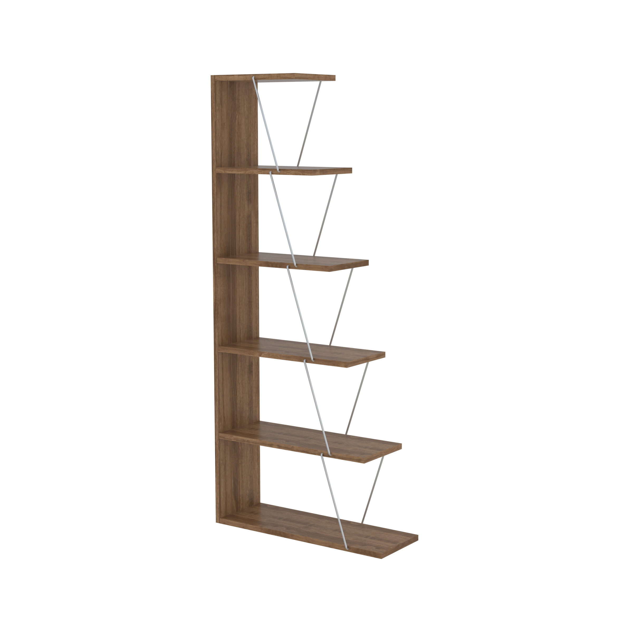 Furnish Home Store Modern 5 Tier Ladder Bookshelf Organizers, Narrow Bookshelf for Small Spaces Office Furniture Bookcase ,Walnut/Chrome